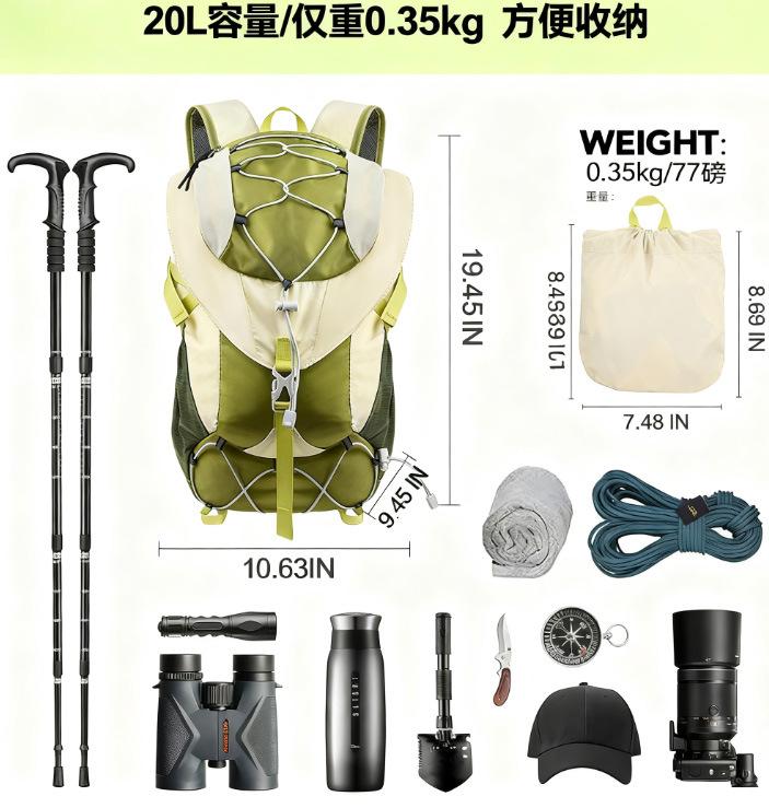 Ultraligero e Impermeable: ¡Pesa solo 350 gramos — más ligero que una botella de agua! El tejido impermeable y la capucha sellada mantienen tus pertenencias secas, llueva o haga sol. Los sujetadores elásticos para bastones de trekking aseguran un ajuste seguro durante tus aventuras al aire libre. Perfecto para senderismo, viajes o uso diario.