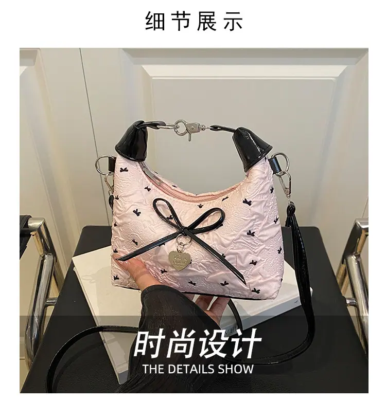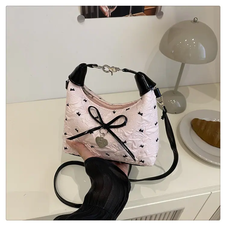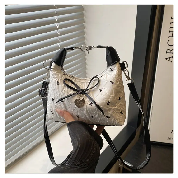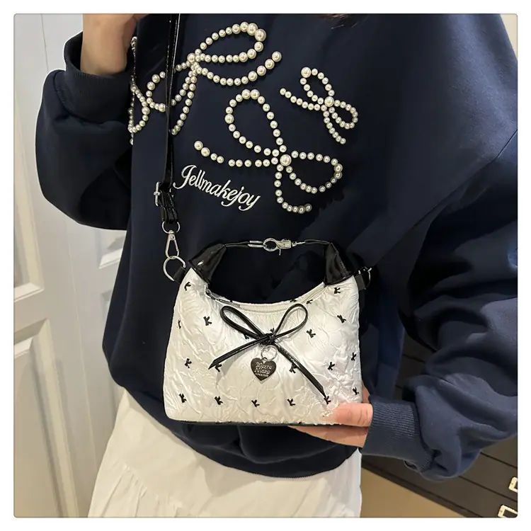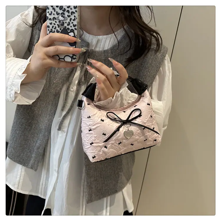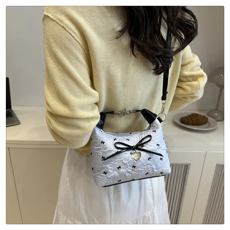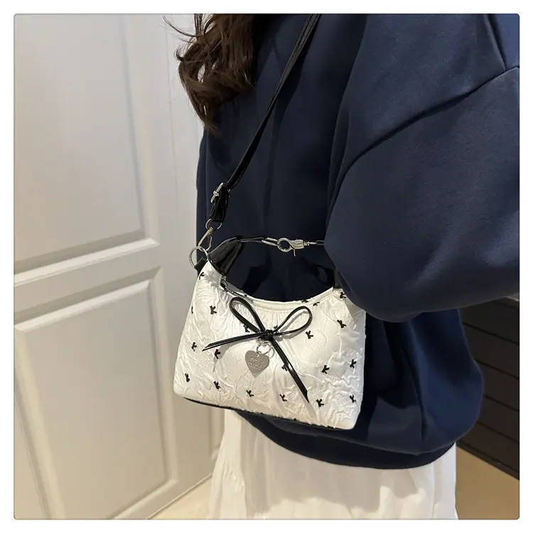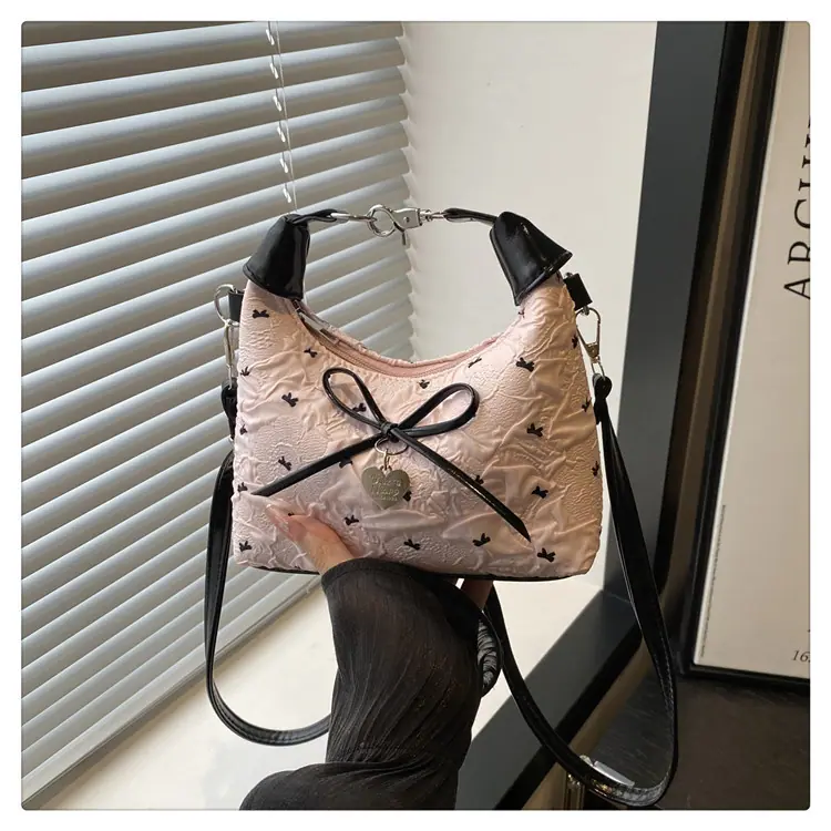 Bolso bandolera versátil con lazo para mujer, bolso sencillo de estilo coreano, bolso de mano nuevo, moda de verano 2025, bolso dumpling