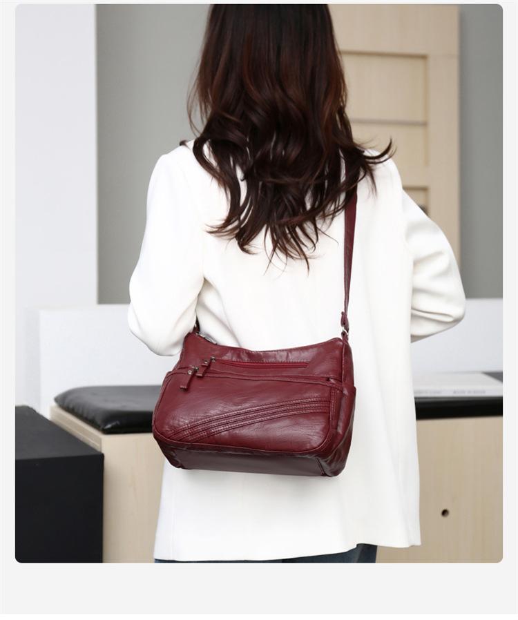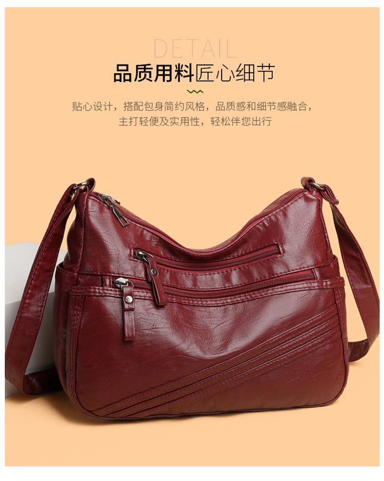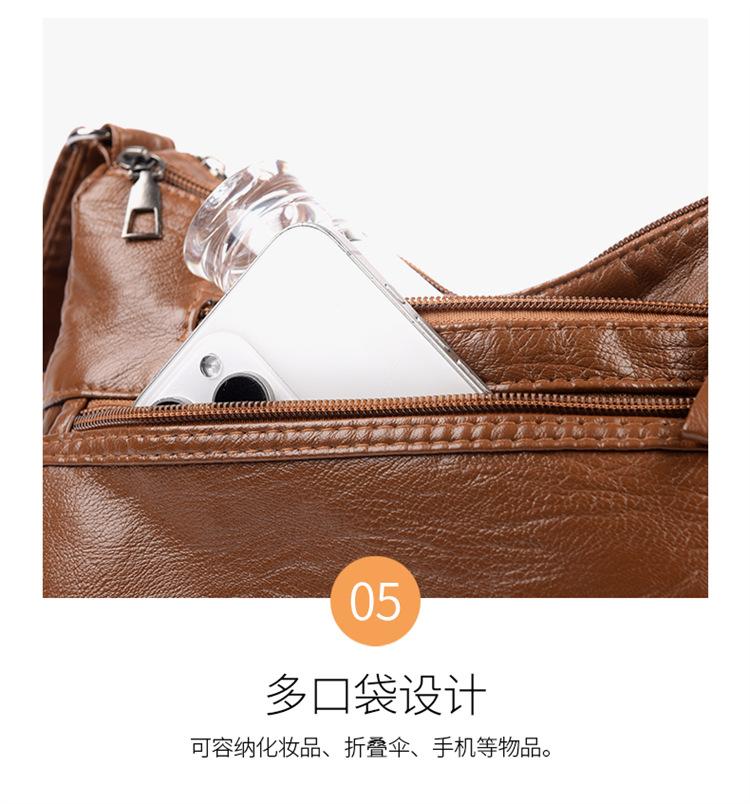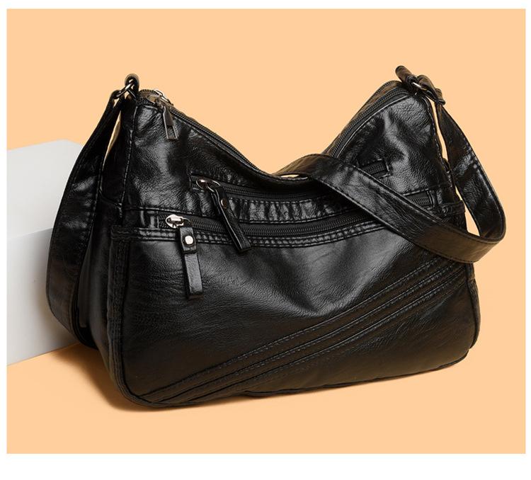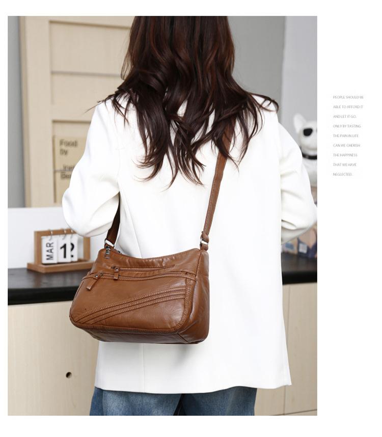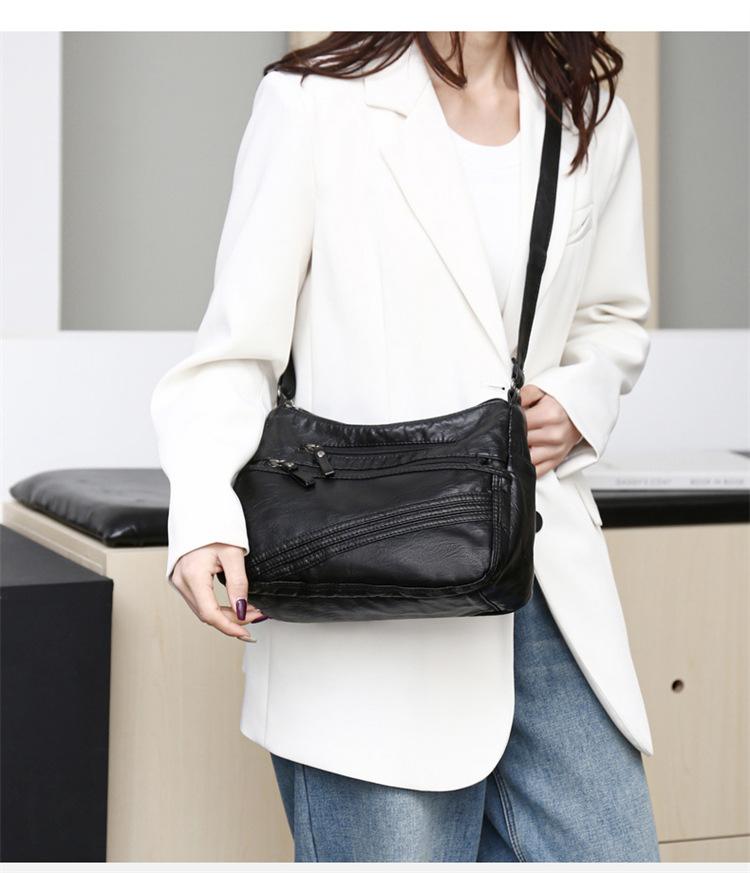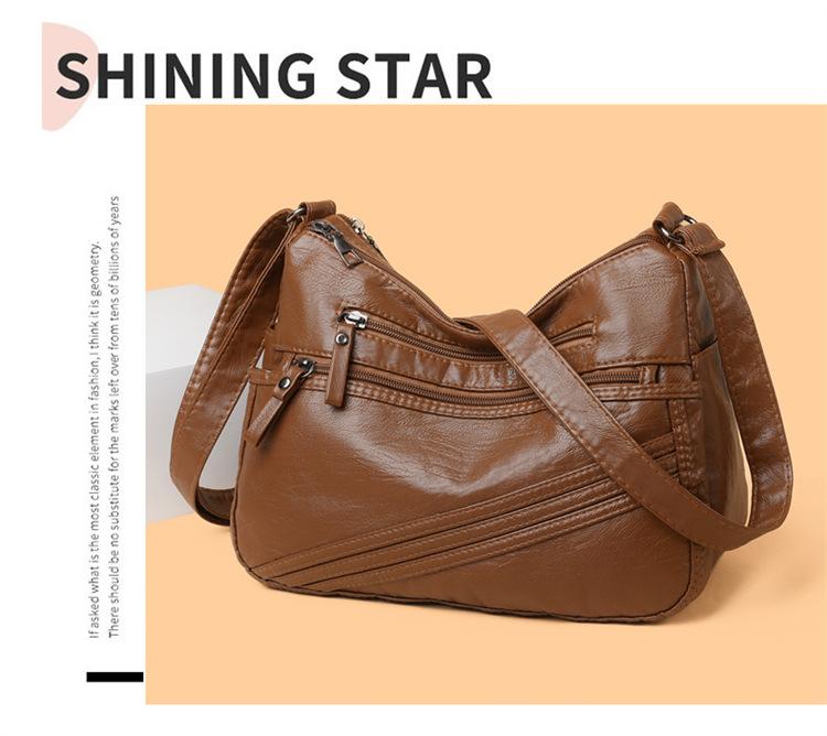 Bolso Cruzado para Mujer Nueva Moda Bolso de Hombro Versátil Bolso para Mujer de Mediana Edad Bolso de Madre Bolso de Pu Lavado Bolso de Gran Capacidad Multicapa