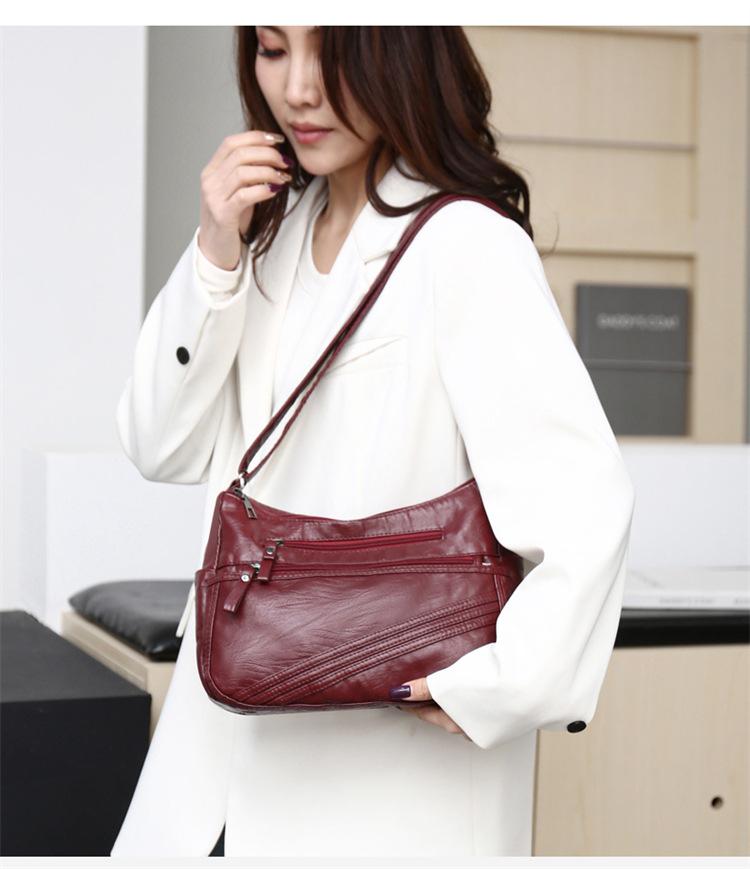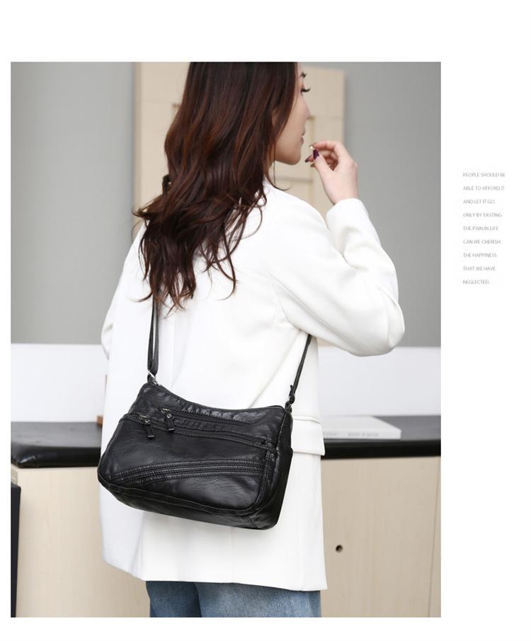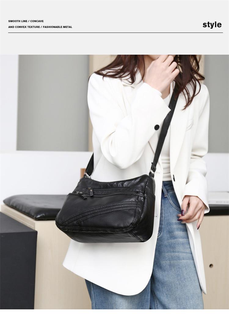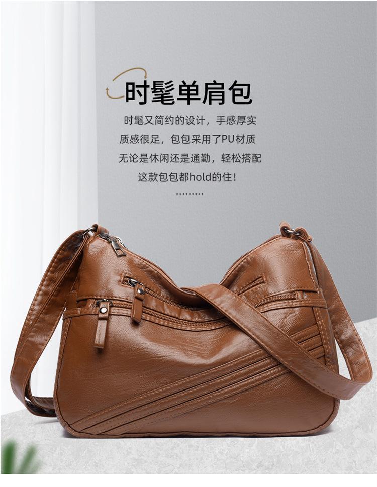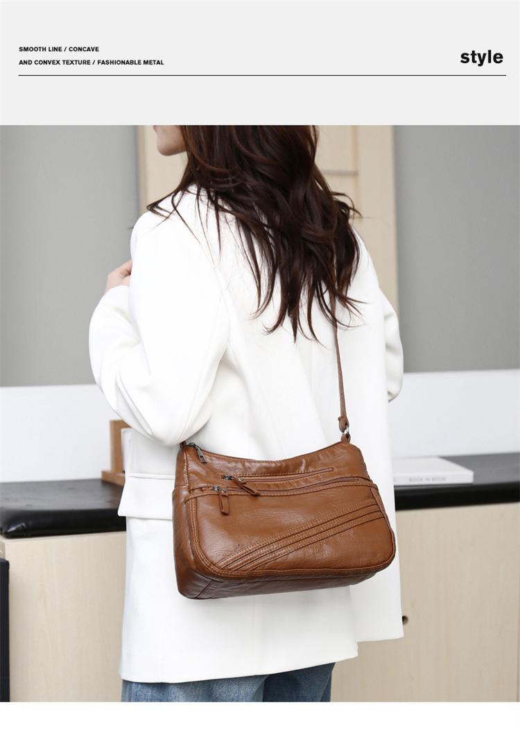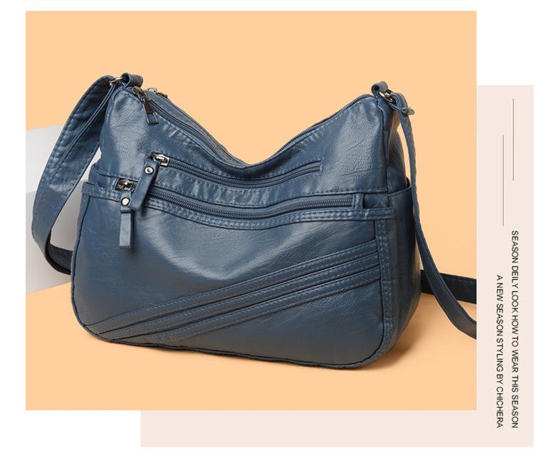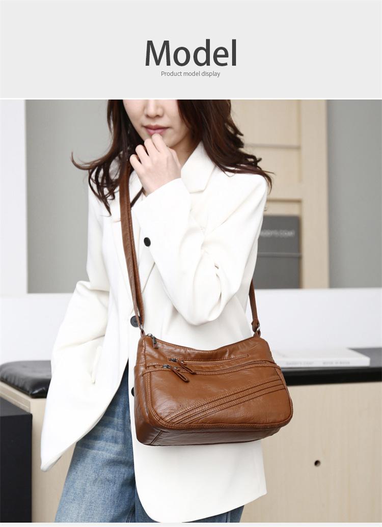 Bolso Cruzado para Mujer Nueva Moda Bolso de Hombro Versátil Bolso para Mujer de Mediana Edad Bolso de Madre Bolso de Pu Lavado Bolso de Gran Capacidad Multicapa