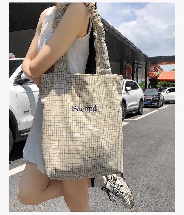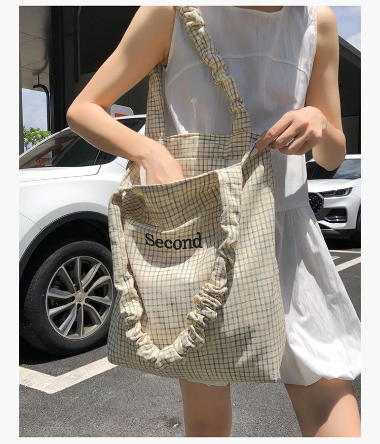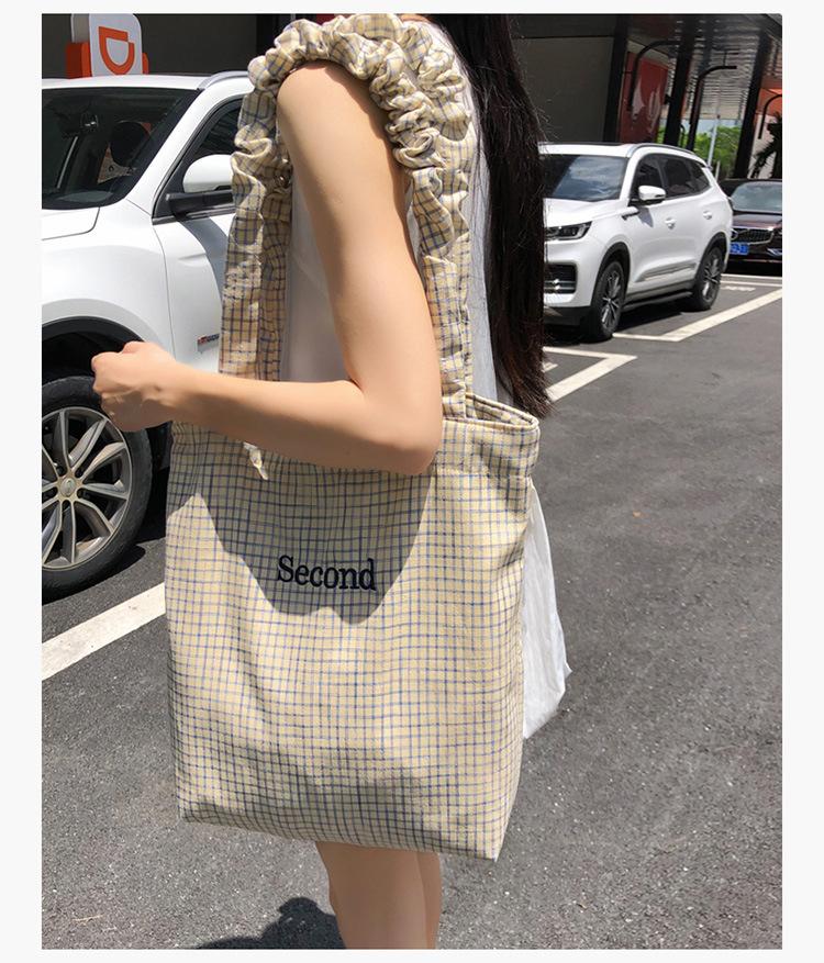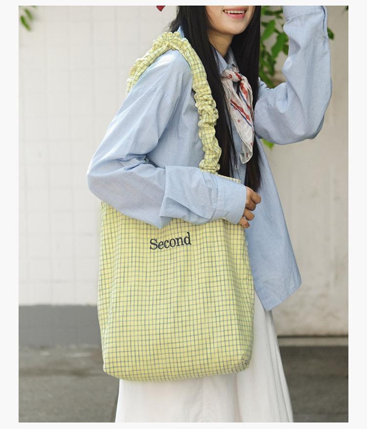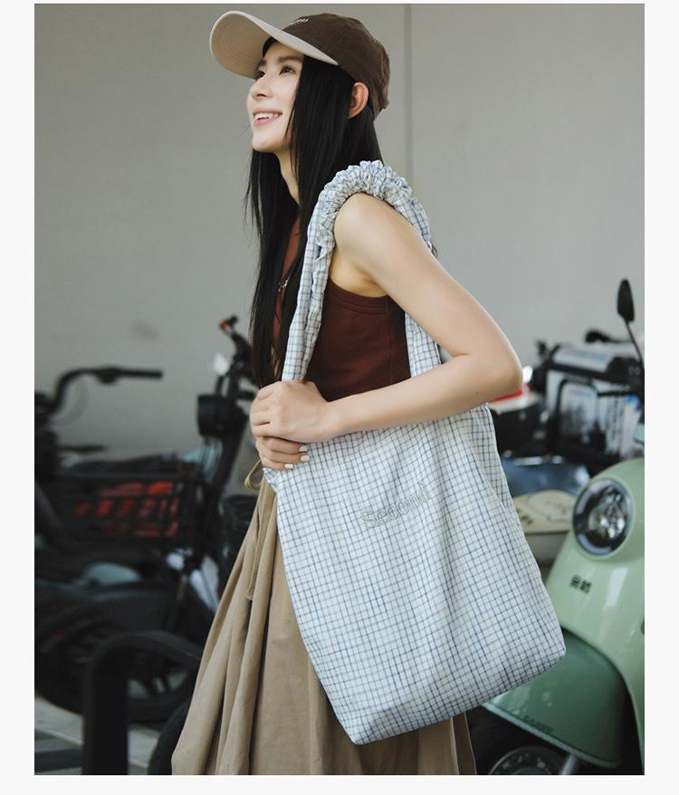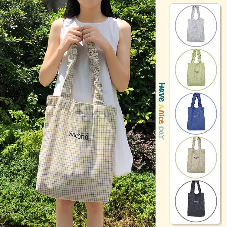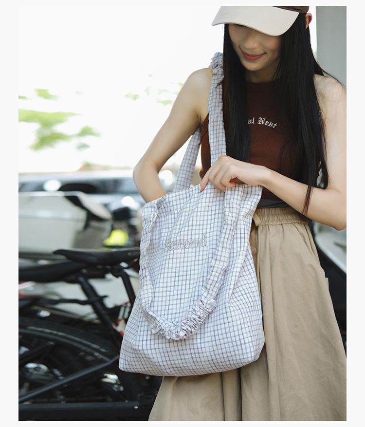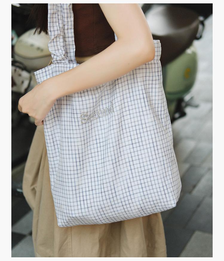 Compra Bolsa a Cuadros para Mujer de un Solo Hombro de Gran Capacidad Bolsa de Nailon a Rayas Casual Moda Bolso Tote Sencillo Versátil Moda Nicho al por mayor en Joom.pro