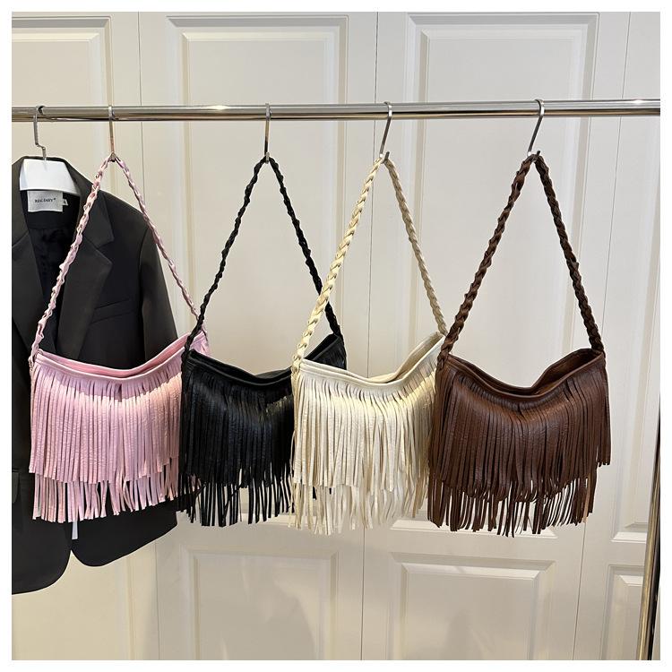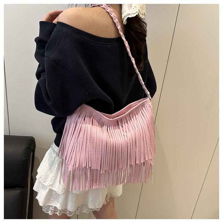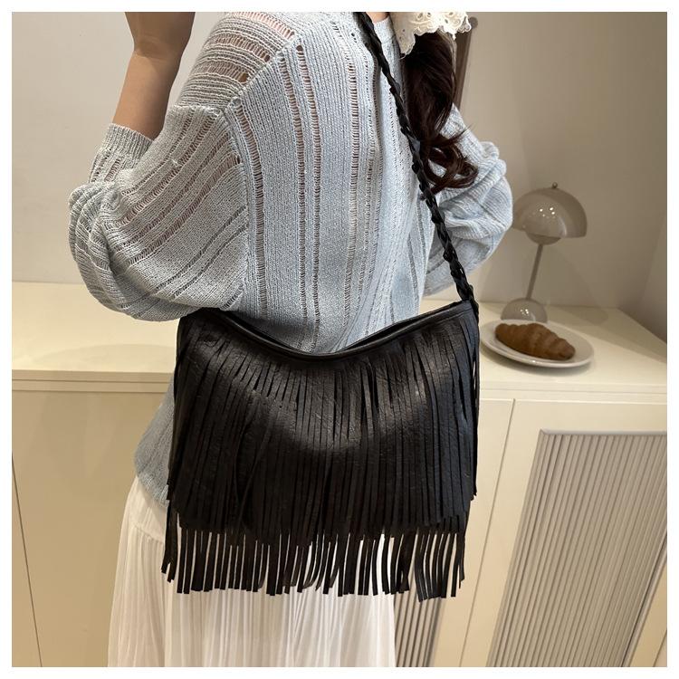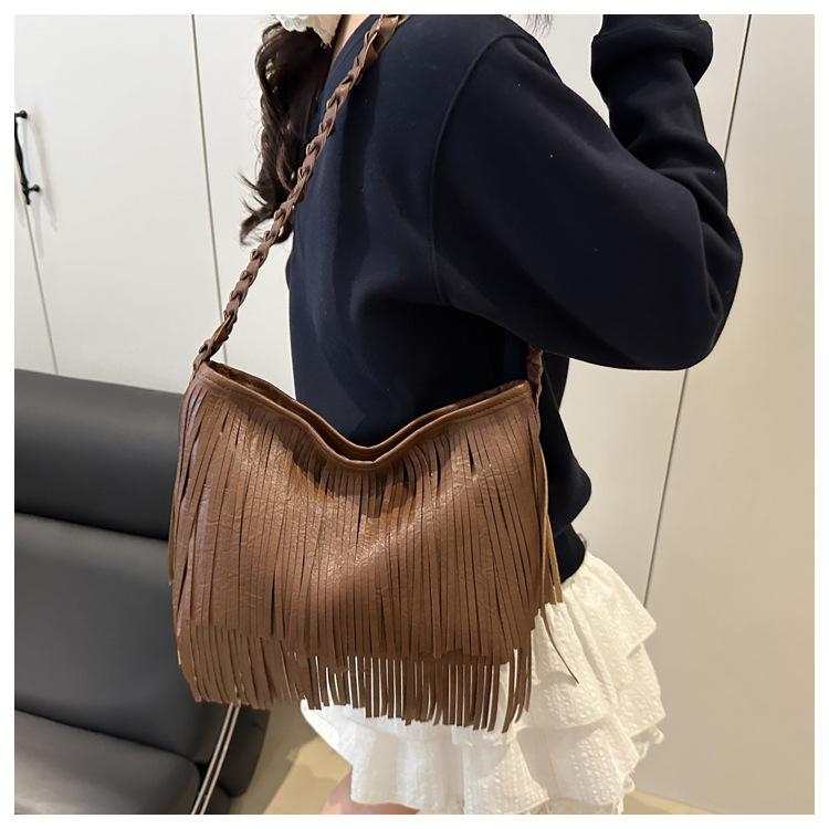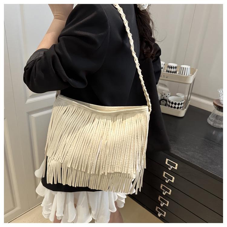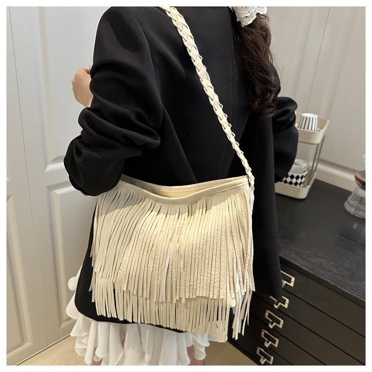 Bolso de Hombro Coreano Retro con Borlas para Mujer 2025 Nuevo Popular Hermoso y Elegante Bolso Cruzado Color Puro Moda Bolso para Ir al Trabajo