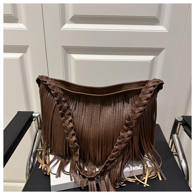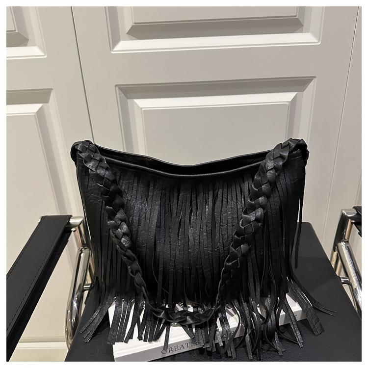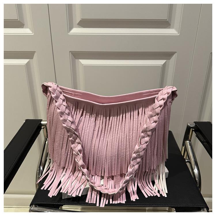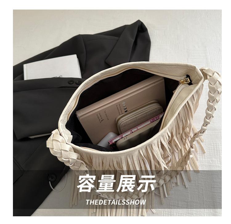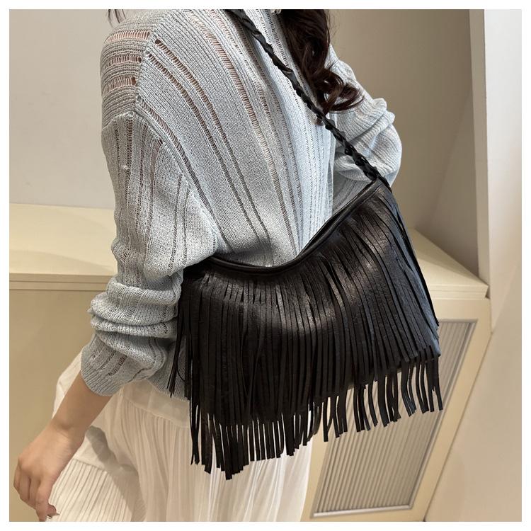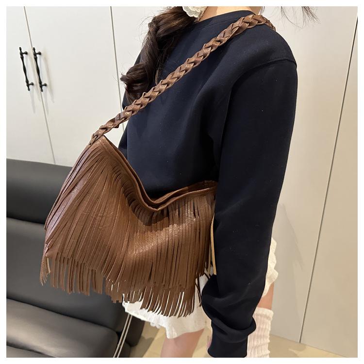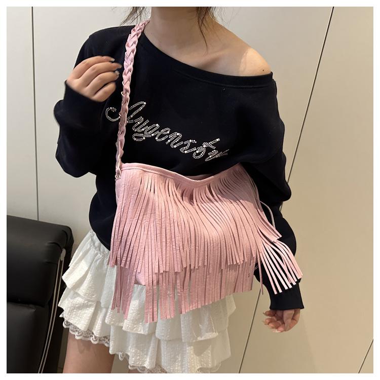 Bolso de Hombro Coreano Retro con Borlas para Mujer 2025 Nuevo Popular Hermoso y Elegante Bolso Cruzado Color Puro Moda Bolso para Ir al Trabajo