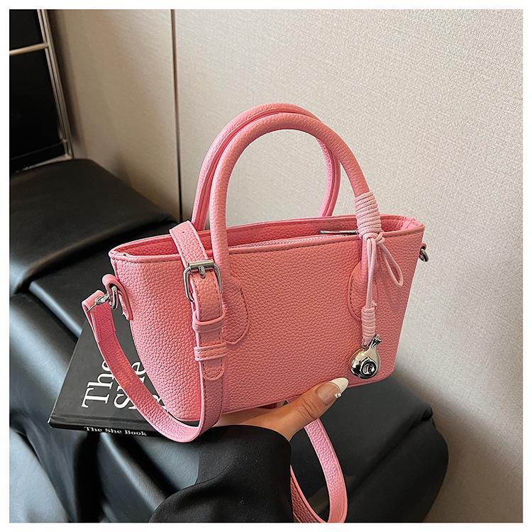 Moda al por mayor Estilo simple Color sólido Textura granulada Bolso cubo Casual Coreano Versátil Estilo viajero Bandolera para mujer