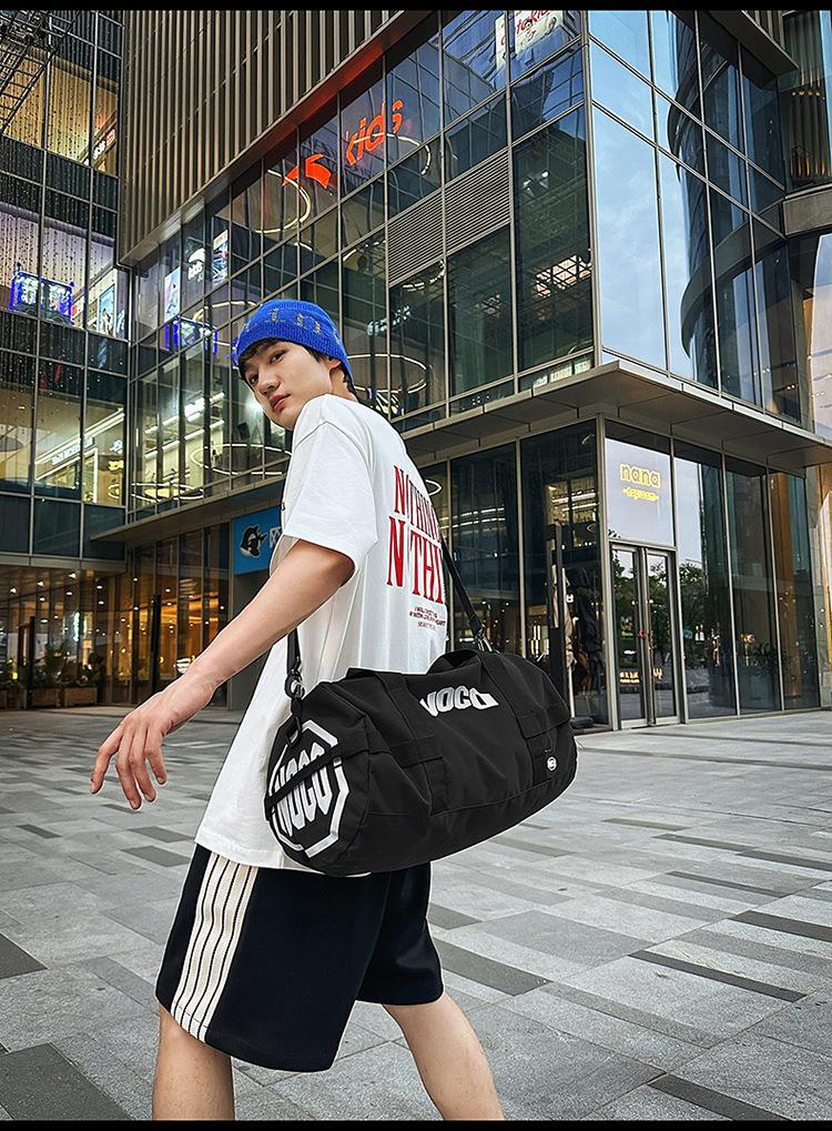 Bolsa de Viaje de Mano de Corto Alcance Separación Húmedo y Seco Gran Capacidad Bolsa Deportiva para Yoga Gimnasio Moderna Sencilla con Letras Bolsa de Embarque