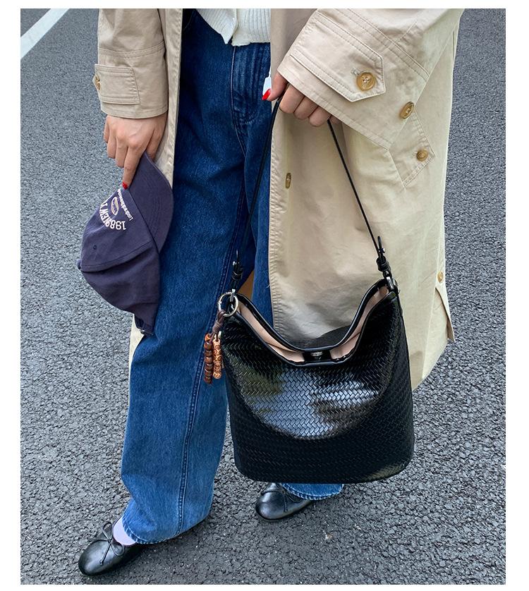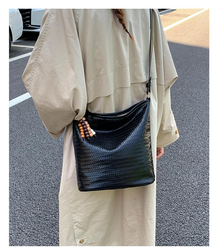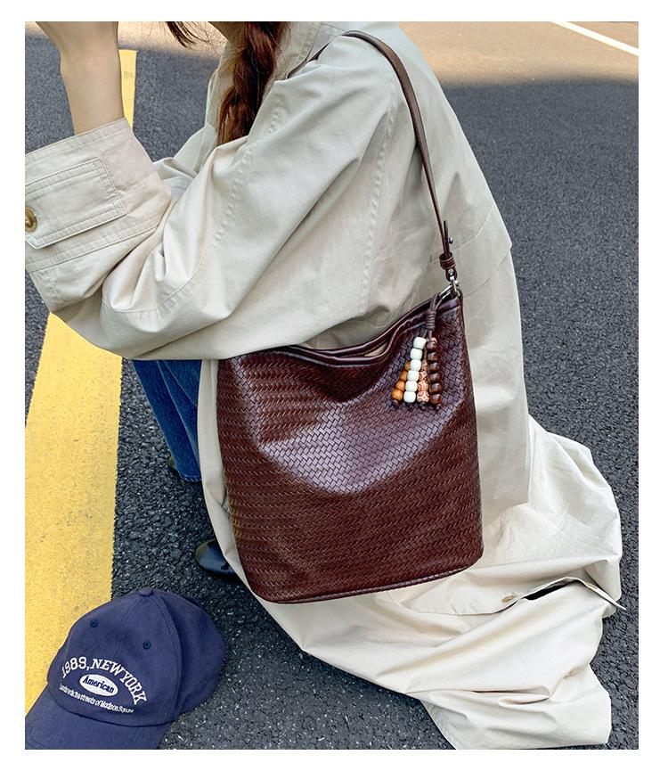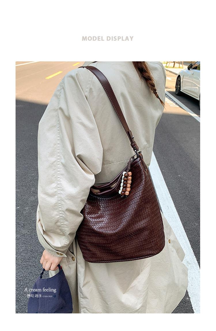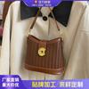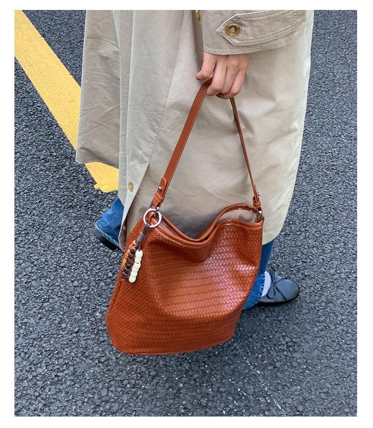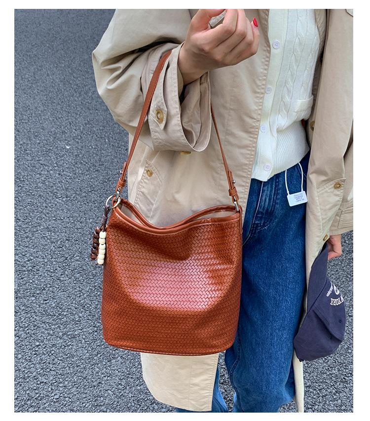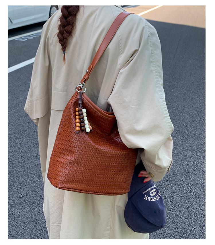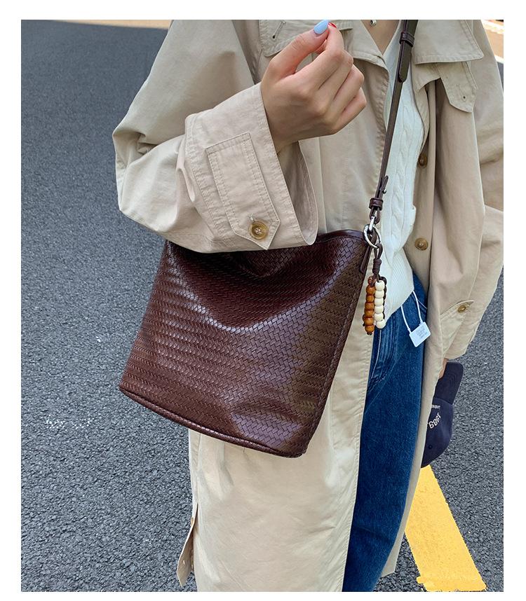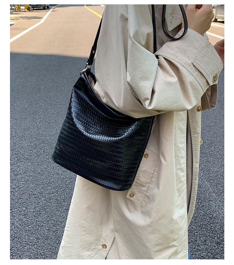 Bolso tejido para mujer, bolso de cubo de moda 2025, nuevo diseño nicho, bolso de axila con textura retro, bolso pequeño bandolera de un solo hombro