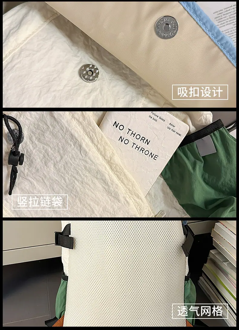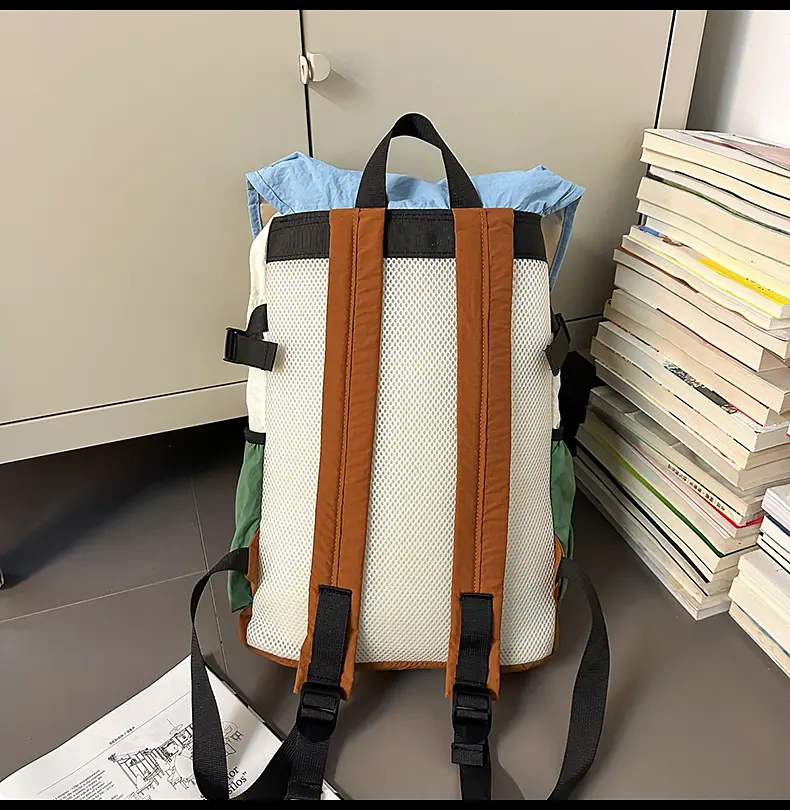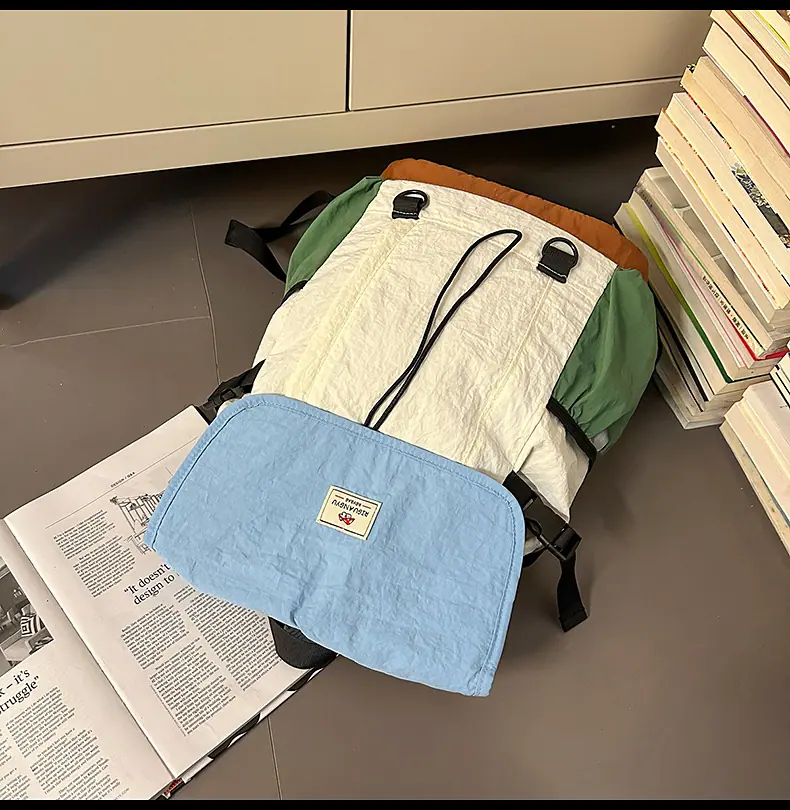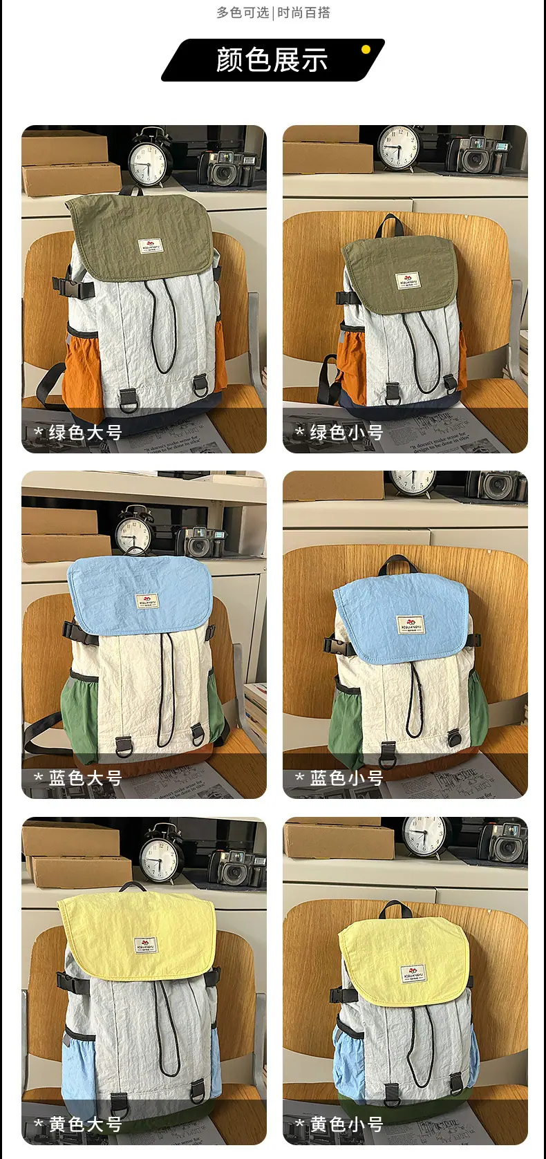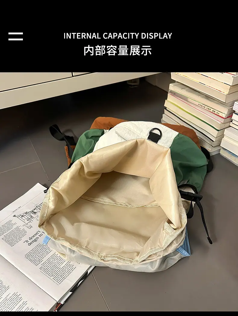 Mochila ligera de gran capacidad con bloques de color transfronteriza 2025 nueva versátil para viajes y desplazamientos, bolsa de estudiante de comercio exterior