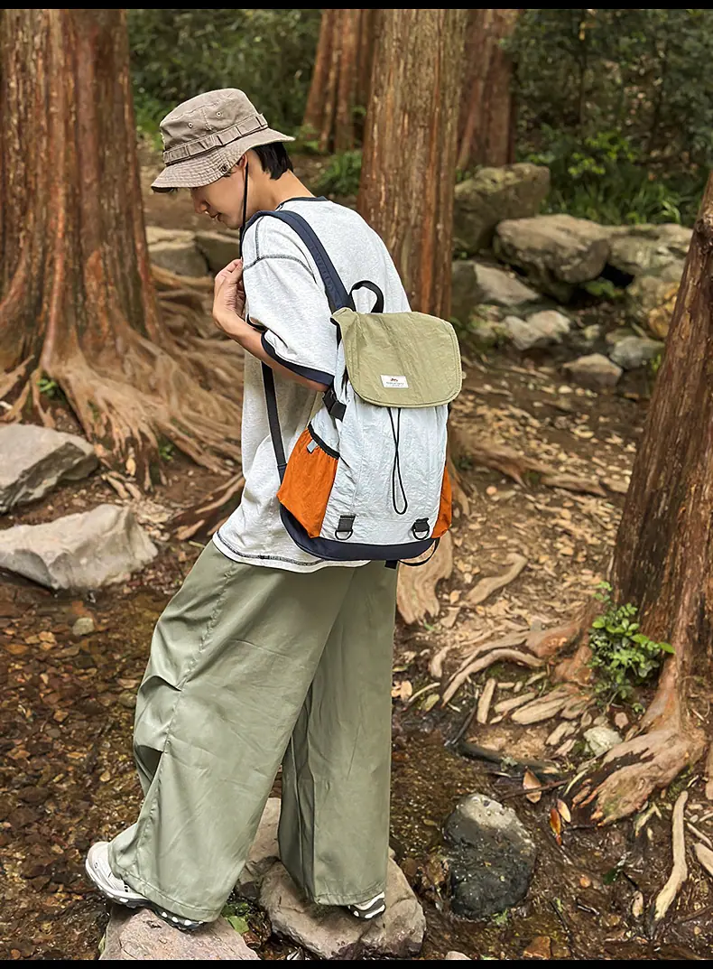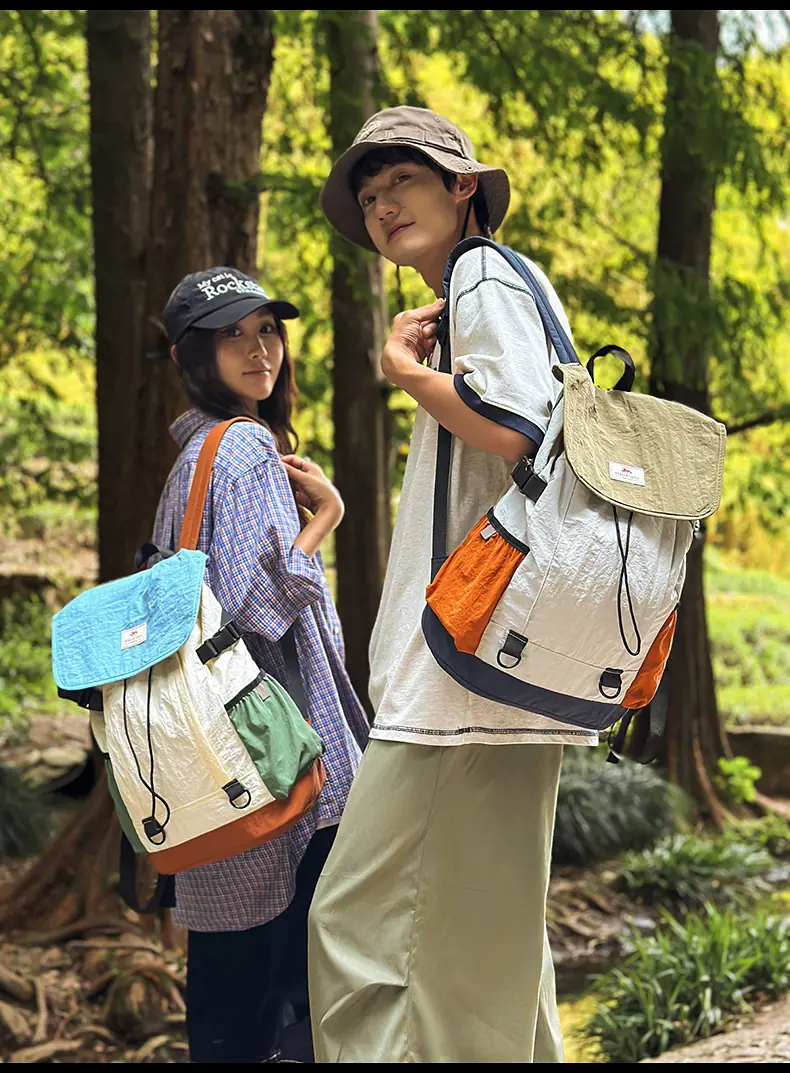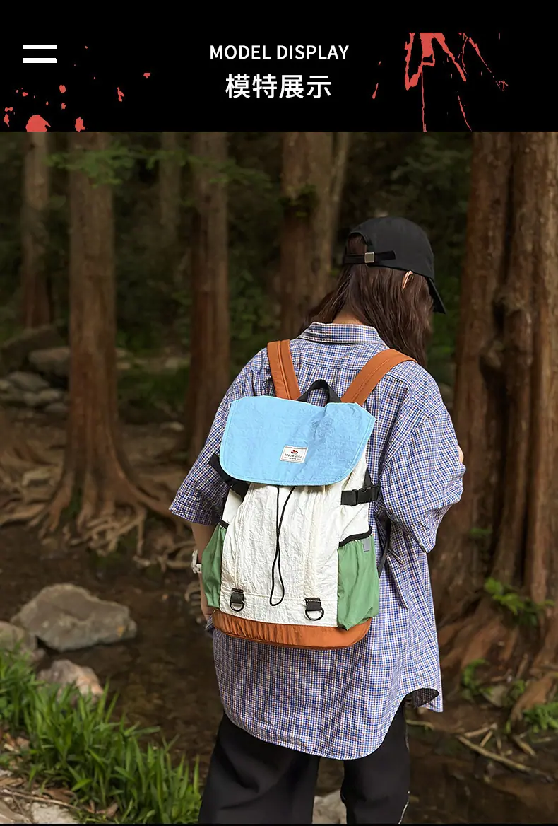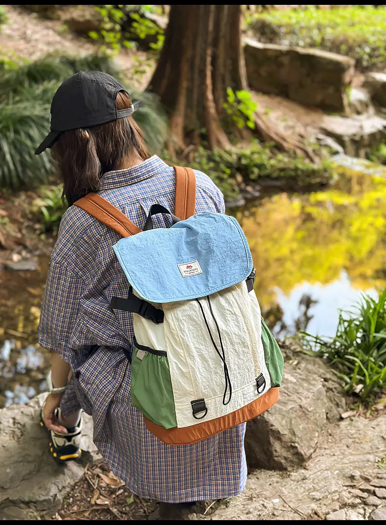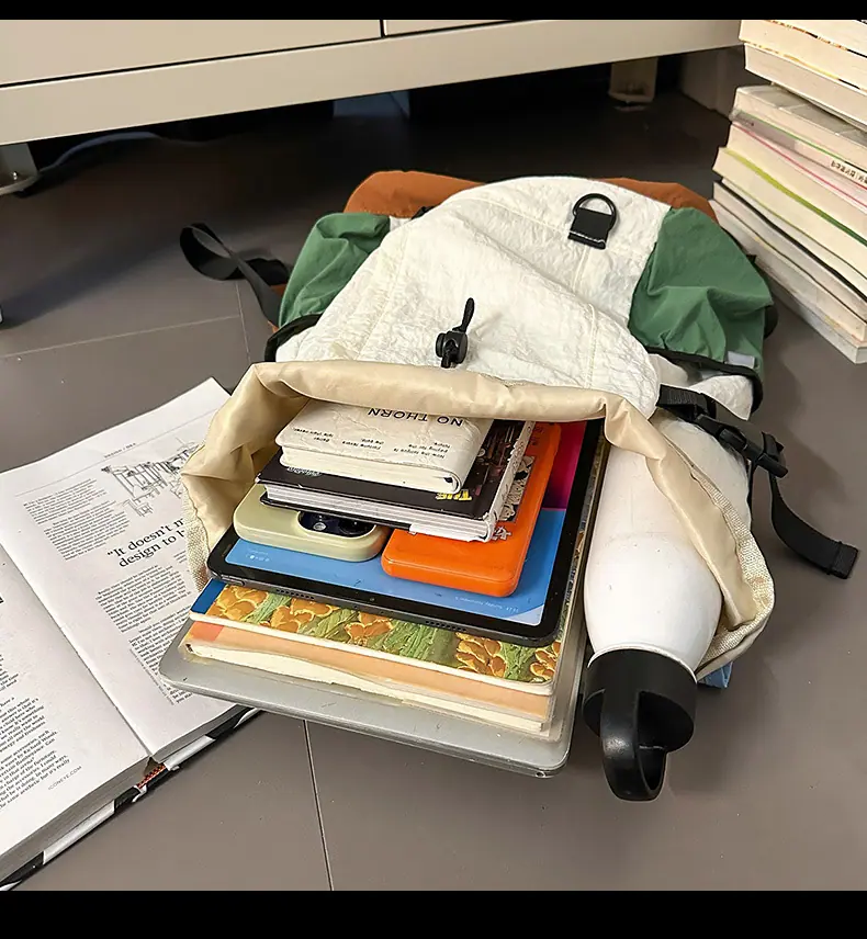Mochila ligera de gran capacidad con bloques de color transfronteriza 2025 nueva versátil para viajes y desplazamientos, bolsa de estudiante de comercio exterior