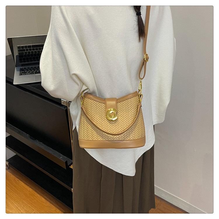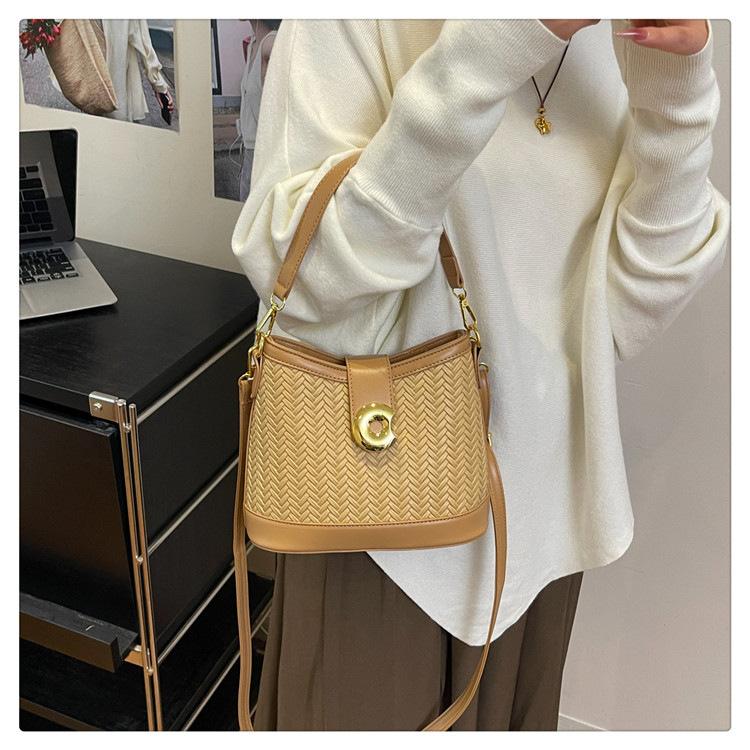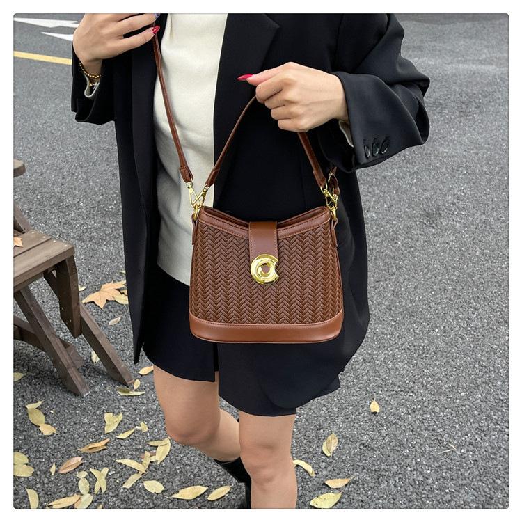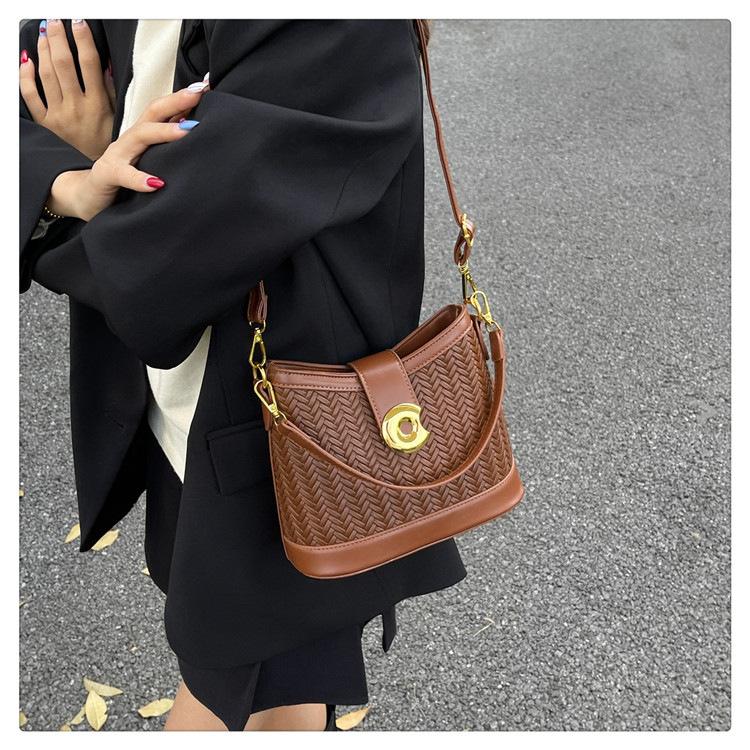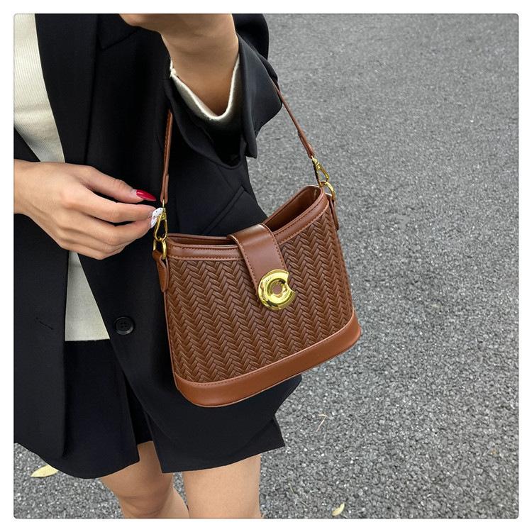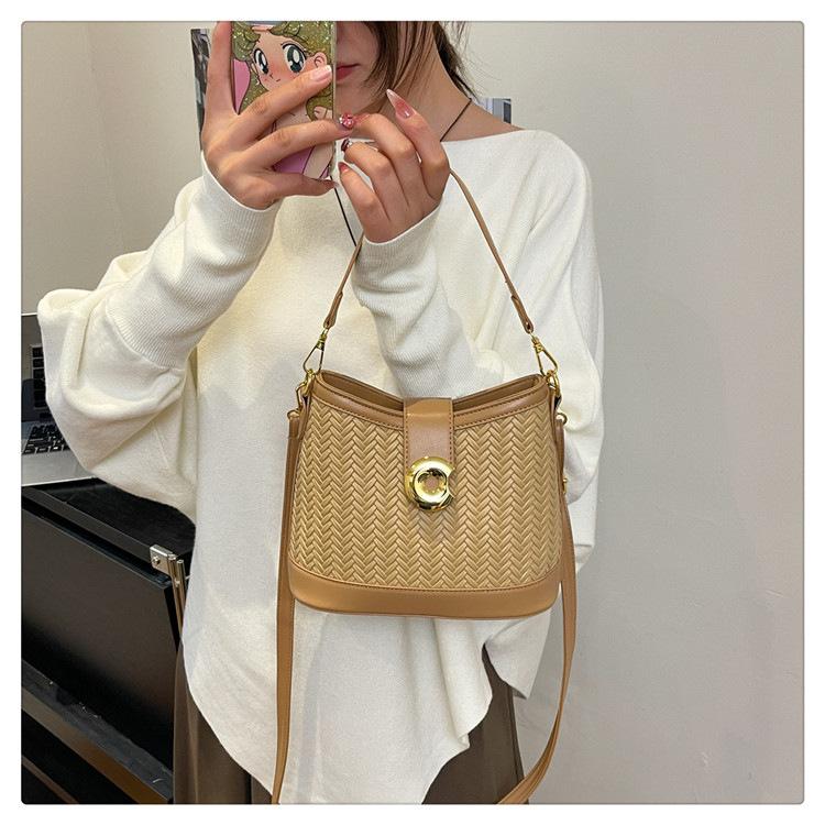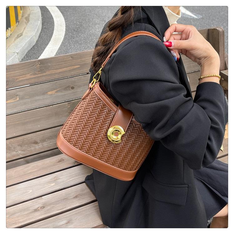 Bolsos de Diseño Nicho Mujer 2025 Nuevo Bolso Bucket Versátil Temperamento Tejido Bolso de Hombro Bolso Bandolera Sobaco Estilo Coreano