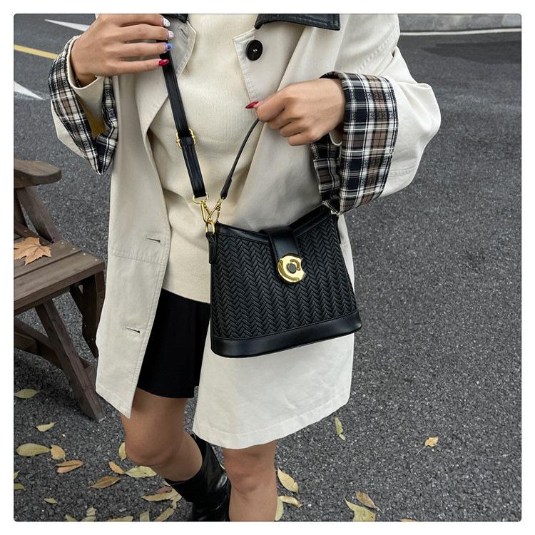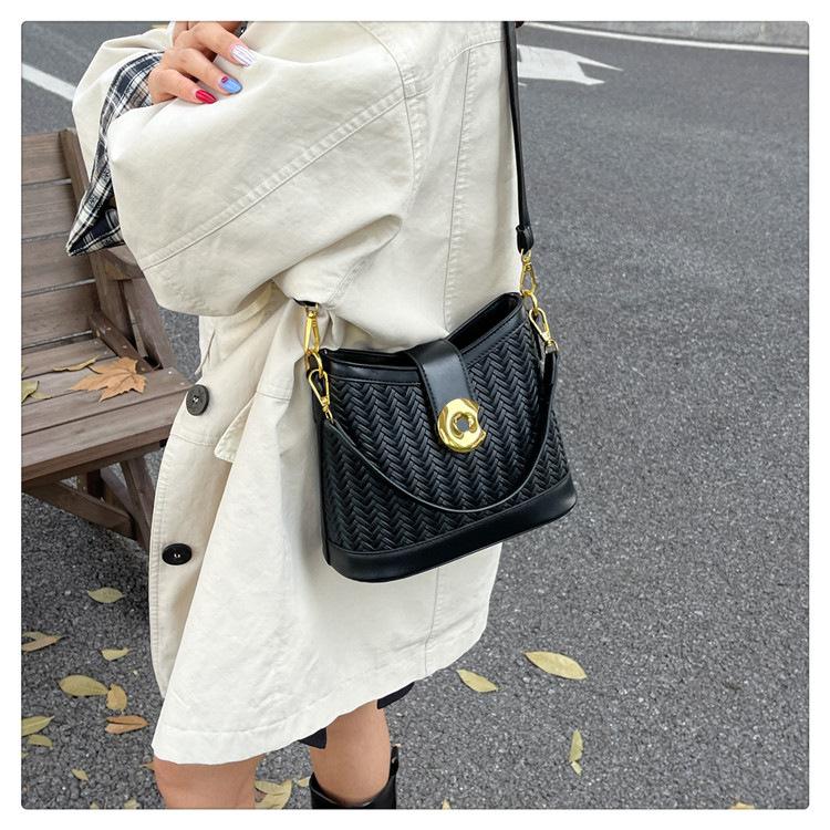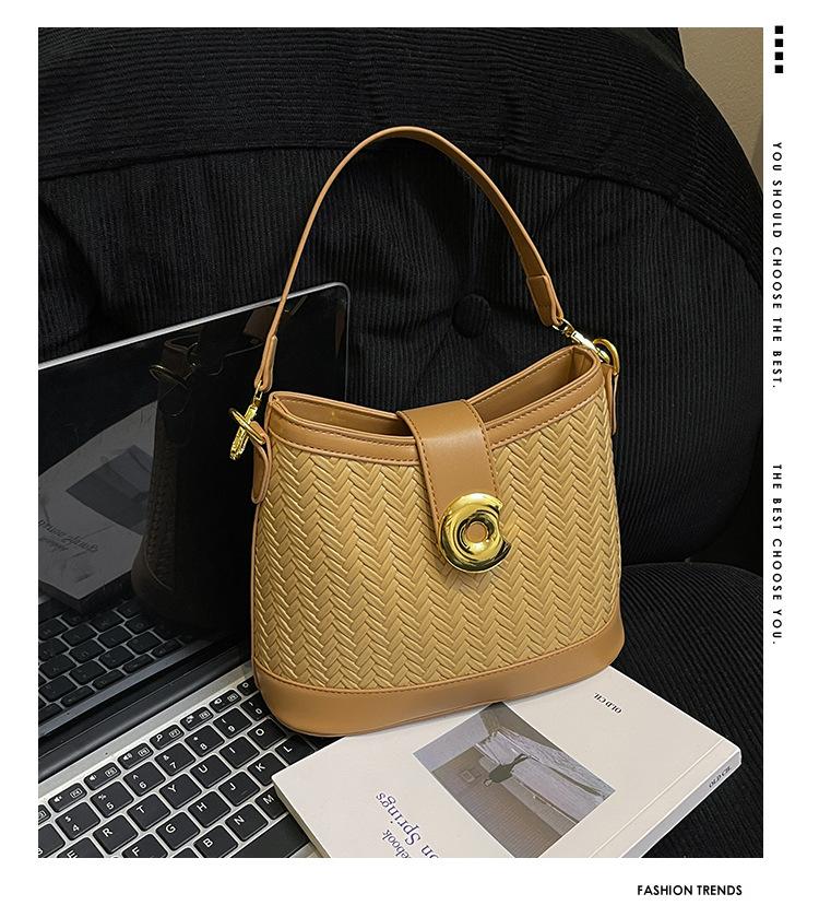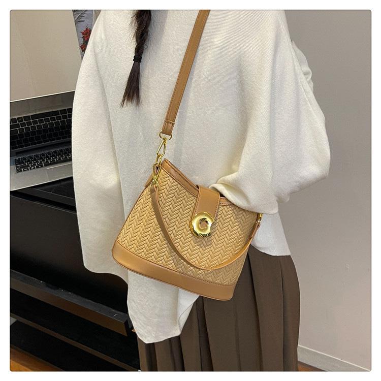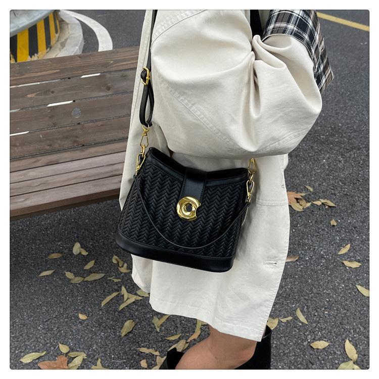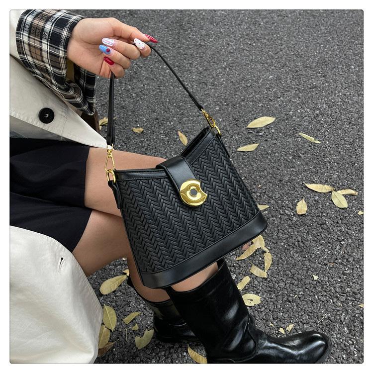 Bolsos de Diseño Nicho Mujer 2025 Nuevo Bolso Bucket Versátil Temperamento Tejido Bolso de Hombro Bolso Bandolera Sobaco Estilo Coreano