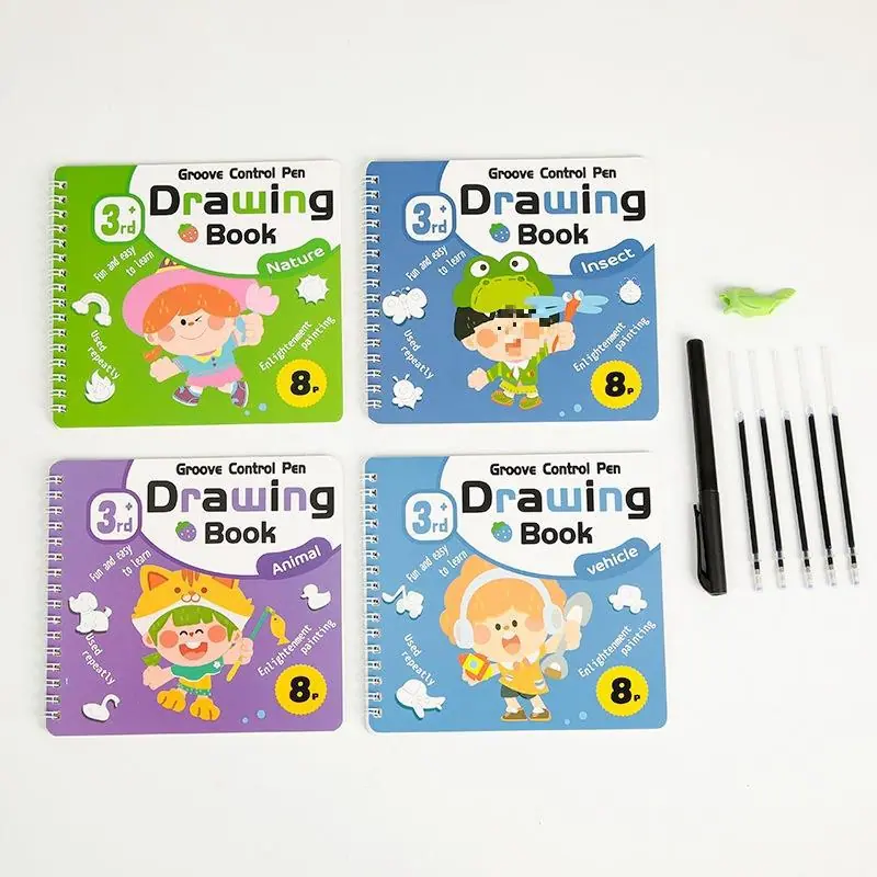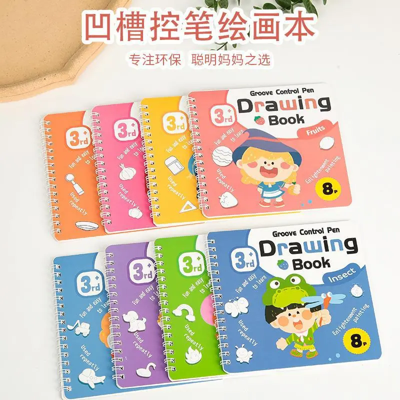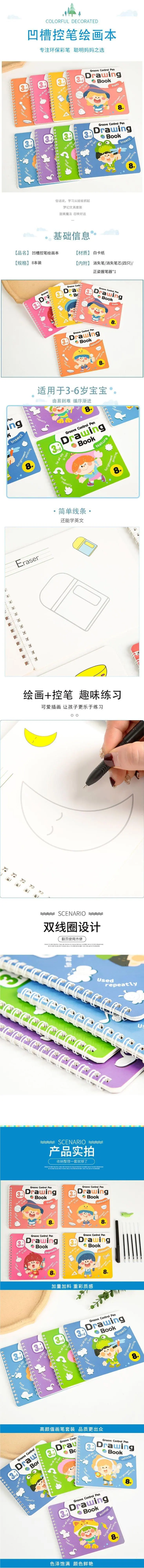 Libro de dibujo para entrenamiento, libro de dibujo con surcos para aprendizaje, iluminación para dibujar, niños, figura de palo, control del bolígrafo, cuaderno para copiar, jardín de infantes