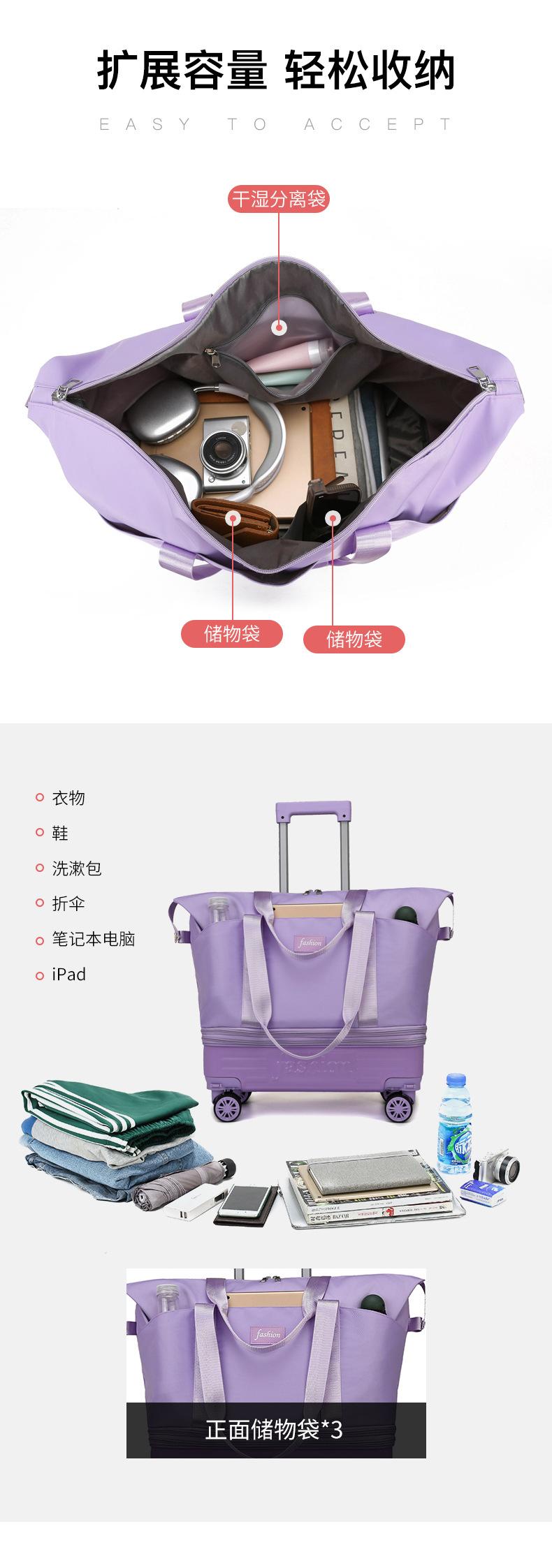 Bolsa de Viaje de Gran Capacidad Ligera Trolley Viaje de Negocios Viaje Corto Bolsa de Almacenamiento Bolsa de Equipaje Expandible para Exterior Bolsa de Gimnasio Multifuncional