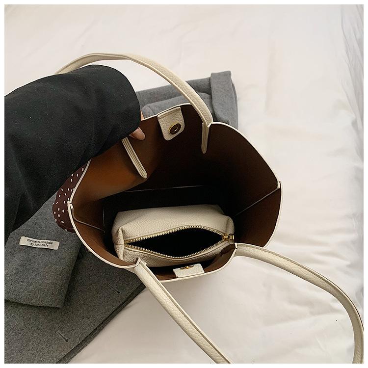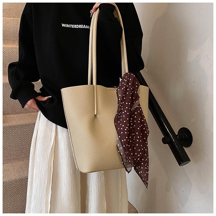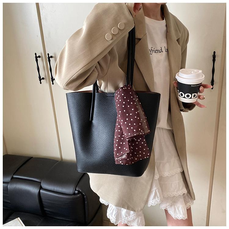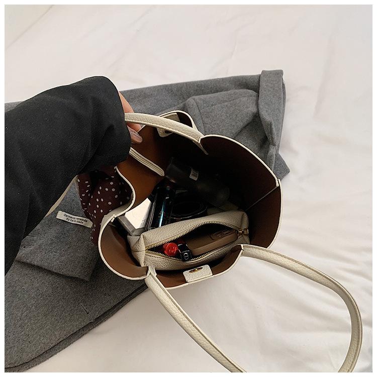 Bolso Retro Transfronterizo para Mujer 2025 Nuevo Simple Suave de Hombro Lateral Tipo Cubo Casual Portátil Bolso de Mano al por Mayor