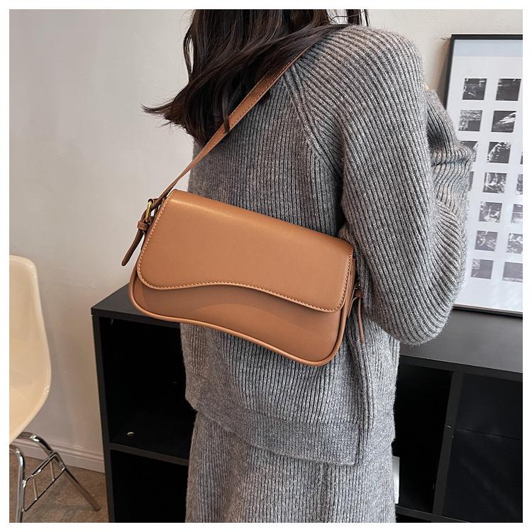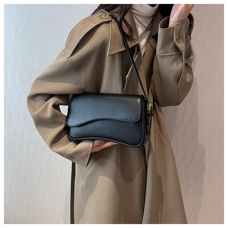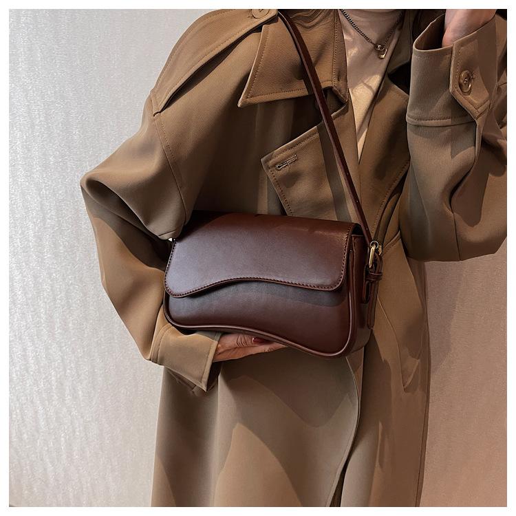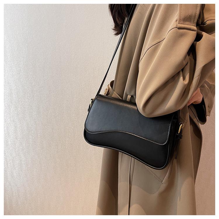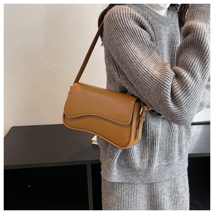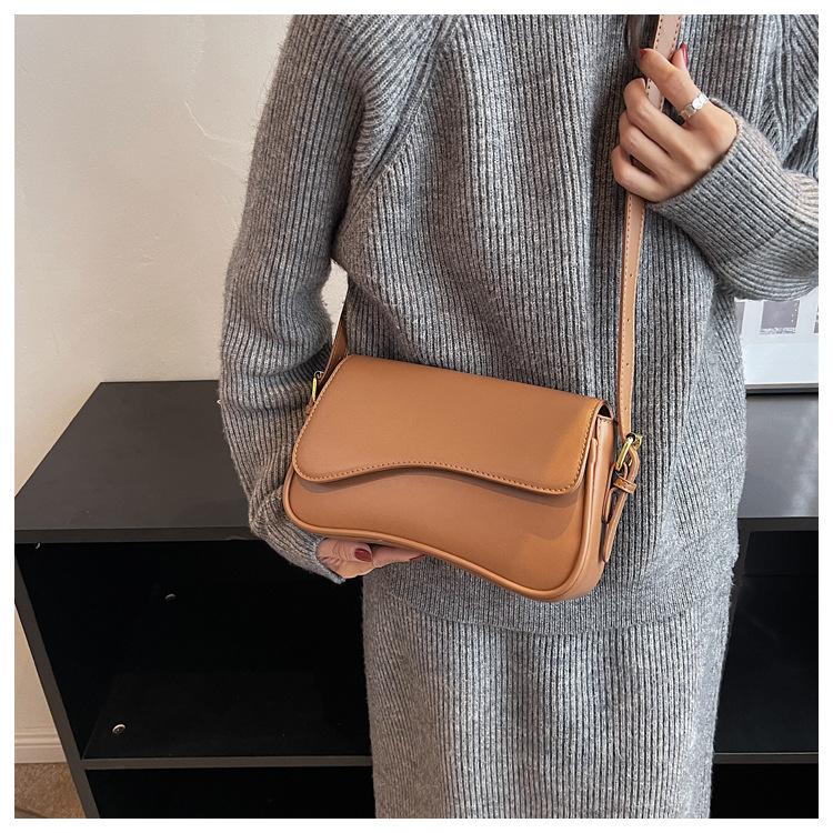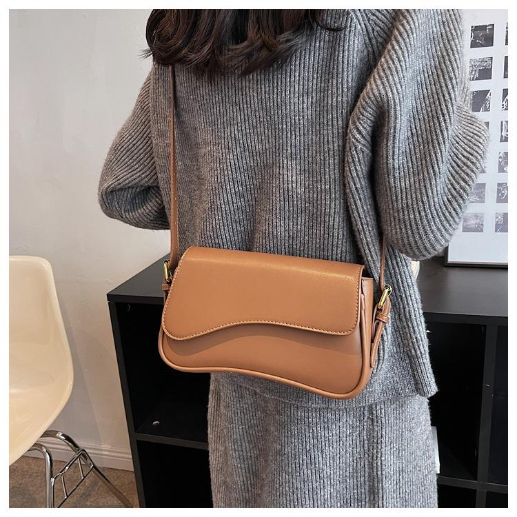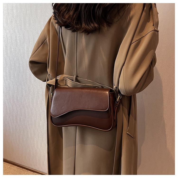 Bolso Cruzado de Estilo Occidental Retro de Color Puro Estilo Hong Kong para Mujer 2025 Bolso de Hombro de Moda con Textura Estilo Coreano Bolso de Mano Versátil y Trendy