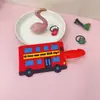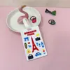 Blue windmill, Blue airplane, Paris tower, London street scene, Red car, Pink hot air balloon