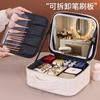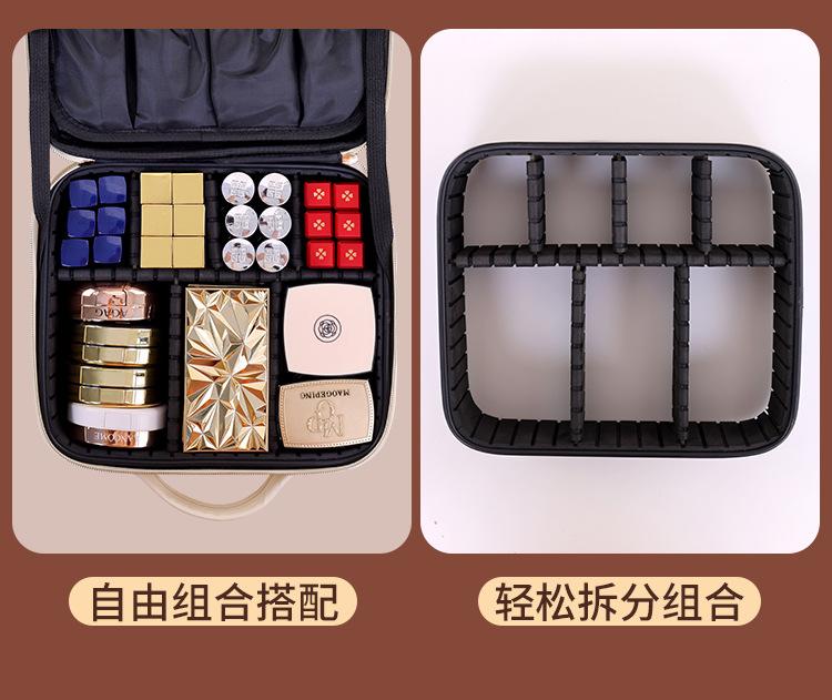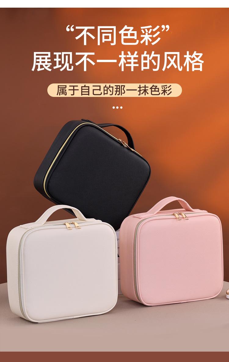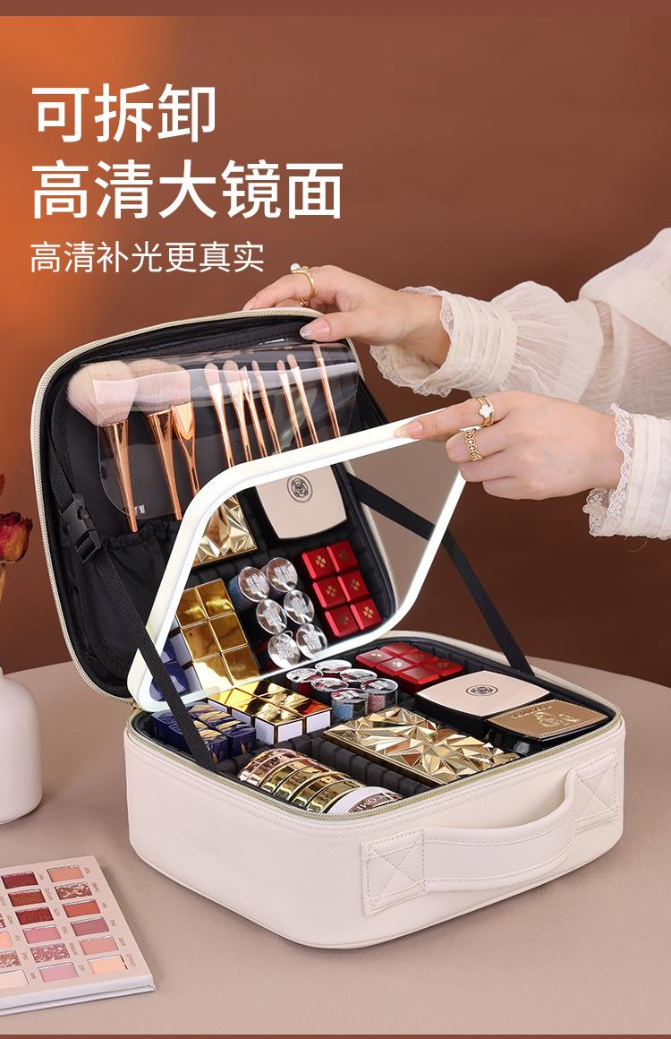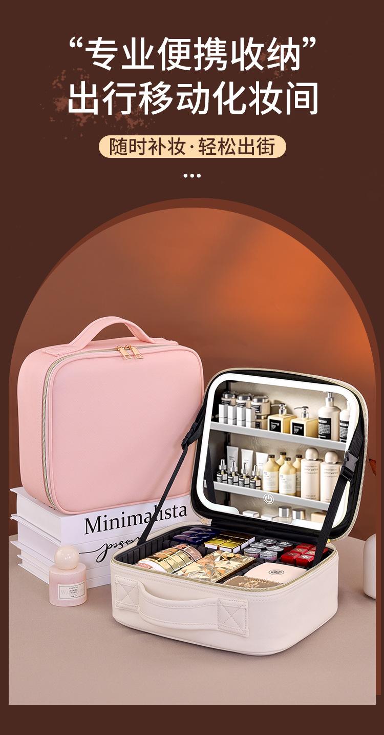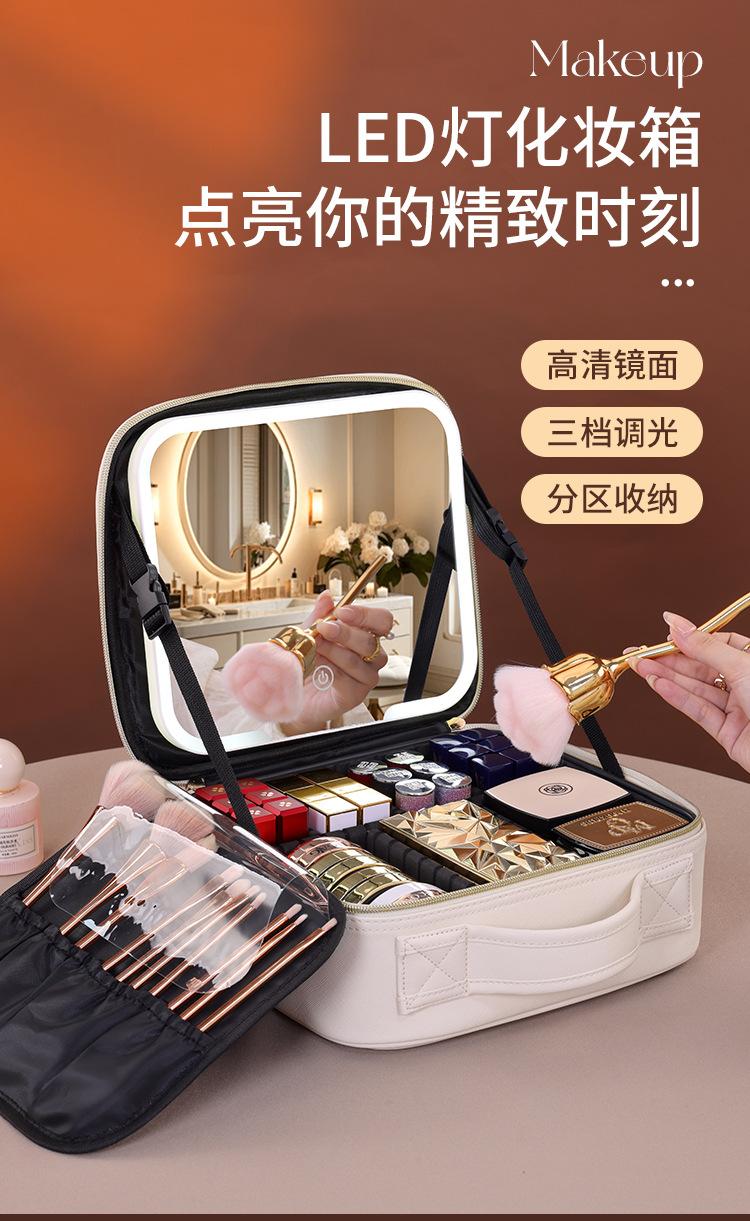 Caja de neceser de maquillaje transfronteriza de gran venta con tira de luz y espejo, gran capacidad, portátil para viajes, bolsa de almacenamiento de cosméticos de mano