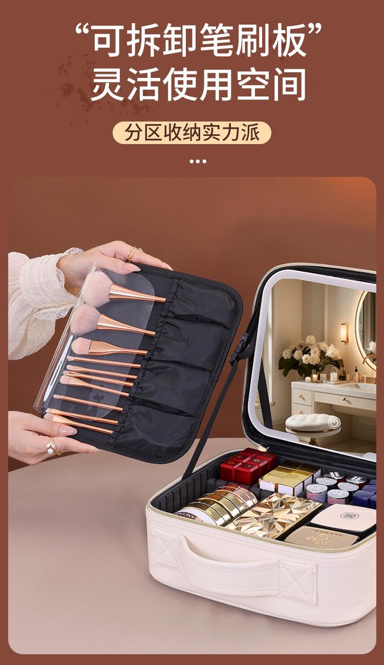 LED light mirror/Makeup brush board/Partition divider/Independent carton—Eggshell rice