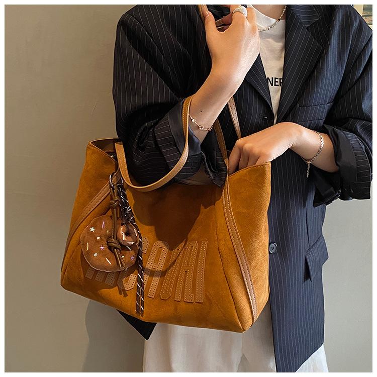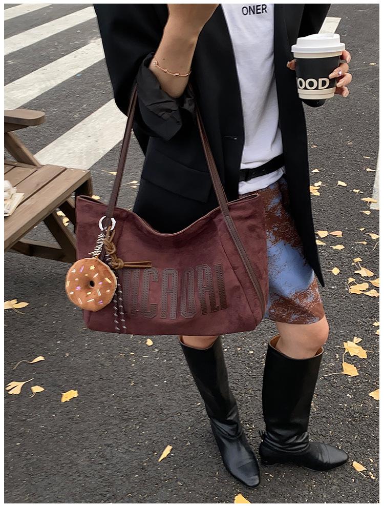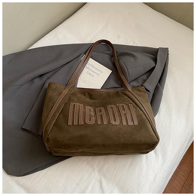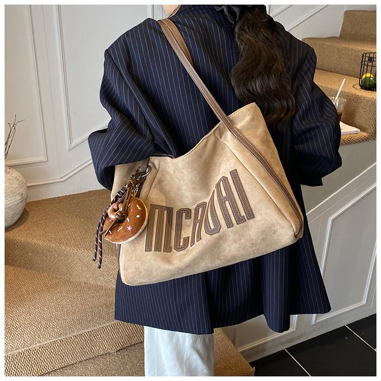 Bolso casual de un solo hombro de gran capacidad para clase, bolso tipo cubo simple, versátil, retro, para ir al trabajo, bolso tote, comercio exterior transfronterizo