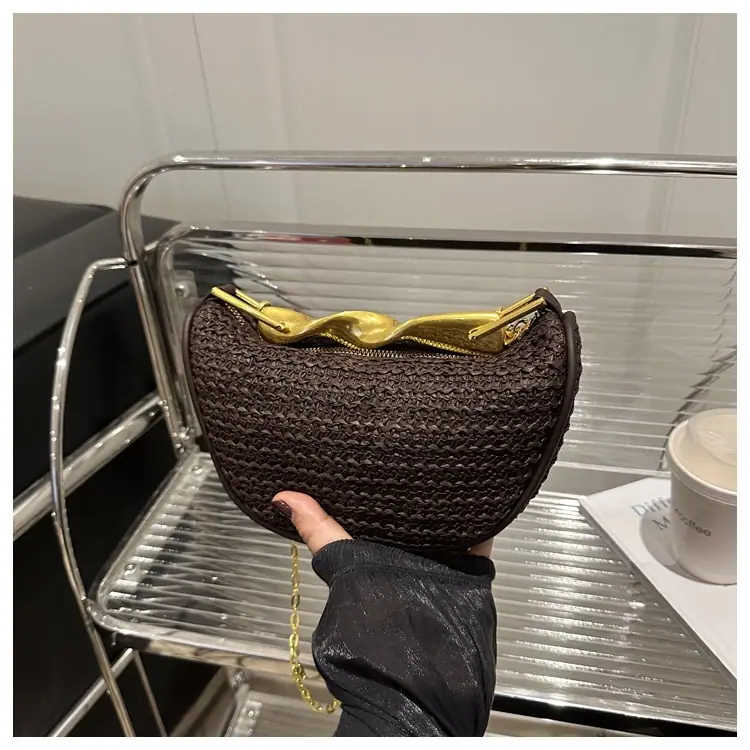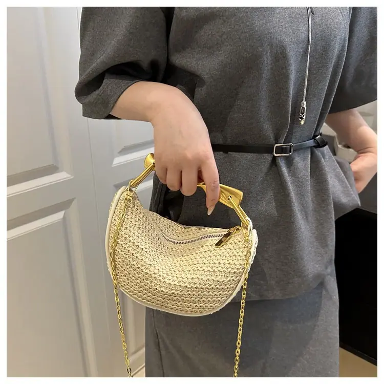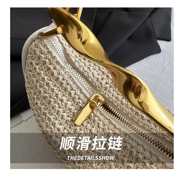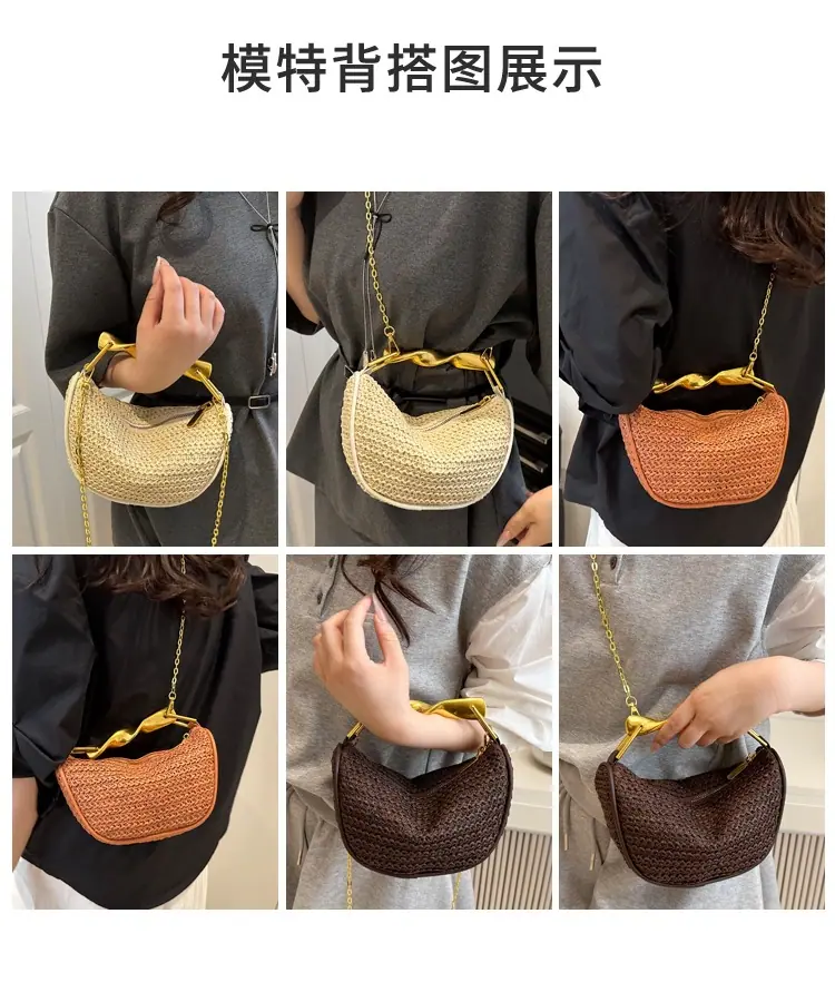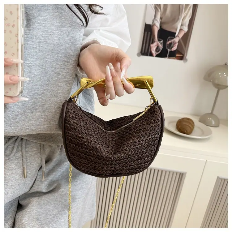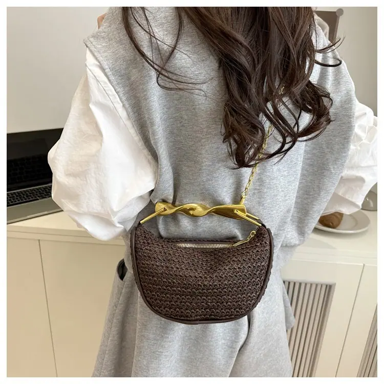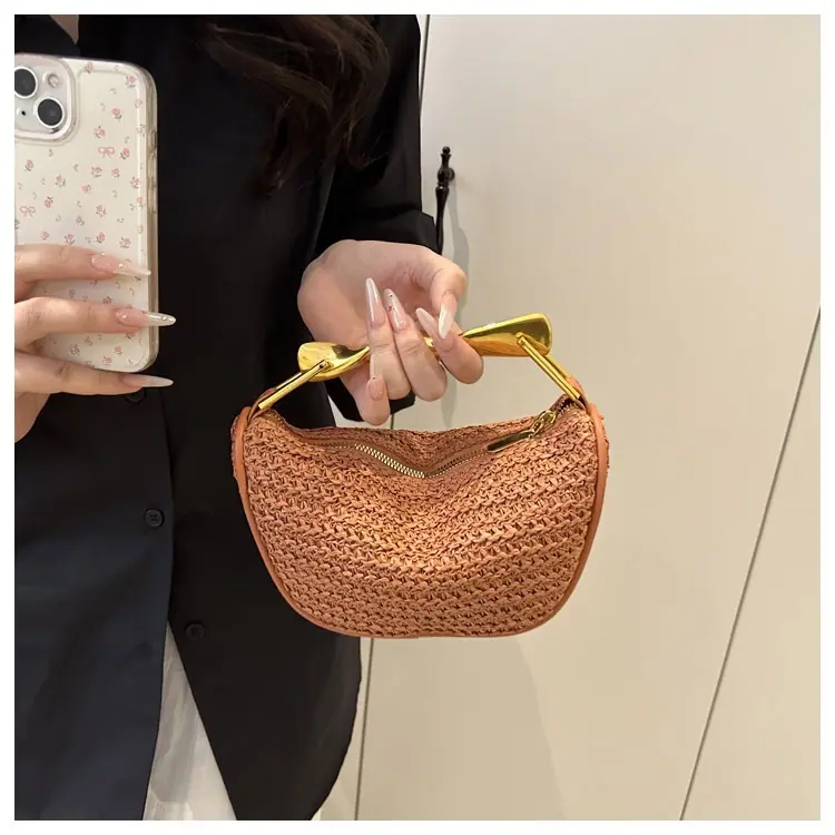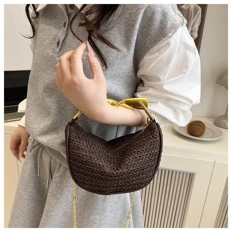 2025 Verano Nuevo Bolso de Mujer Bolso de Hombro Asa Metálica Mini Bandolera Cierre Cremallera Casual Moda Elegante Bolso Tejido