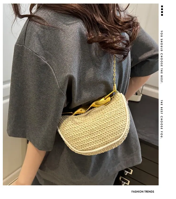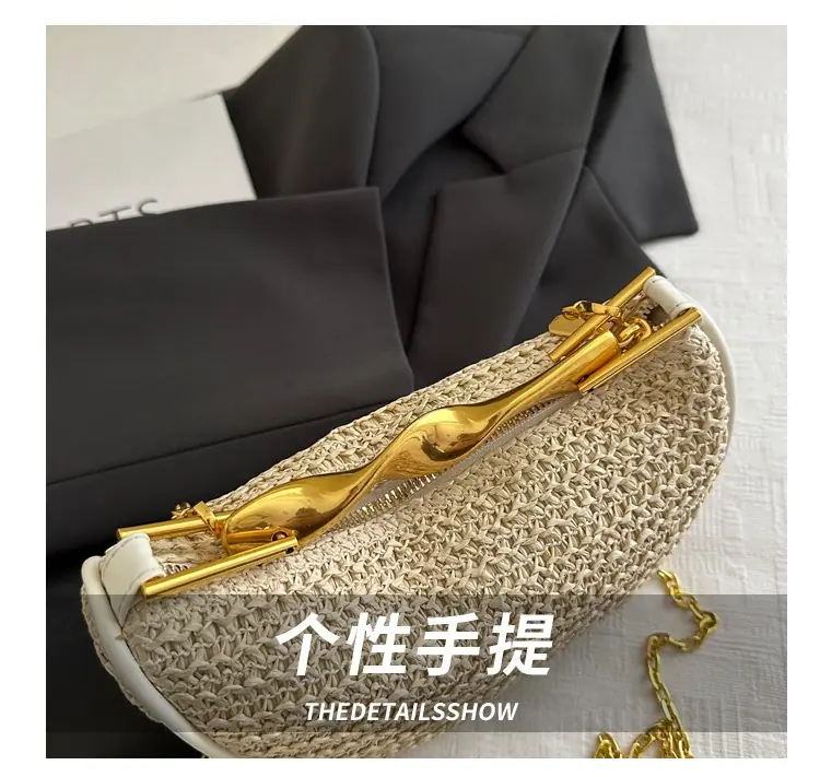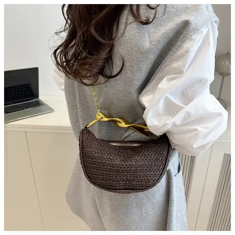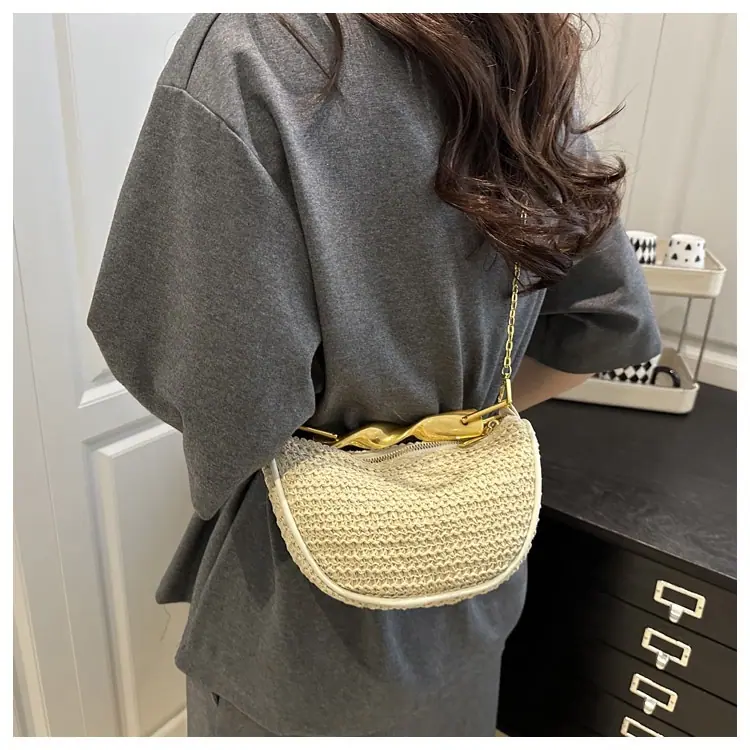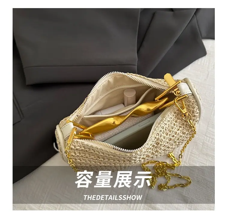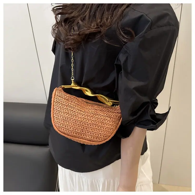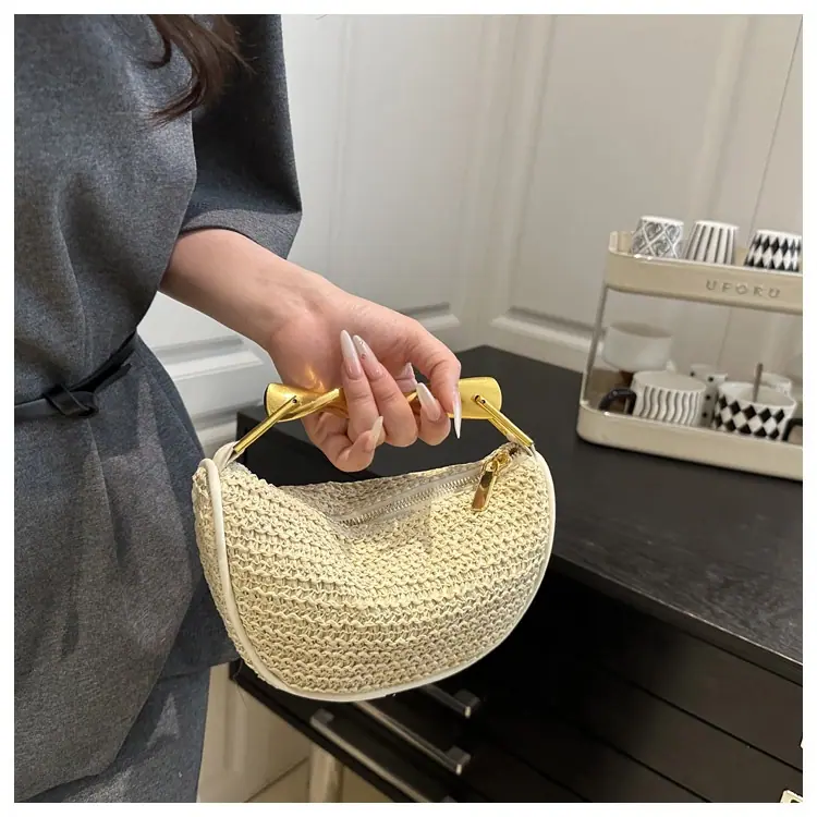 2025 Verano Nuevo Bolso de Mujer Bolso de Hombro Asa Metálica Mini Bandolera Cierre Cremallera Casual Moda Elegante Bolso Tejido