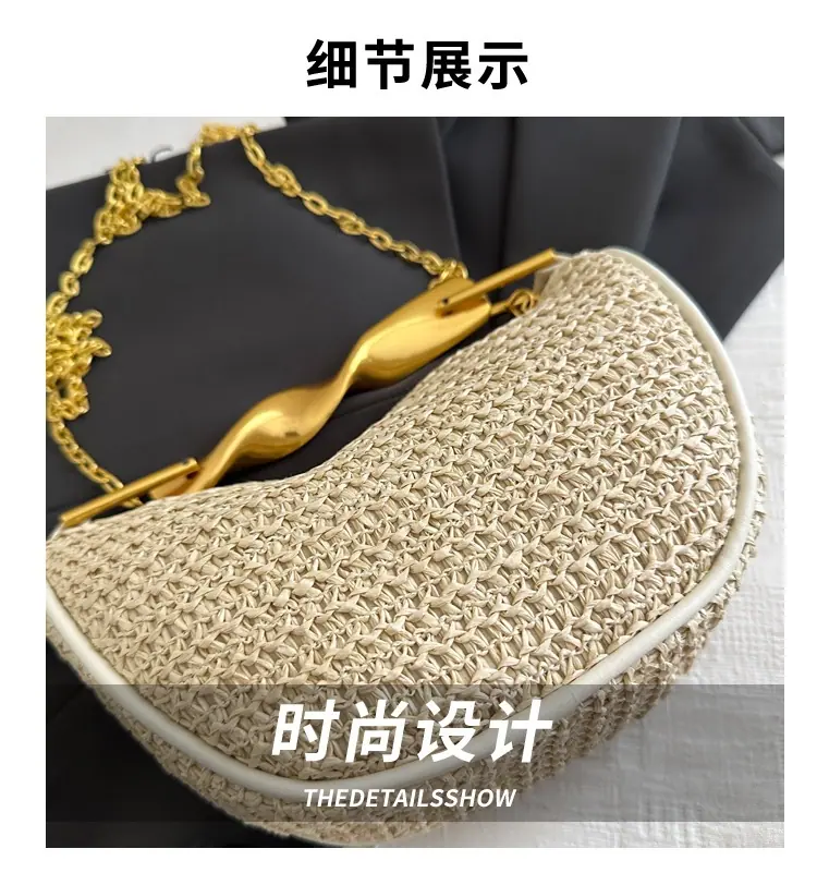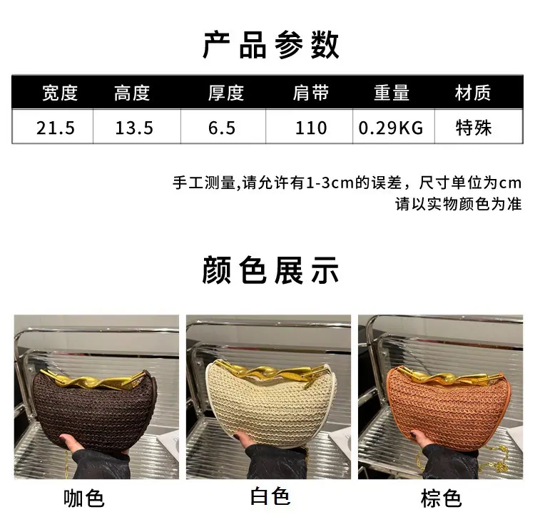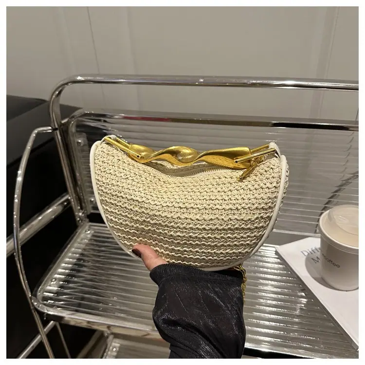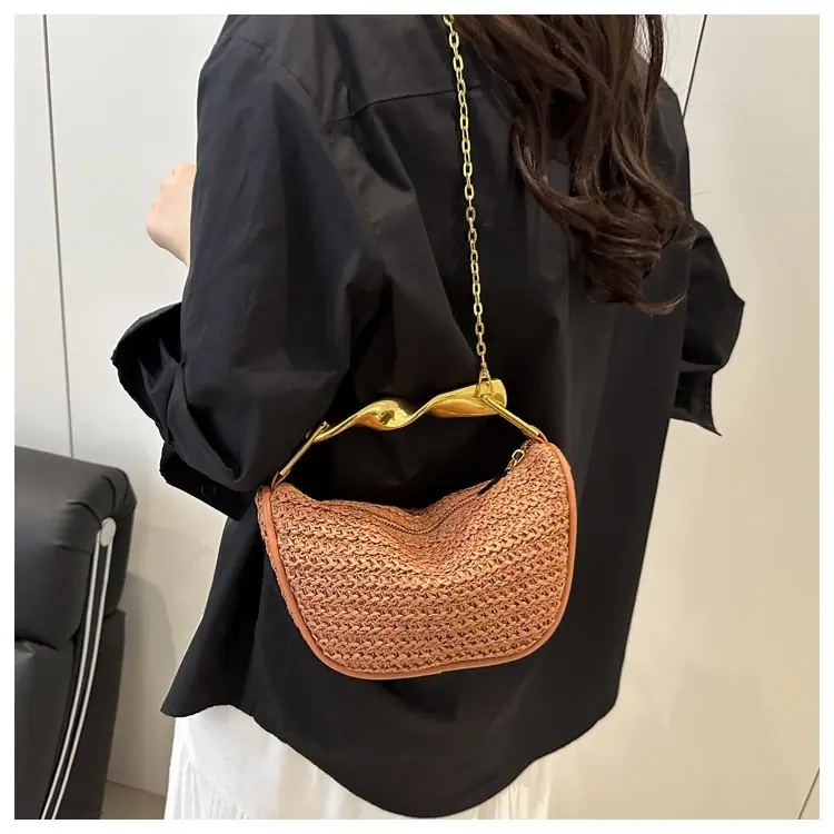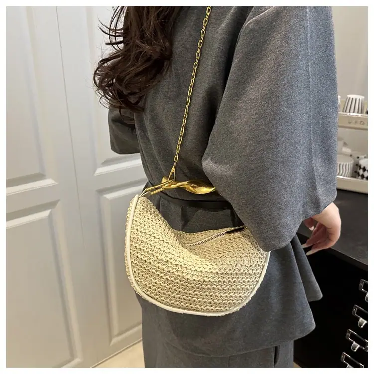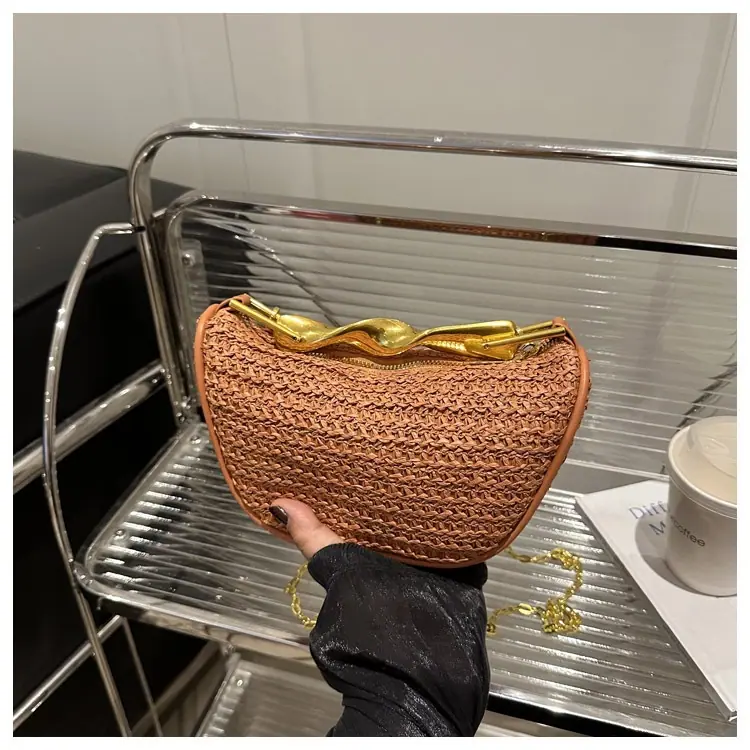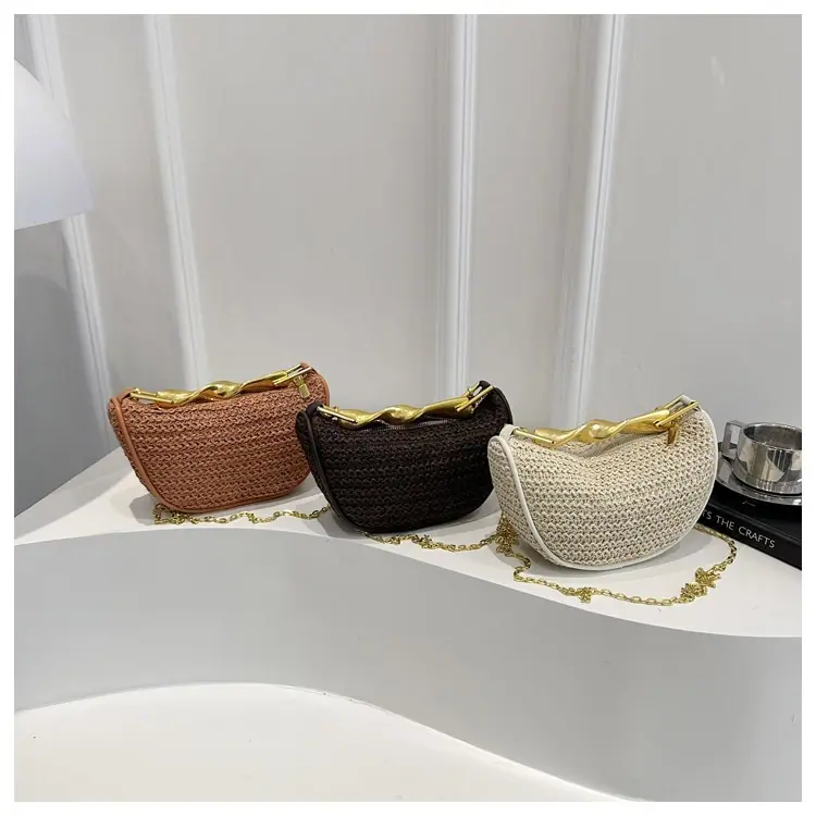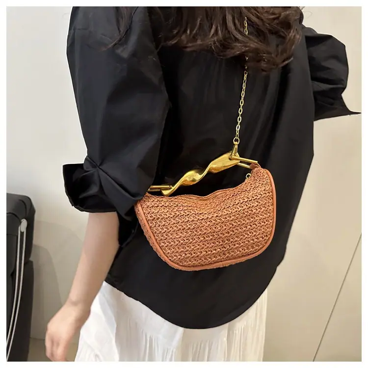 2025 Verano Nuevo Bolso de Mujer Bolso de Hombro Asa Metálica Mini Bandolera Cierre Cremallera Casual Moda Elegante Bolso Tejido