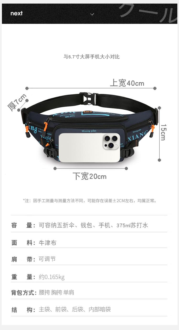 Tendencia transfronteriza bolsa de pecho para hombre moda versátil casual viaje bandolera deportes callejeros al aire libre bolsa de pecho cruzada