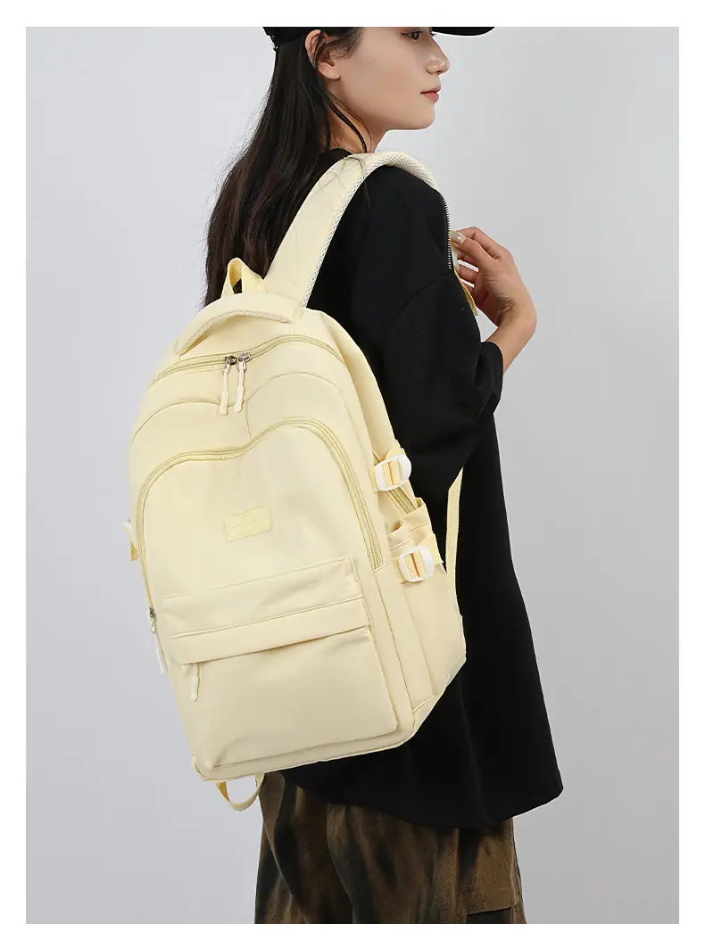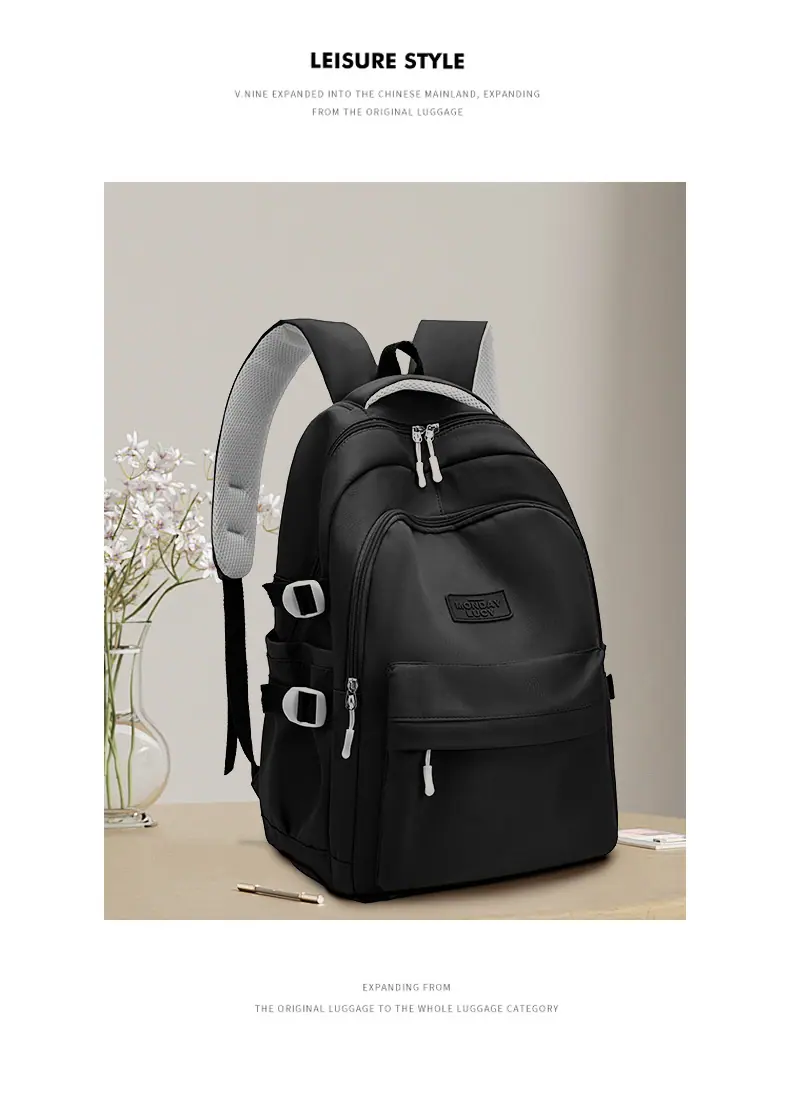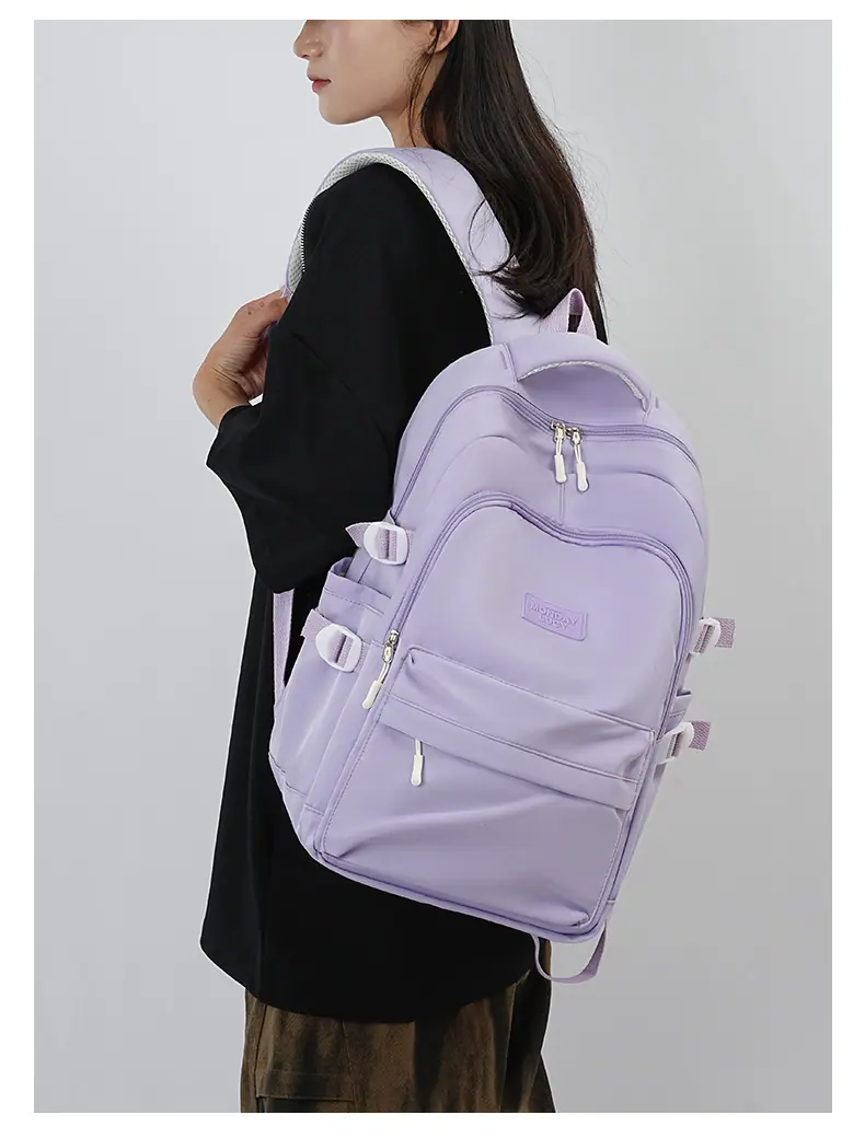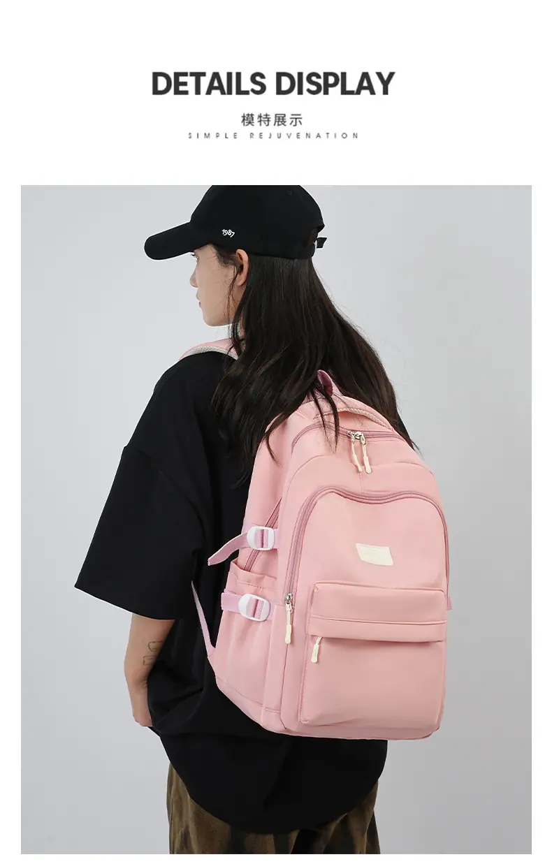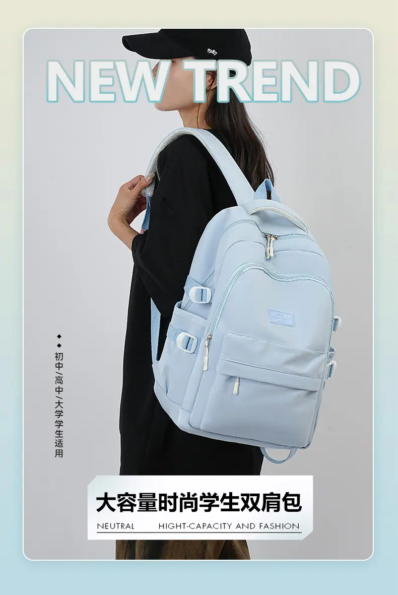 Mochila para mujer de color sólido nueva para el viaje diario, mochila para computadora de gran capacidad, casual, para estudiantes de secundaria y preparatoria
