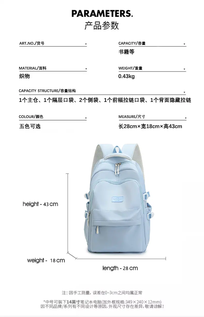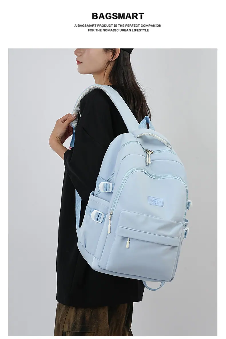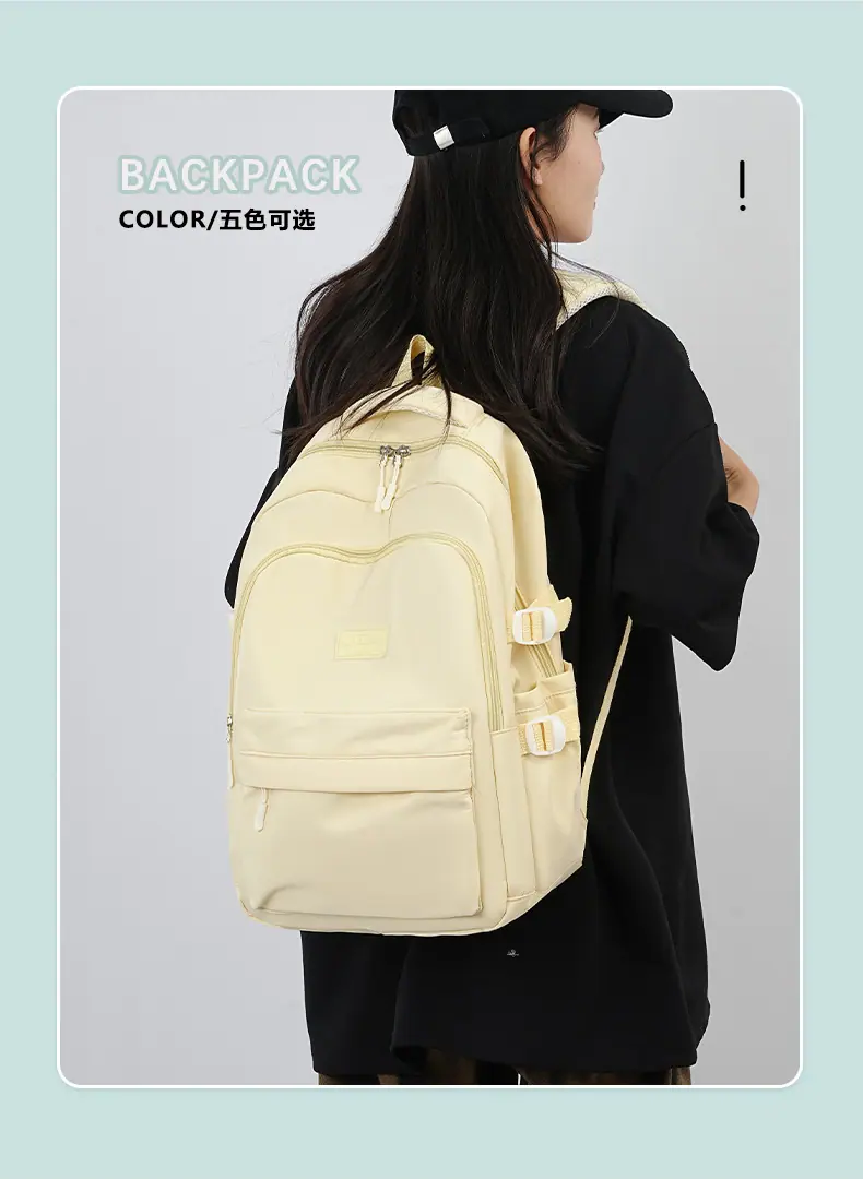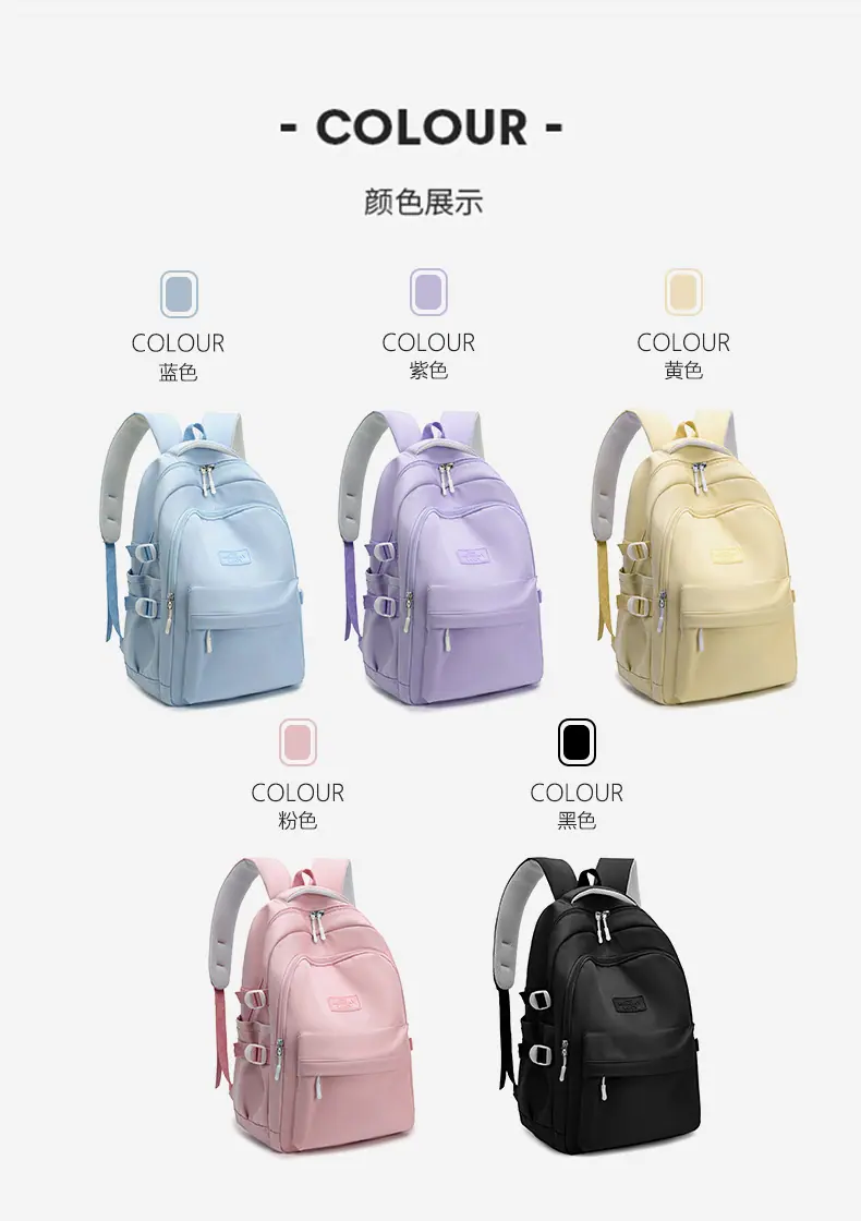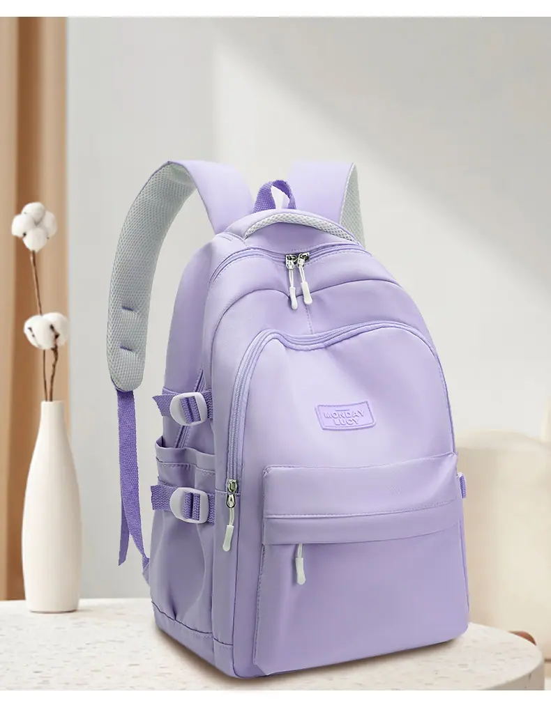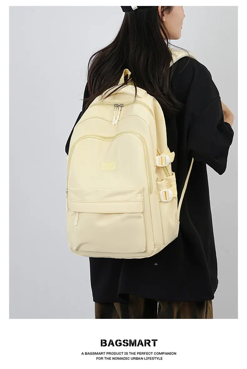 Mochila para mujer de color sólido nueva para el viaje diario, mochila para computadora de gran capacidad, casual, para estudiantes de secundaria y preparatoria