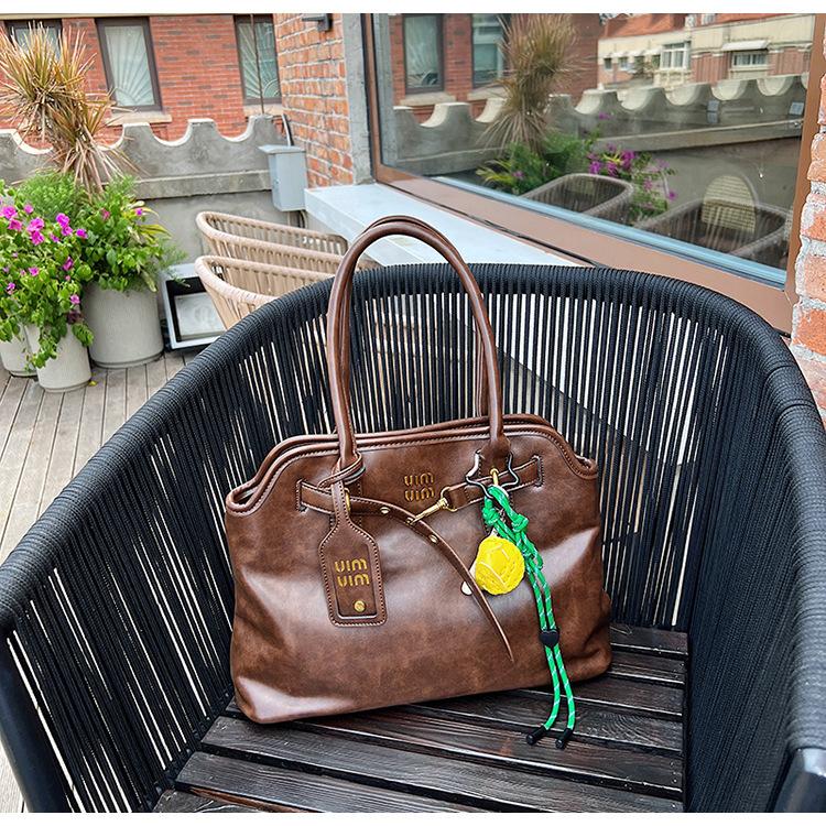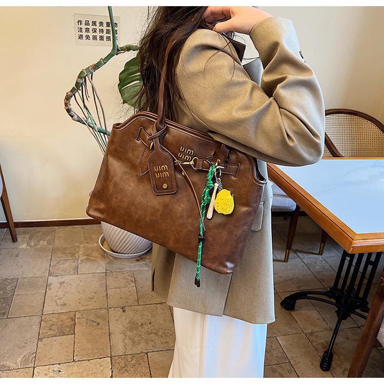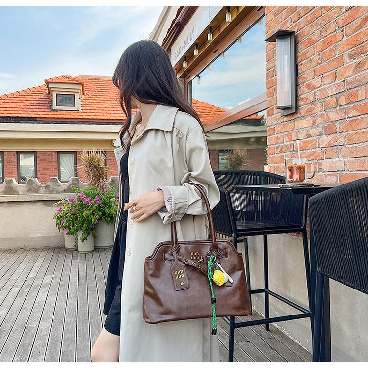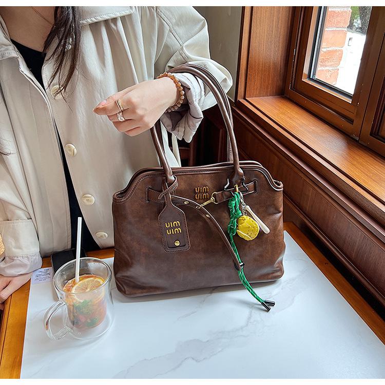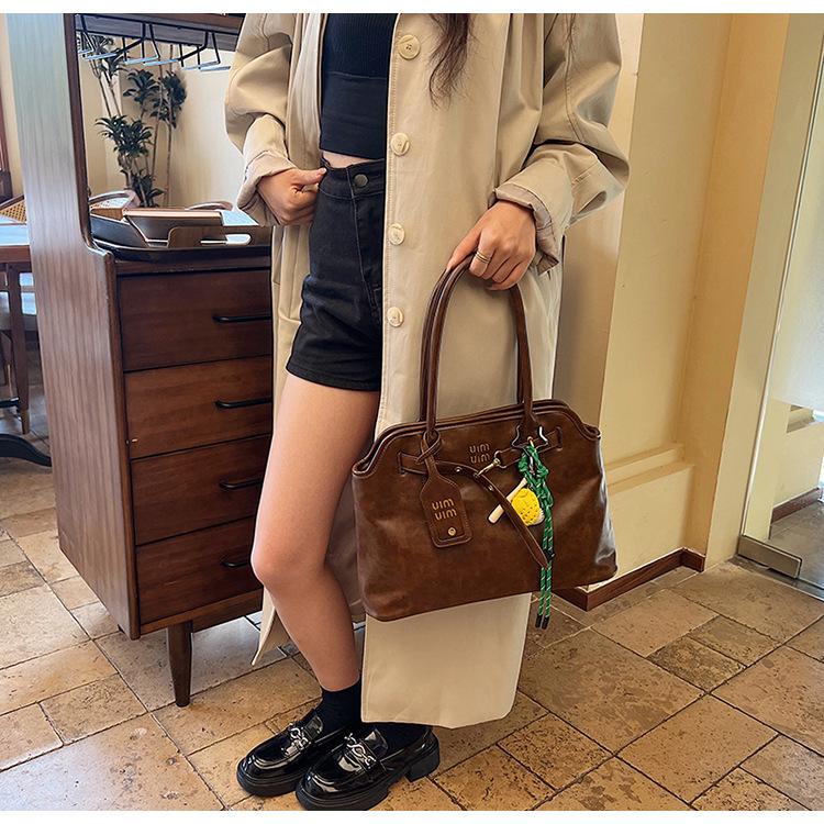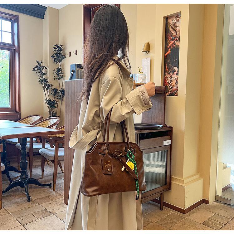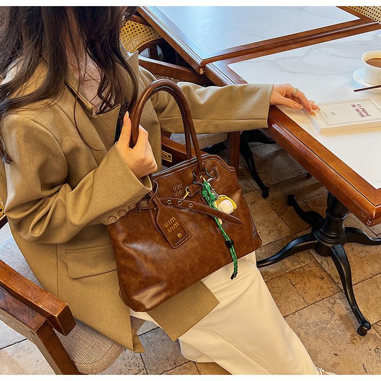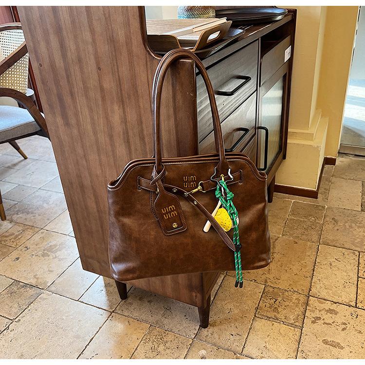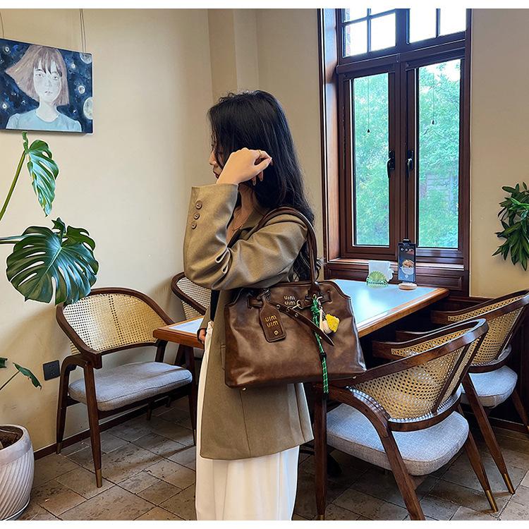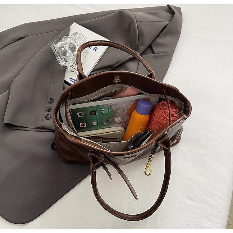 Bolso de mano vintage de gran capacidad para mujer, bolso de mano informal de moda, bolso de hombro moderno de nicho, 2024