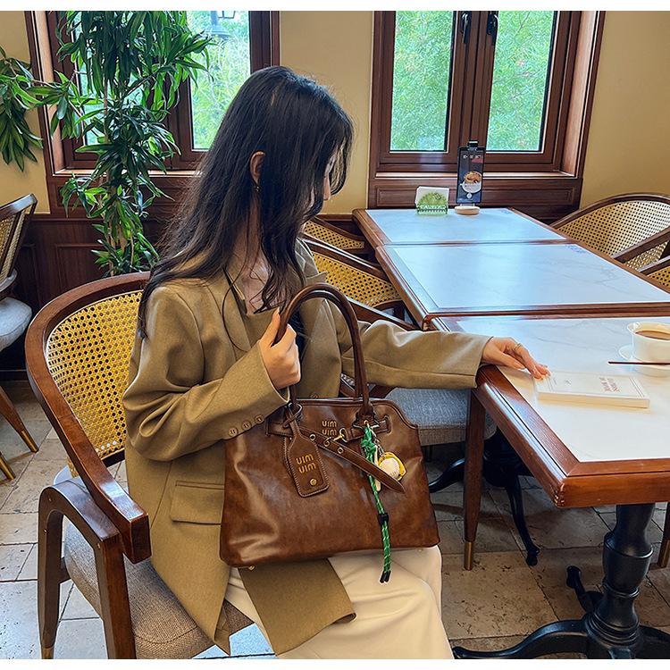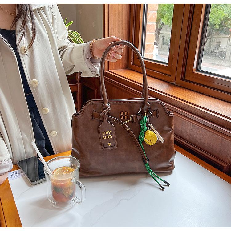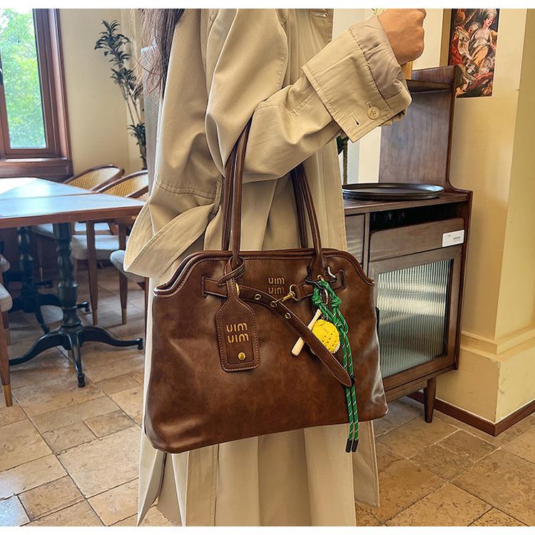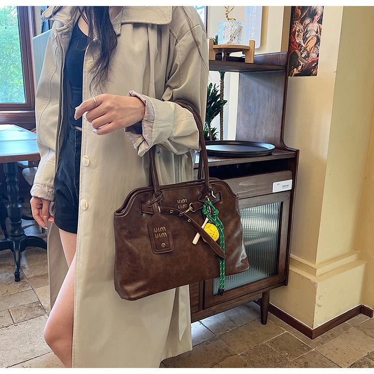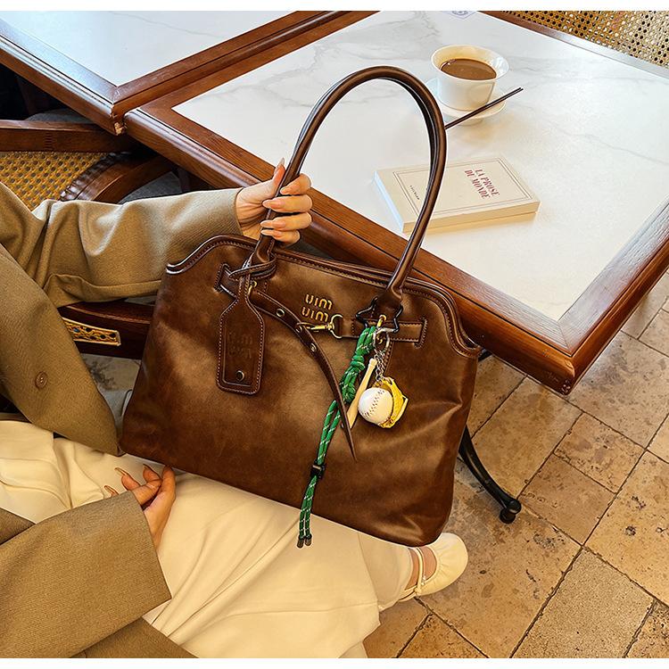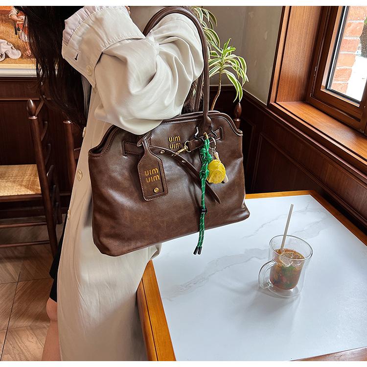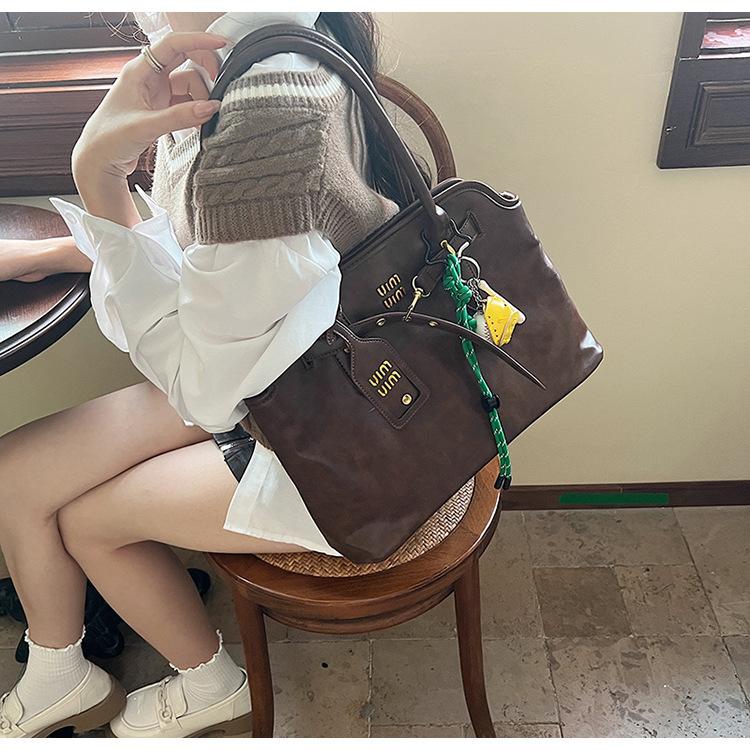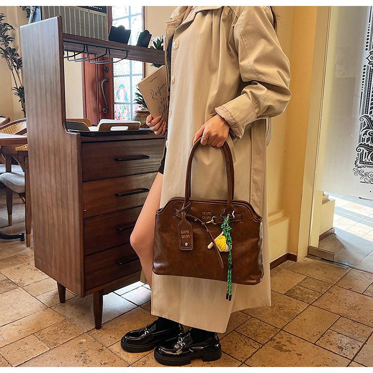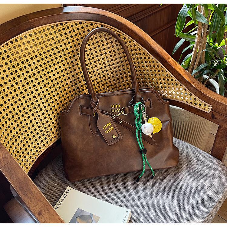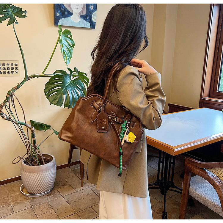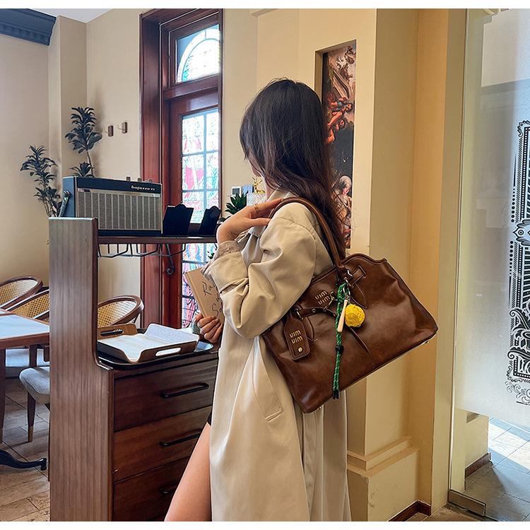 Bolso de mano vintage de gran capacidad para mujer, bolso de mano informal de moda, bolso de hombro moderno de nicho, 2024