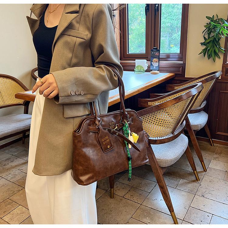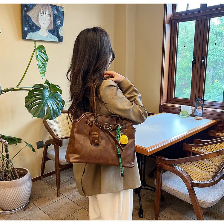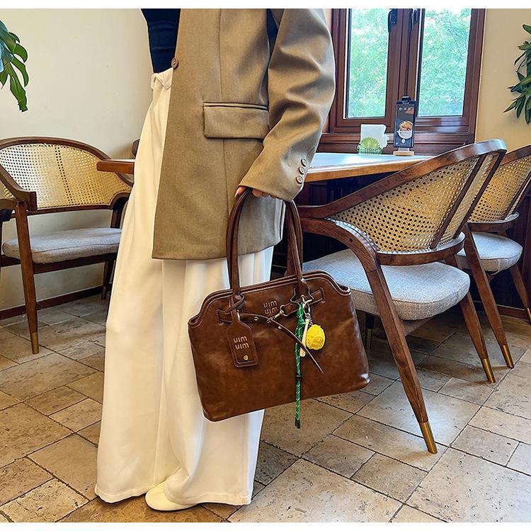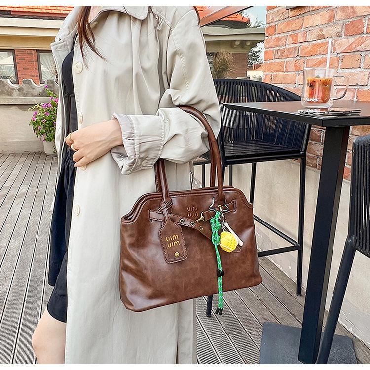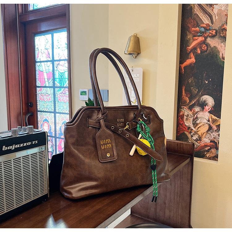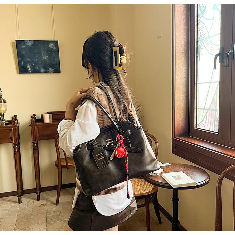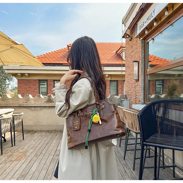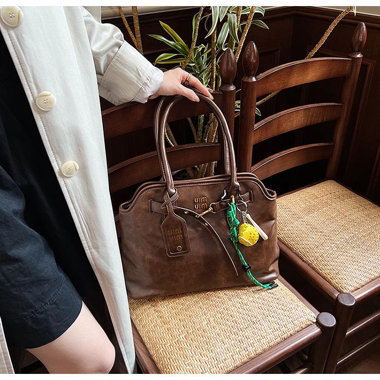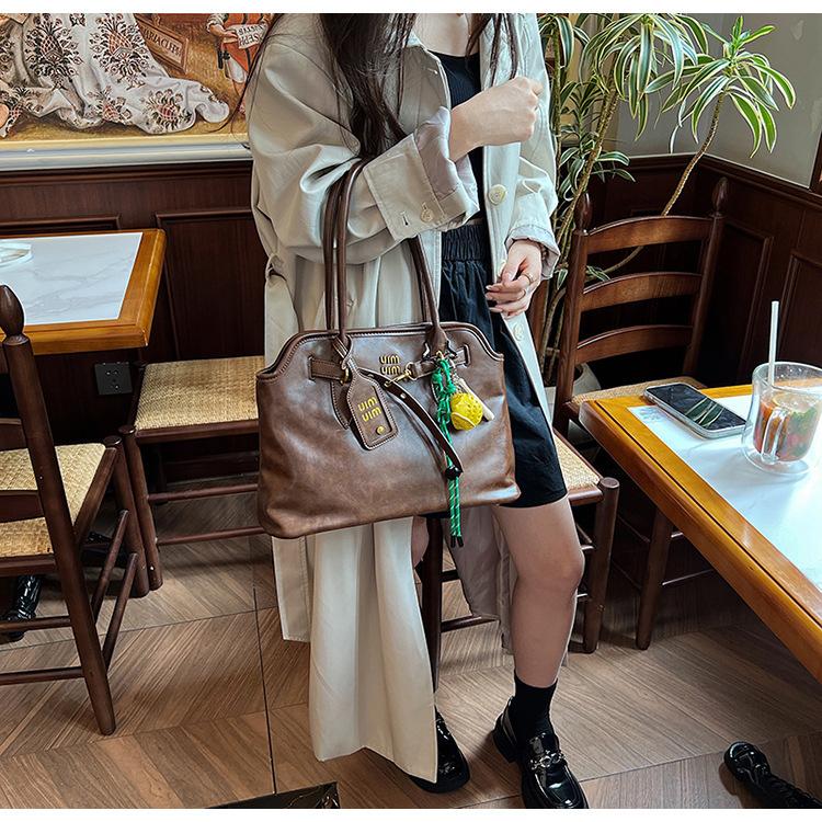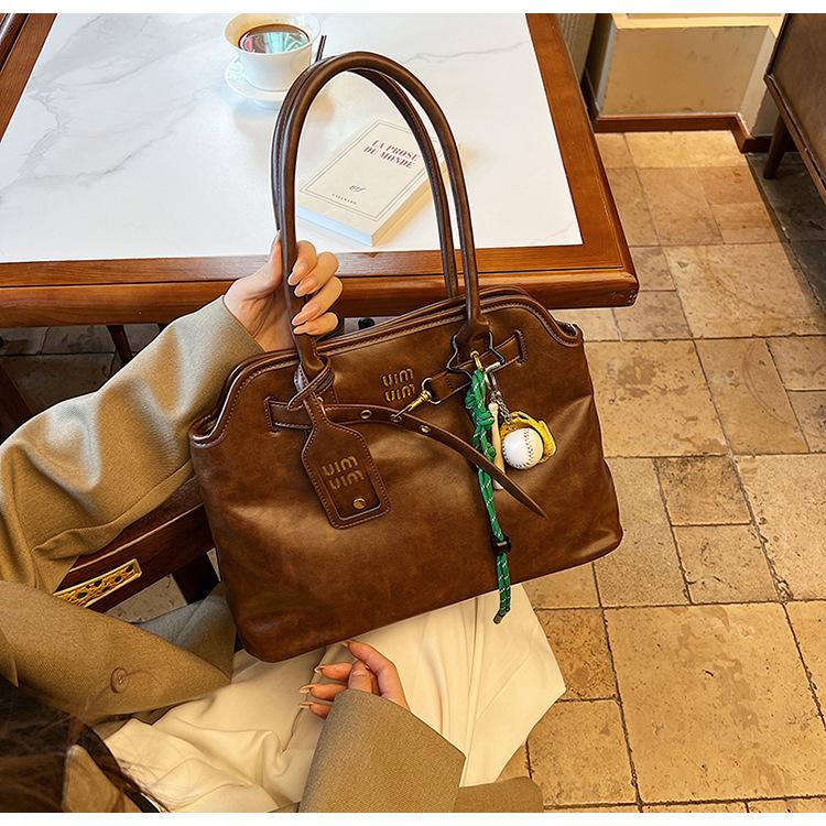 Bolso de mano vintage de gran capacidad para mujer, bolso de mano informal de moda, bolso de hombro moderno de nicho, 2024
