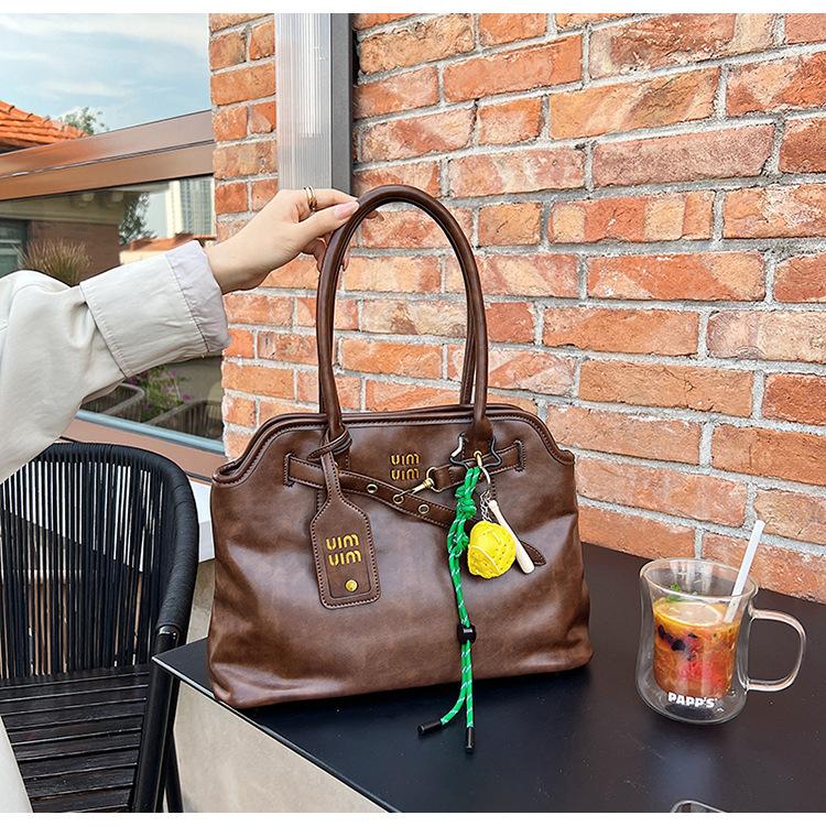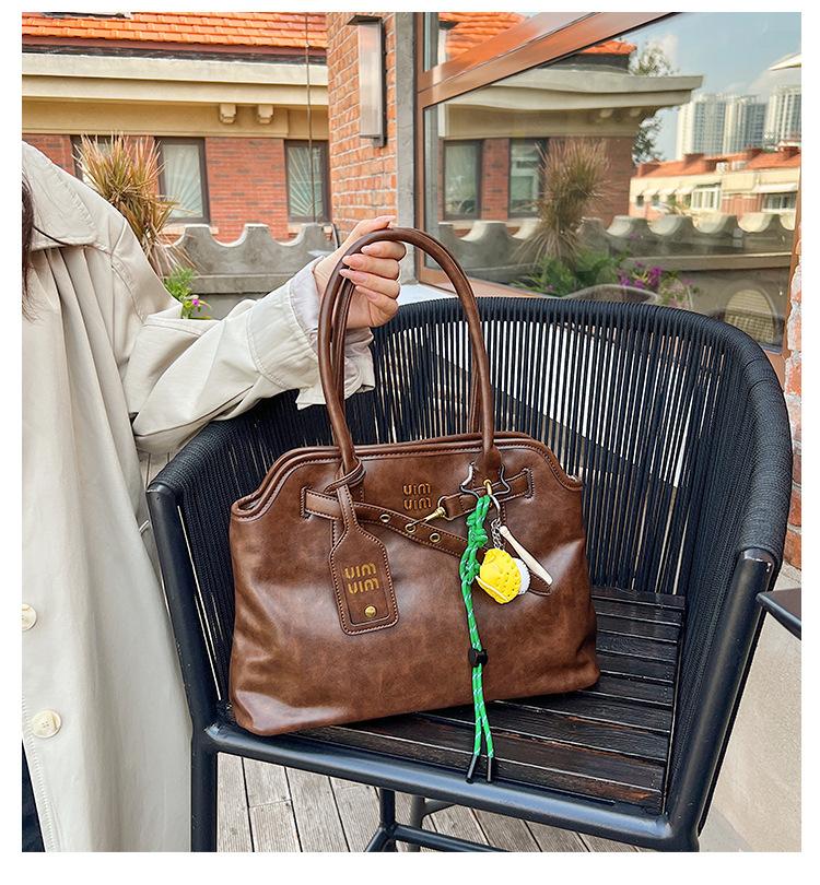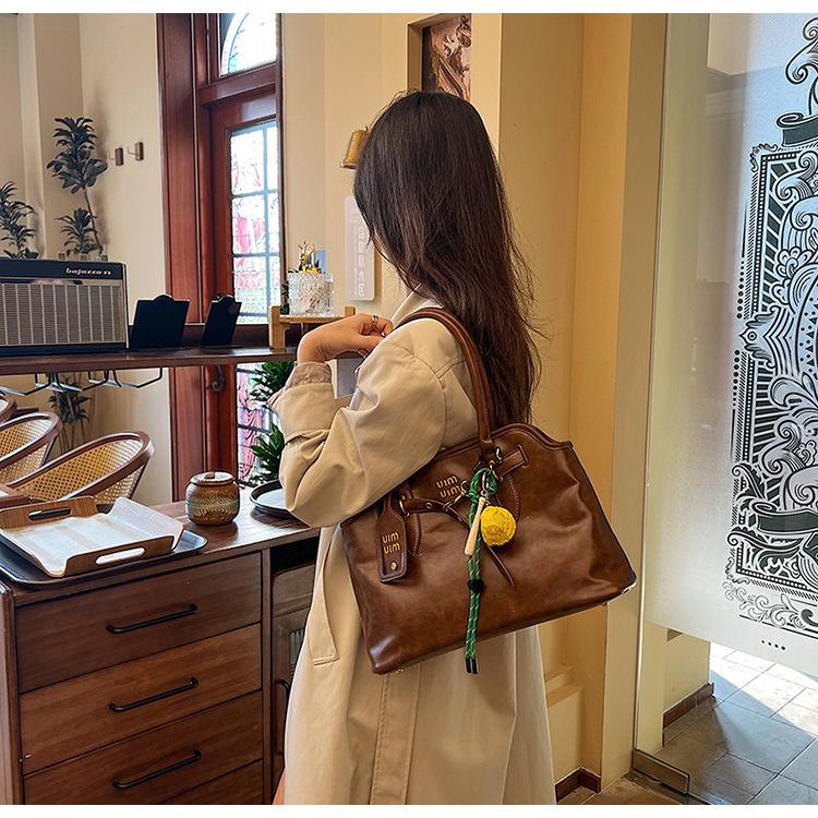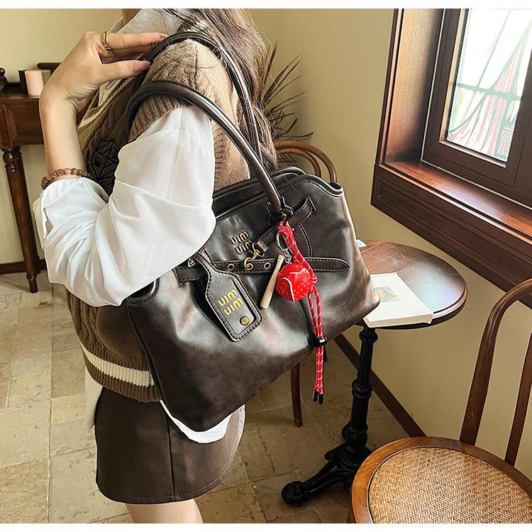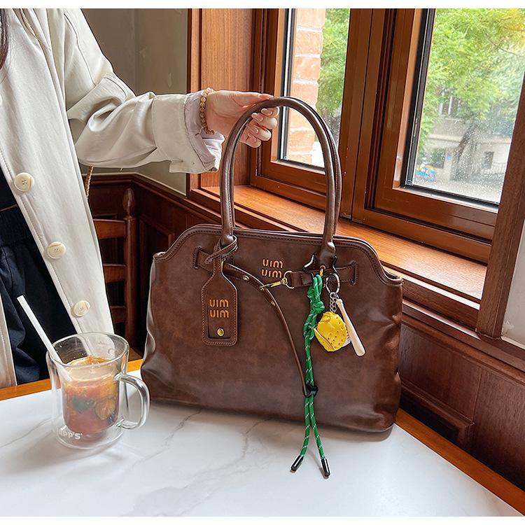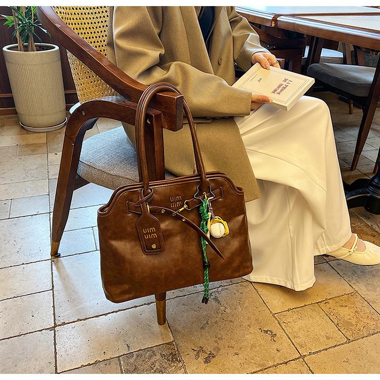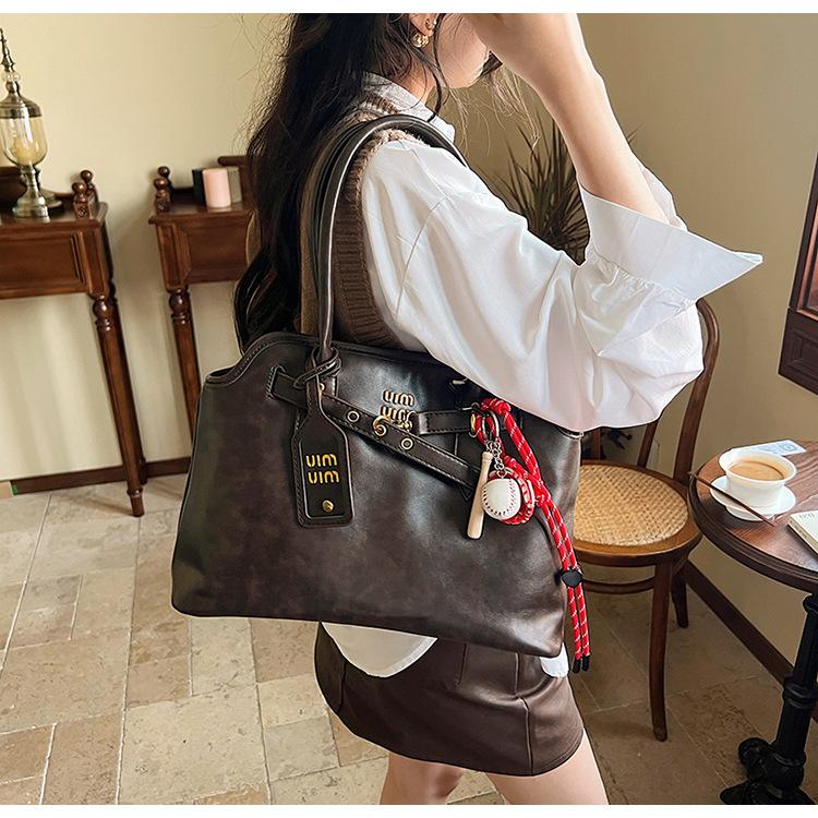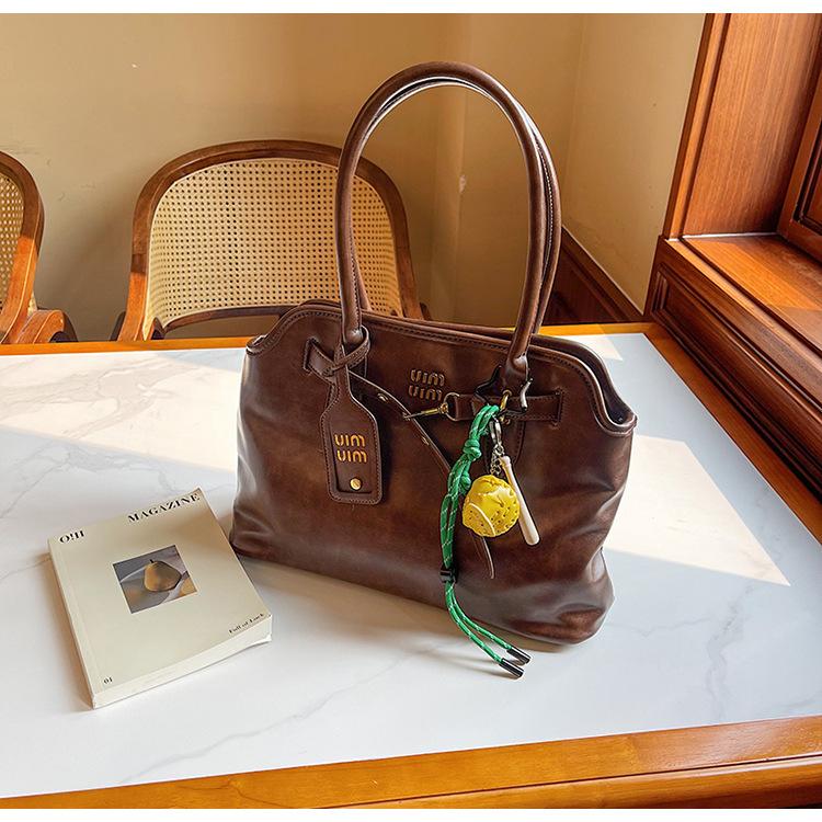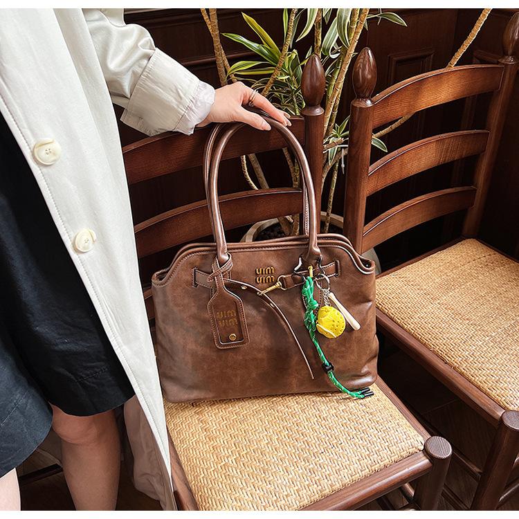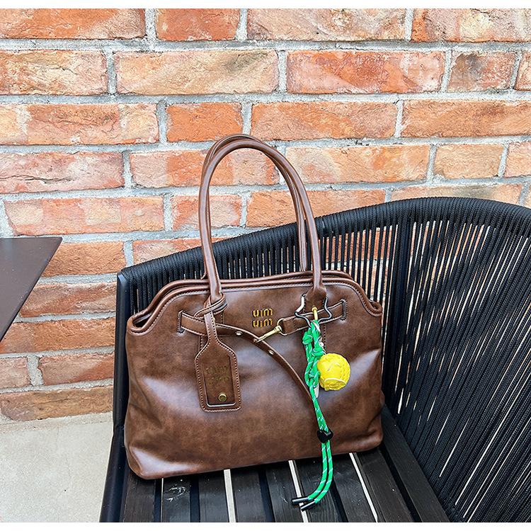 Bolso de mano vintage de gran capacidad para mujer, bolso de mano informal de moda, bolso de hombro moderno de nicho, 2024