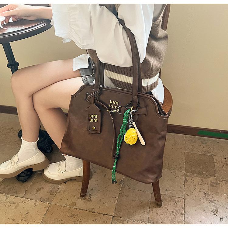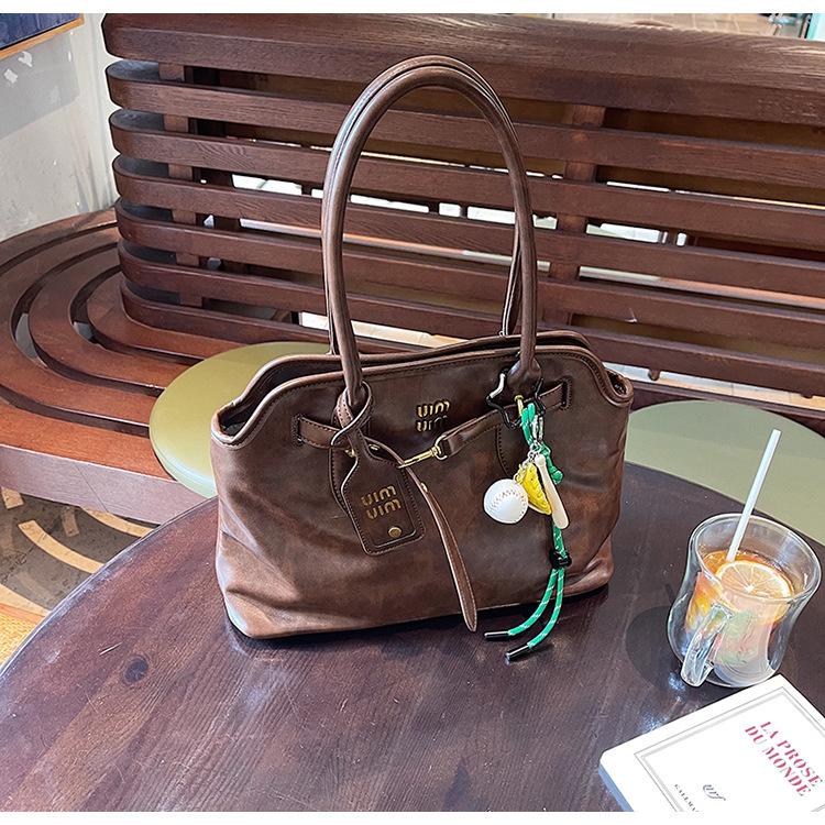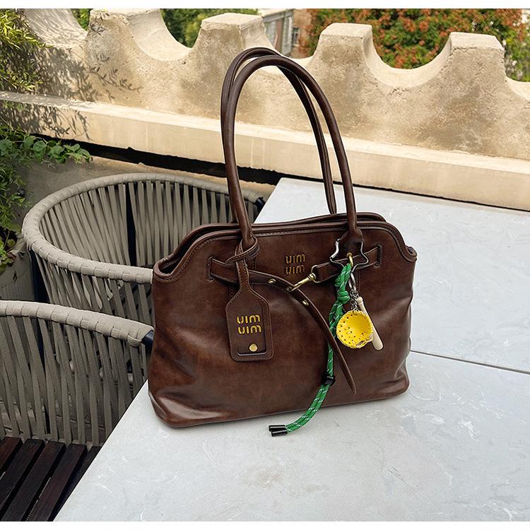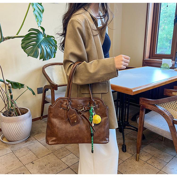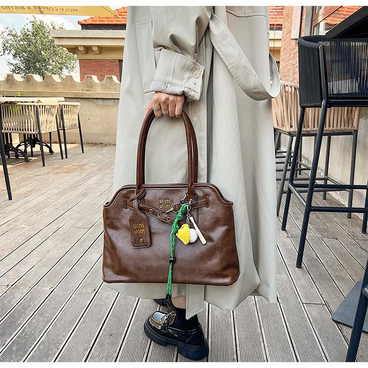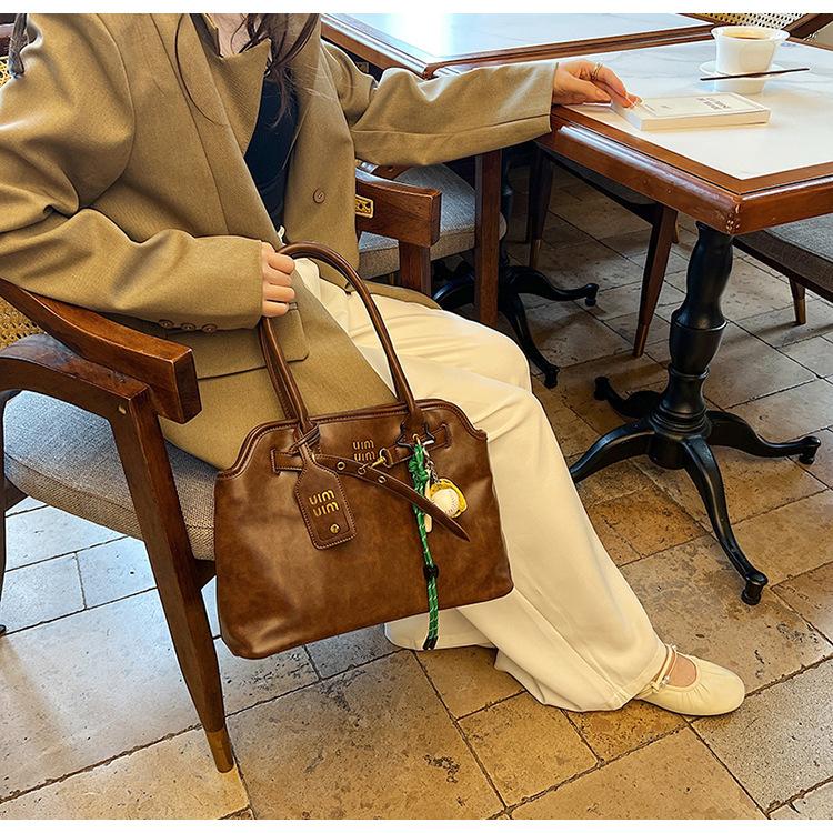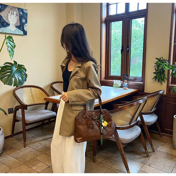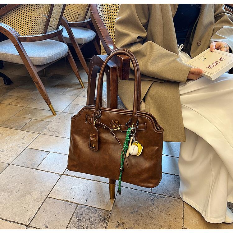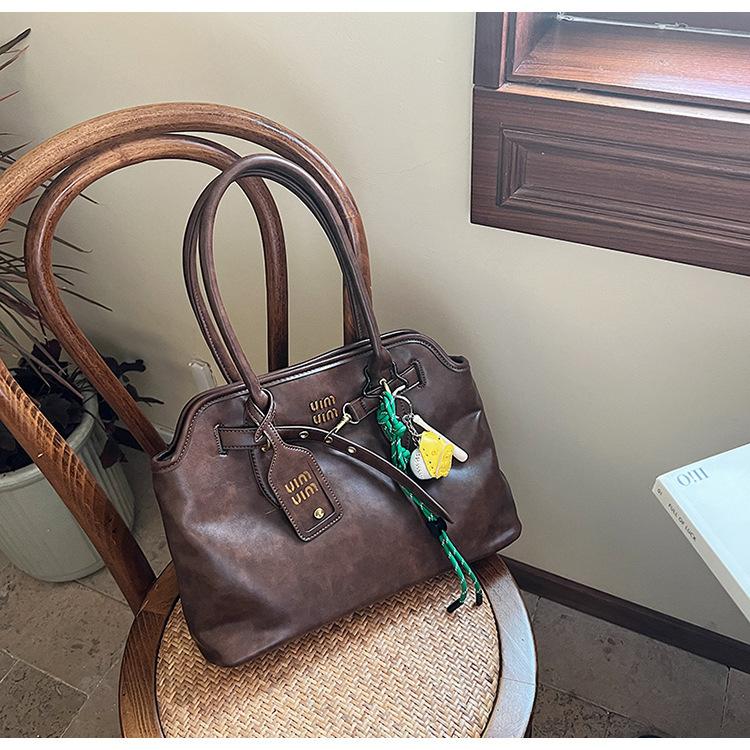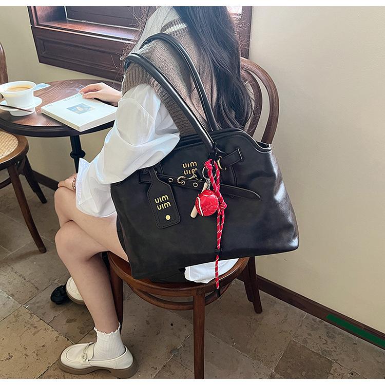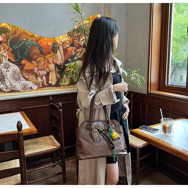 Bolso de mano vintage de gran capacidad para mujer, bolso de mano informal de moda, bolso de hombro moderno de nicho, 2024