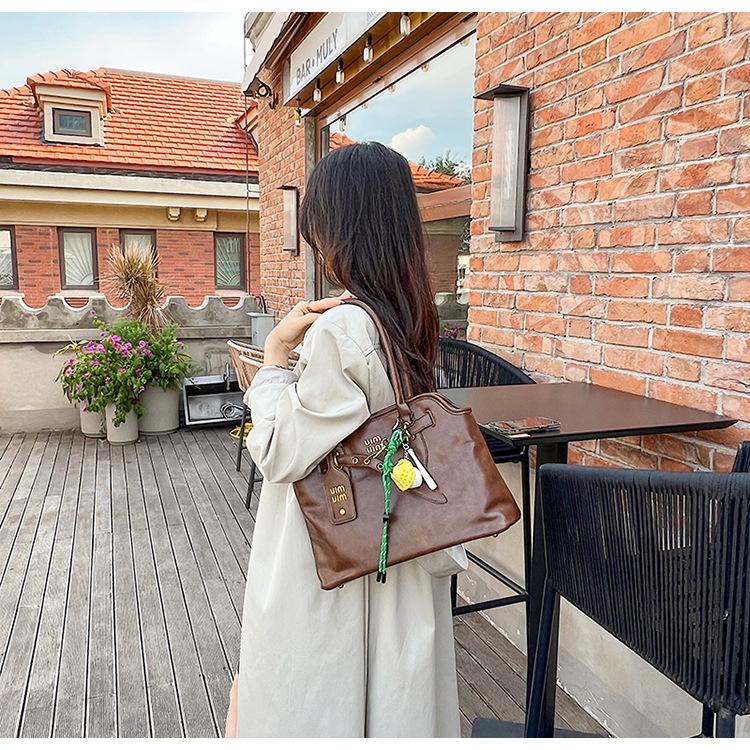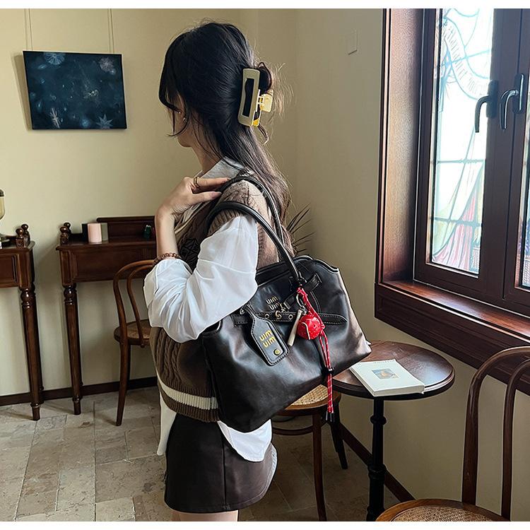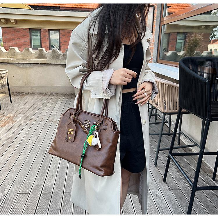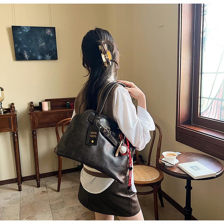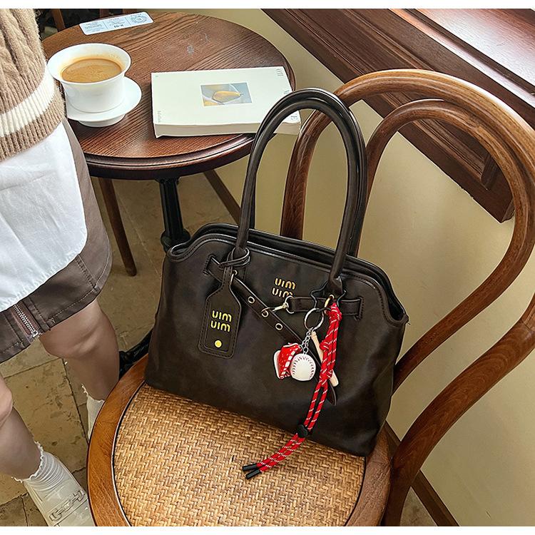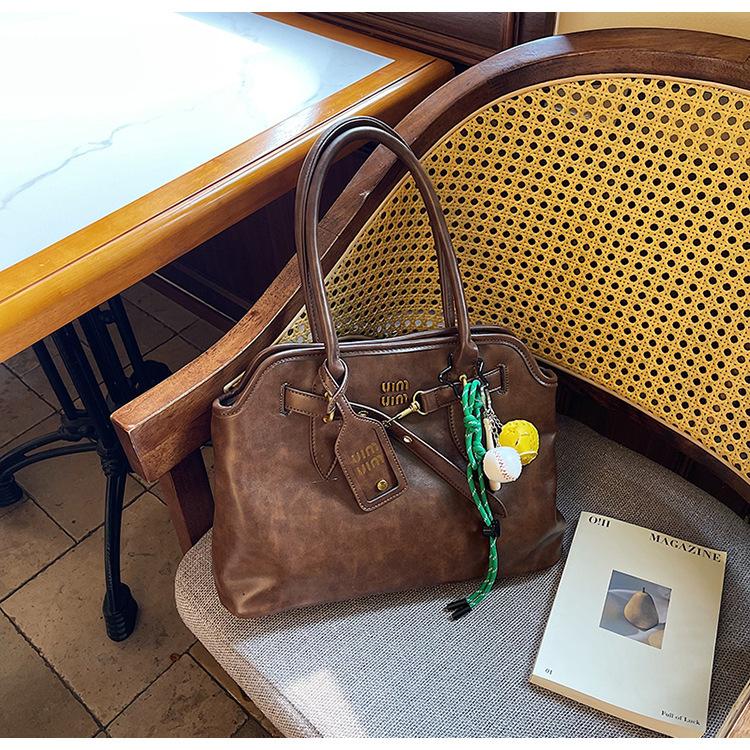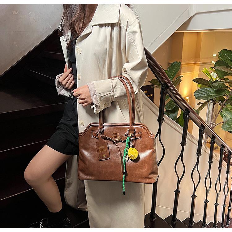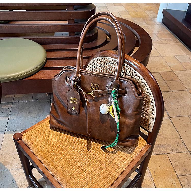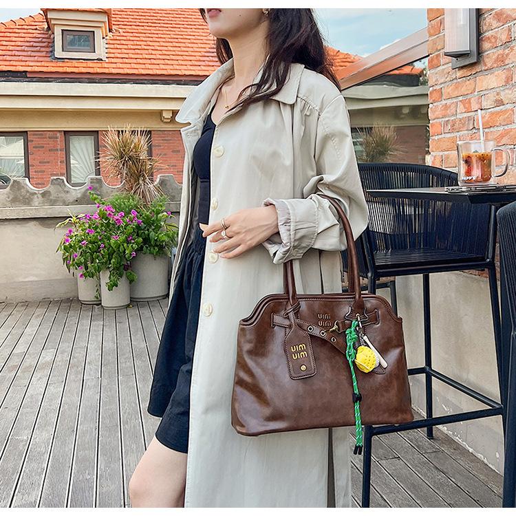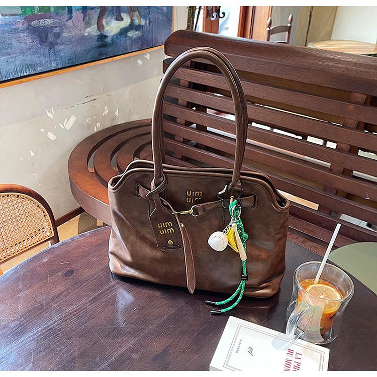 Bolso de mano vintage de gran capacidad para mujer, bolso de mano informal de moda, bolso de hombro moderno de nicho, 2024