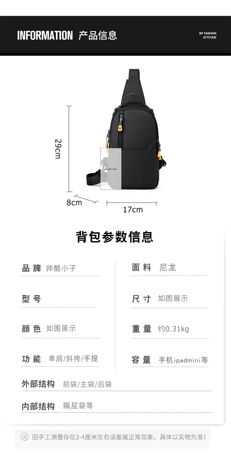 Bolsa de pecho de moda para hombre transfronteriza, moderna, de alta gama, casual, bandolera para ir al trabajo, para viajar, bandolera, bolsa de pecho ligera para hombre
