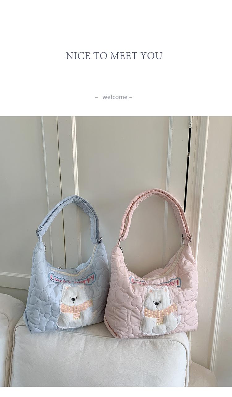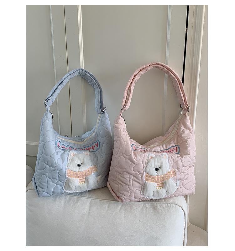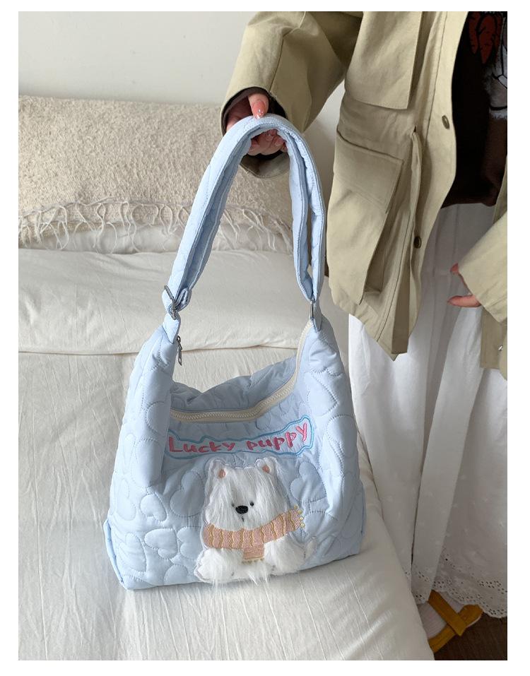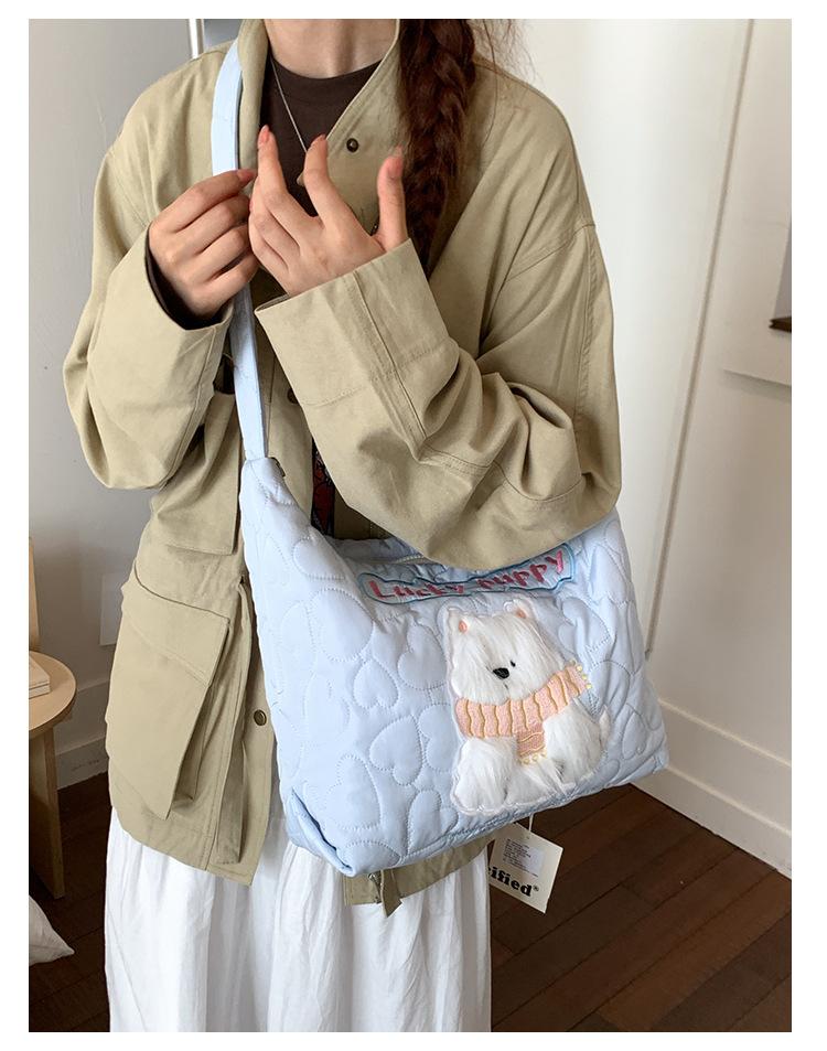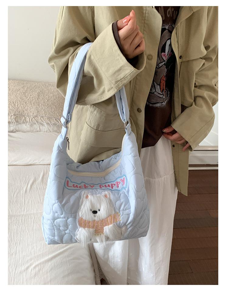Embroidery Quilted Adjustable Crossbody: Blue Puppy Illustration