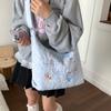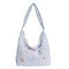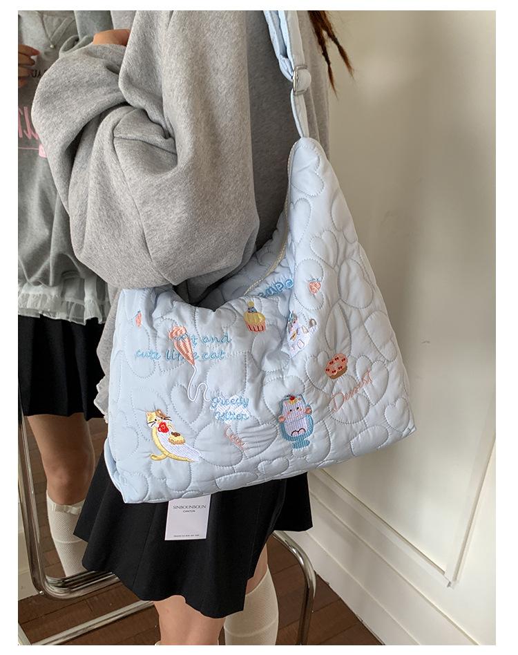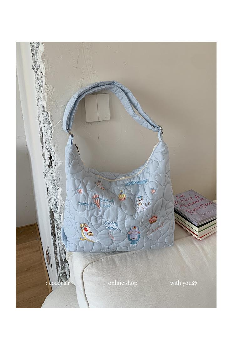 Embroidery Quilted Adjustable Crossbody: Blue Kitten Illustration