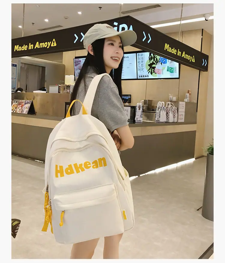 Mochila Escolar de Gran Capacidad Estilo Coreano Femenina 2025 Nueva Mochila Simple Mochila Estudiantil con Letra Estampada para Estudiantes de Secundaria