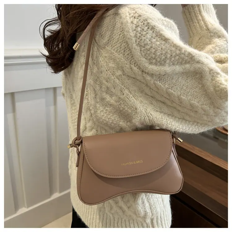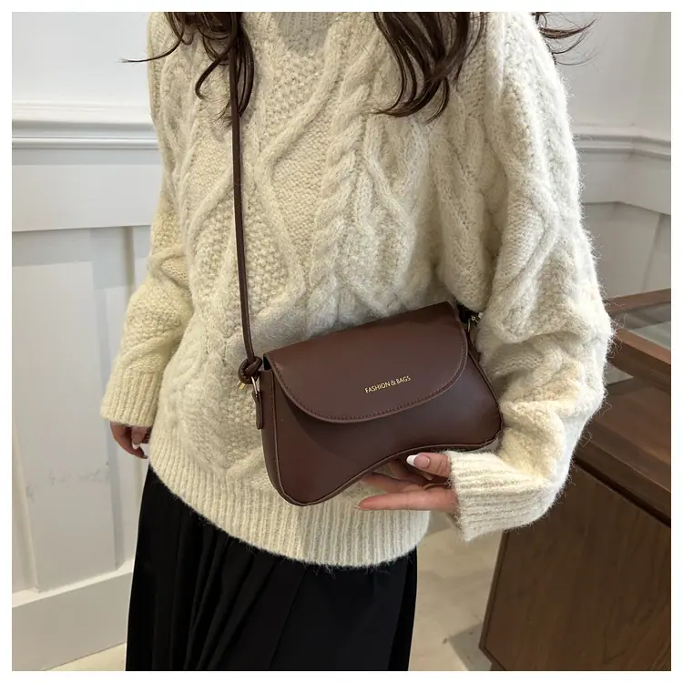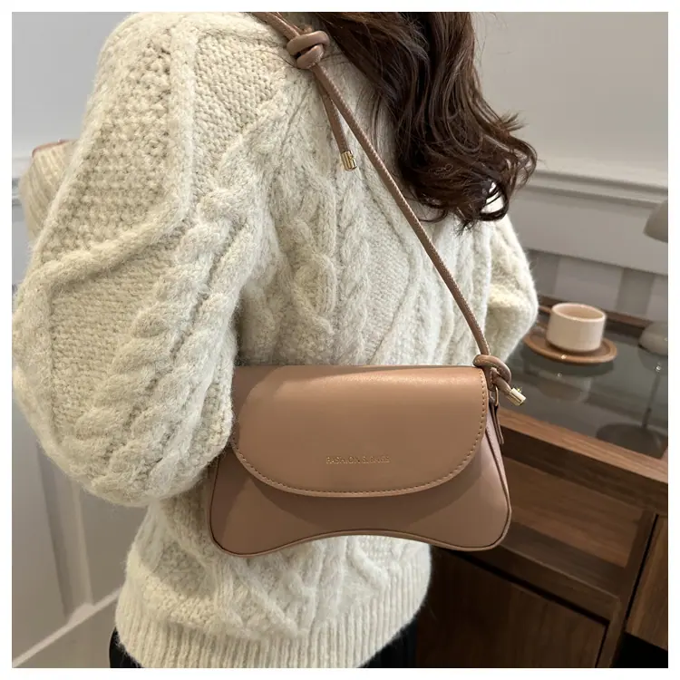 Bolso bandolera estilo Hong Kong retro de color sólido estilo occidental para mujer, primavera 2025, estilo coreano, bolso de hombro texturizado, bolso de mano moderno.