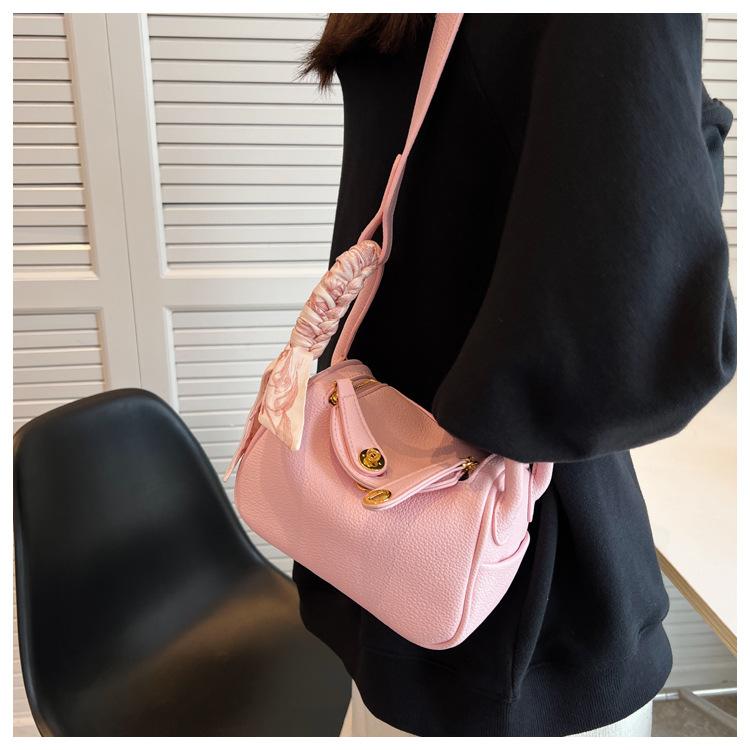 Bolso de Mano Simple con Candado a la Moda para Mujer, Bolso de Hombro Dulce con Patrón Lichi Nicho, Elegante Bolso Cruzado de Gran Capacidad para Viajeros