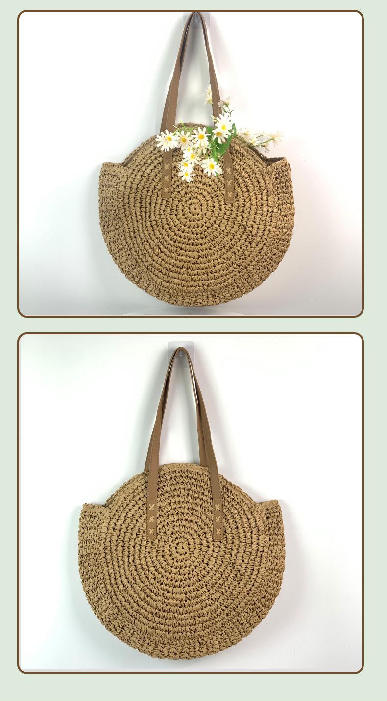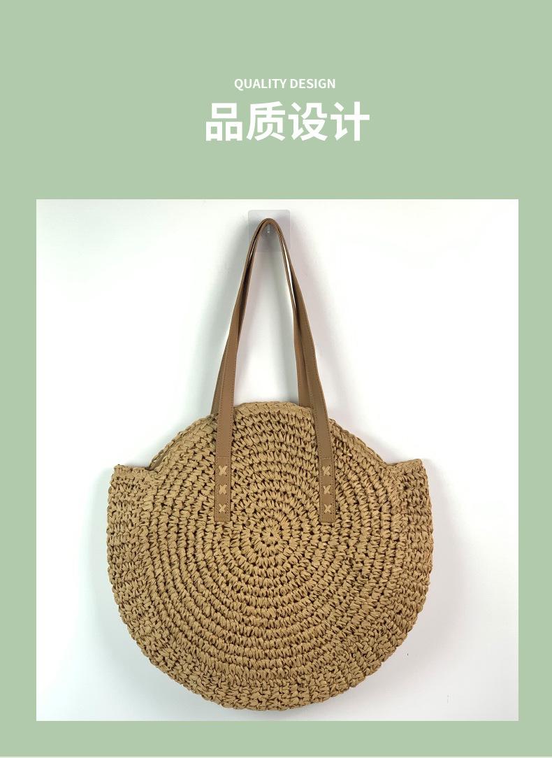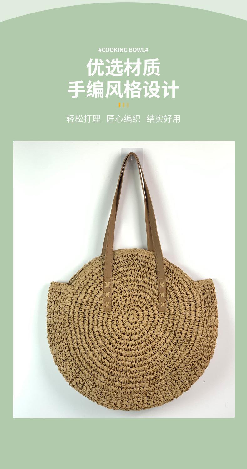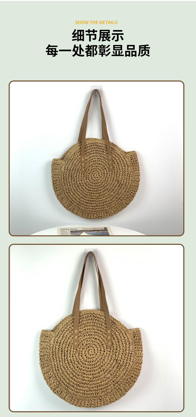 Verano Nuevo Bolso Redondo Tejido de Paja Bolso Tejido Casual Bohemio Playa Orilla del Mar Portátil Bolso de Hombro