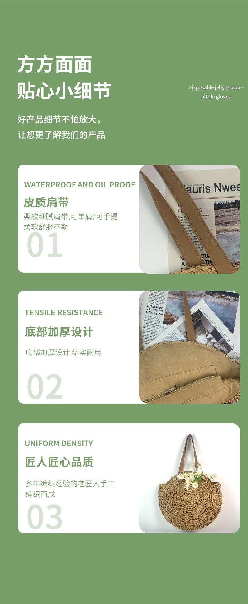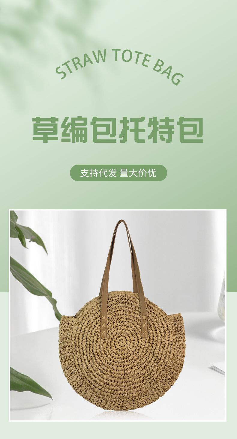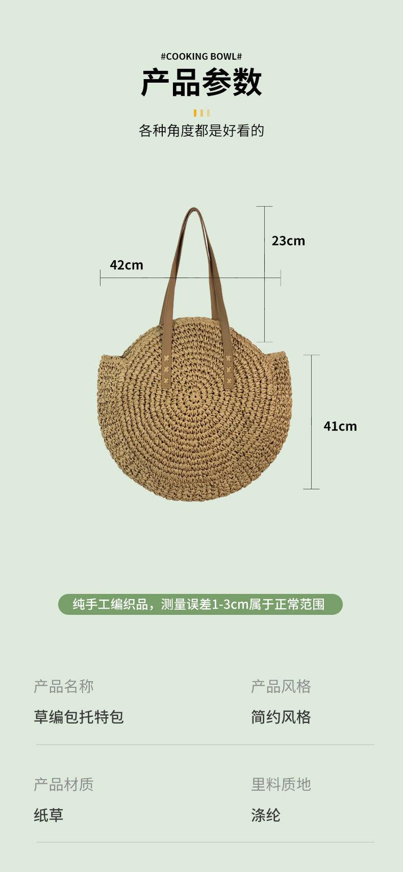 Verano Nuevo Bolso Redondo Tejido de Paja Bolso Tejido Casual Bohemio Playa Orilla del Mar Portátil Bolso de Hombro