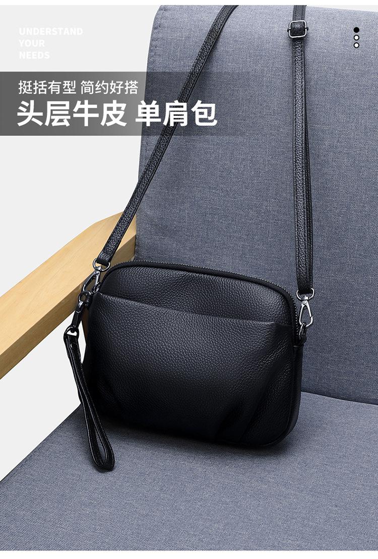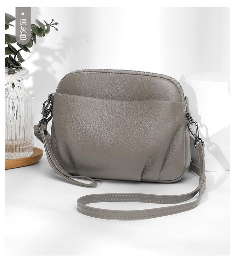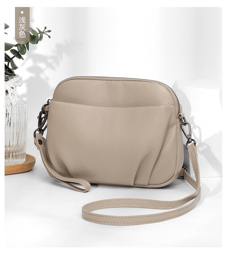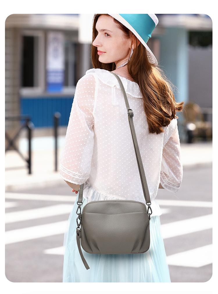 Bolso de Hombro Casual de Cuero Genuino para Mujer 2025 Nuevo Bolso Cruzado Versátil de Cuero Vacuno Moda para Dama Bolso Pequeño con Cremallera de Tres Capas