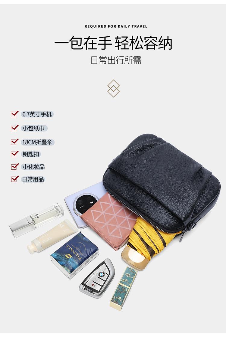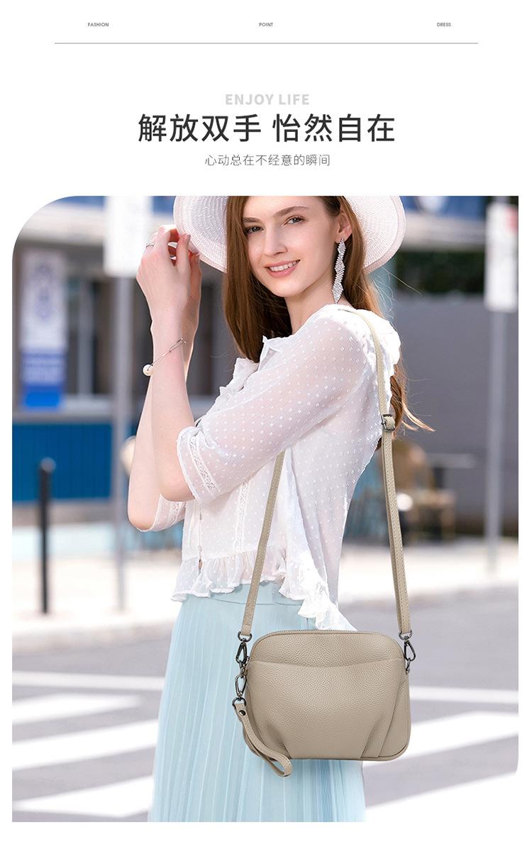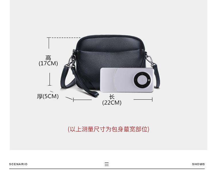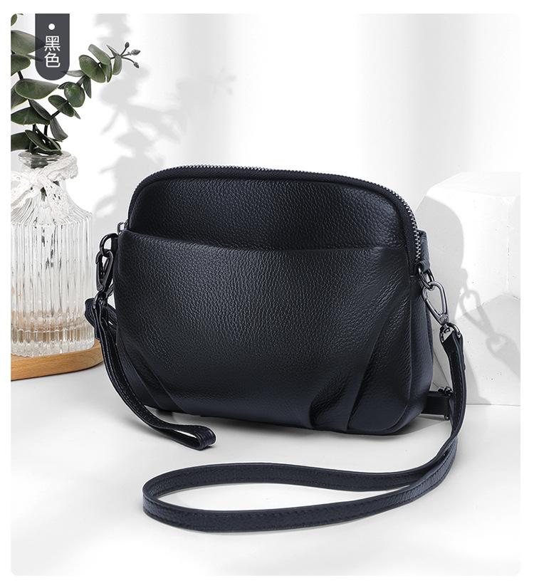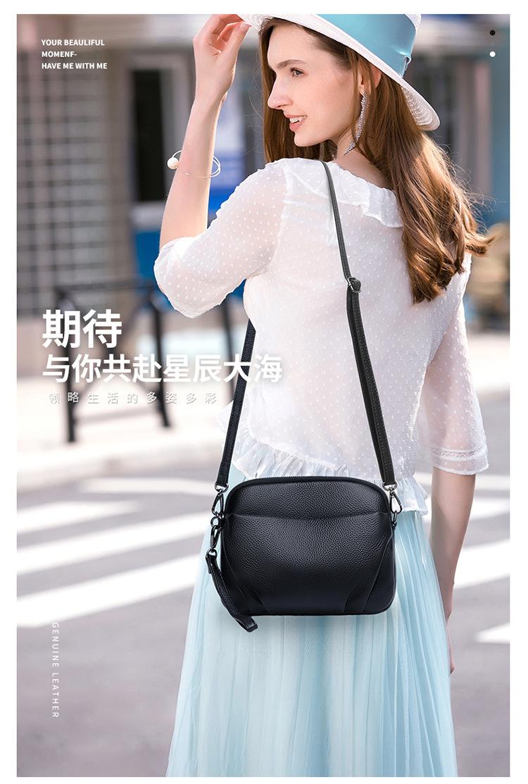 Bolso de Hombro Casual de Cuero Genuino para Mujer 2025 Nuevo Bolso Cruzado Versátil de Cuero Vacuno Moda para Dama Bolso Pequeño con Cremallera de Tres Capas