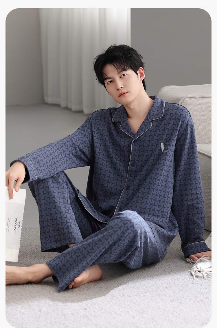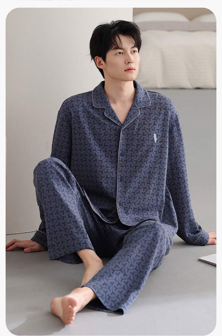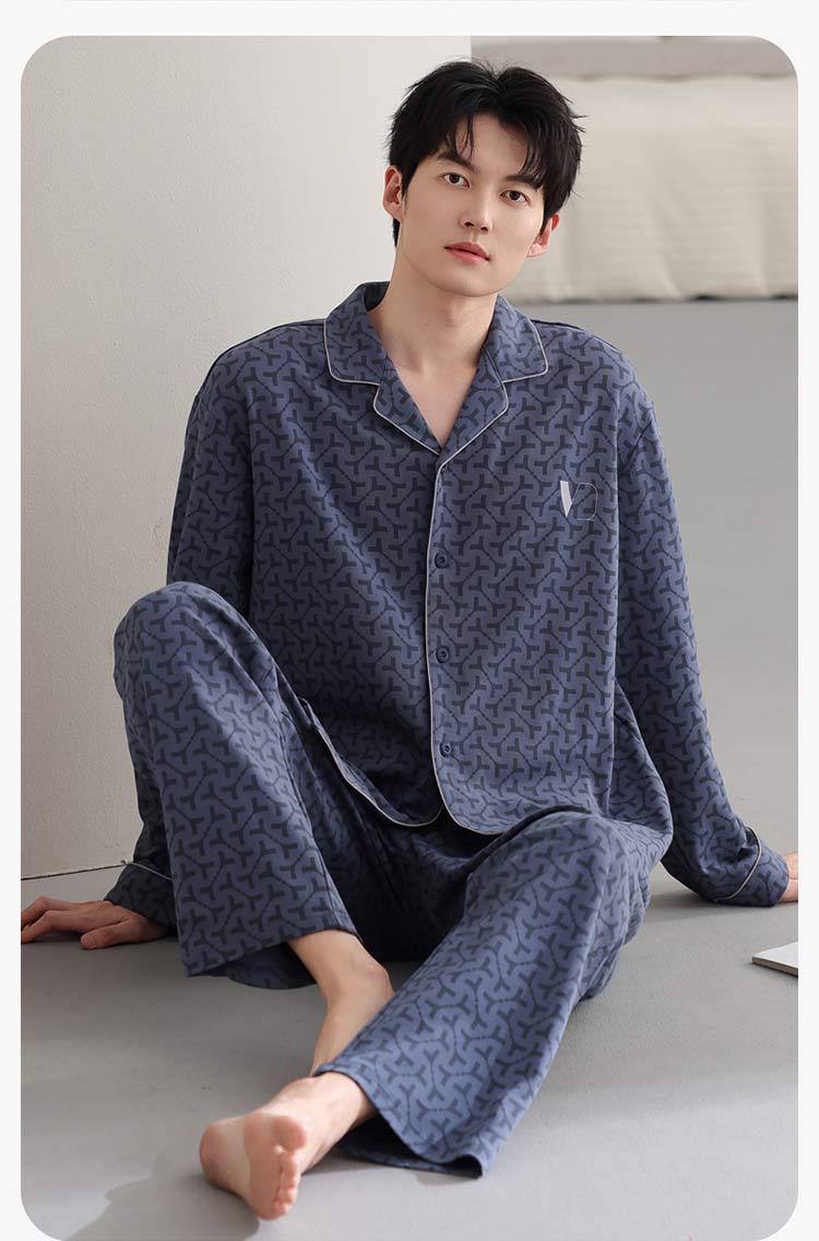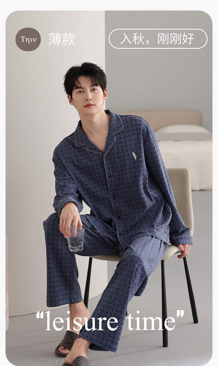 Pijama para hombre Algodón 100% para hombre Nuevo 2025 Primavera y Otoño Manga Larga Algodón Puro Ropa de Casa Niños Otoño e Invierno Estilo Delgado
