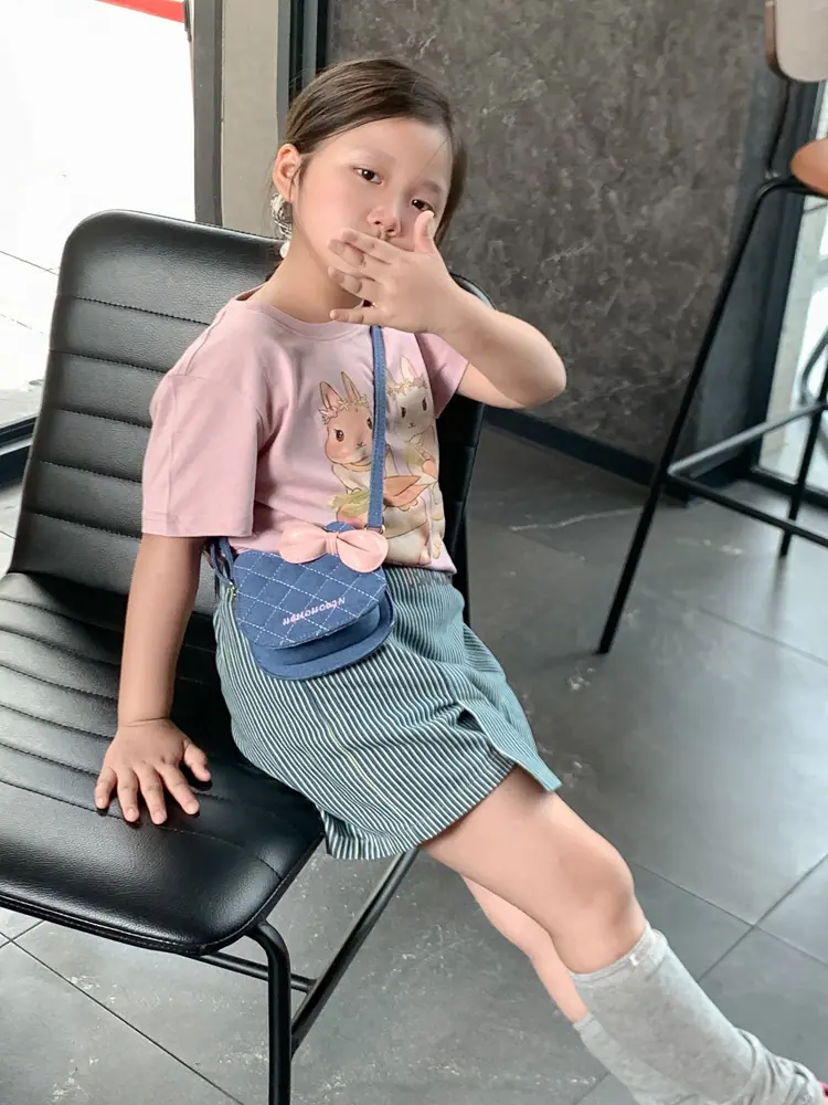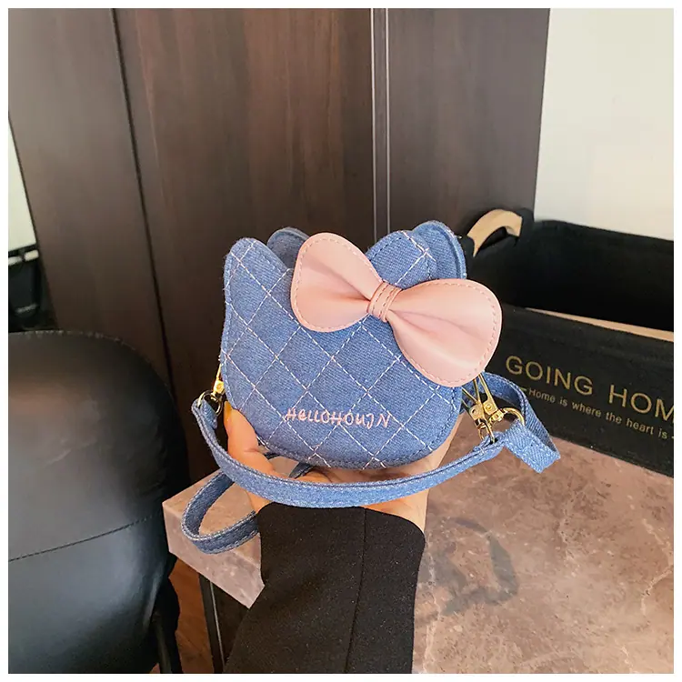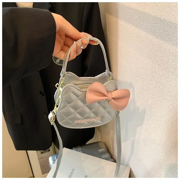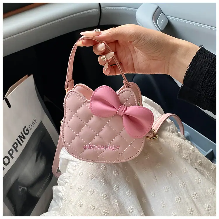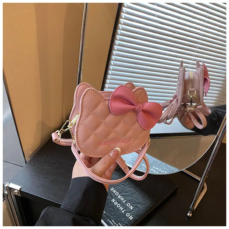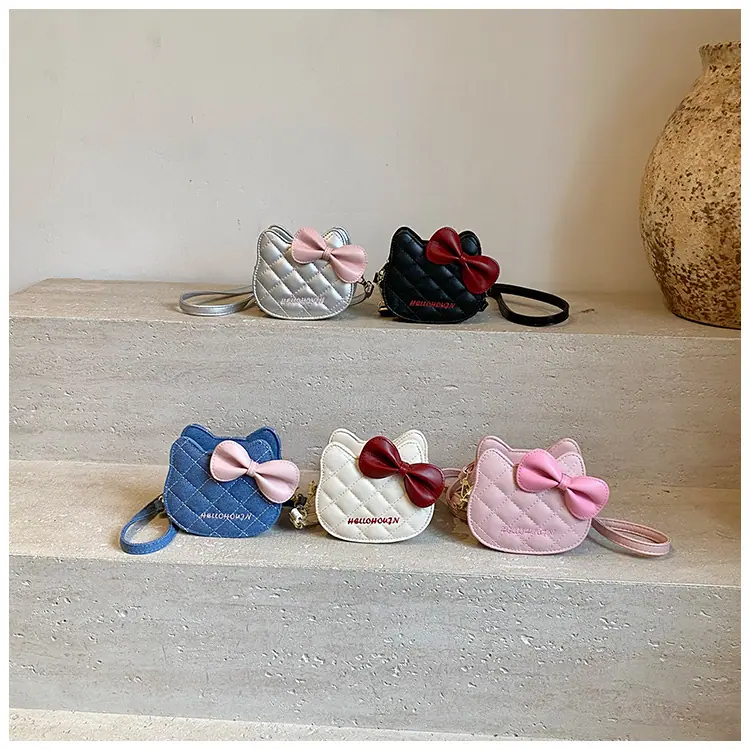 Bolsa para Niños Nuevo Lindo Gatito Lazo Mini Bolsa Cuadrada Bolsa Cruzada para Padres e Hijos Mini Monedero para Mujer