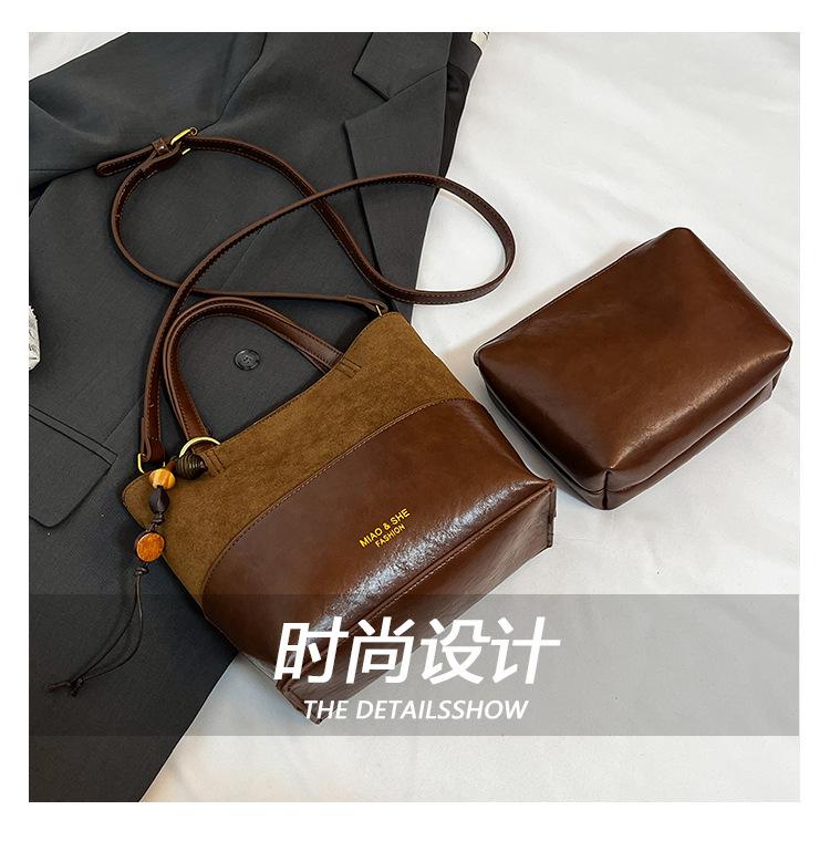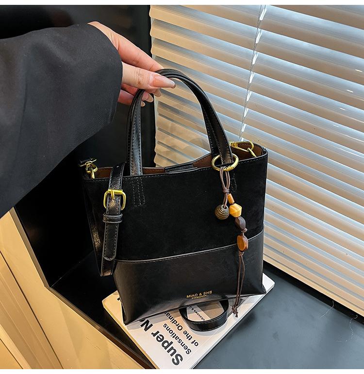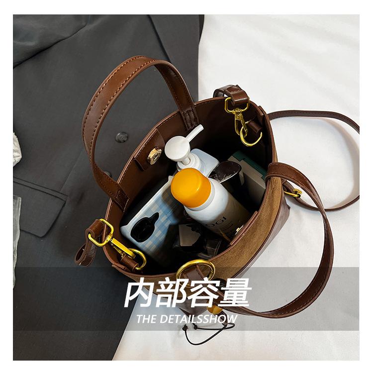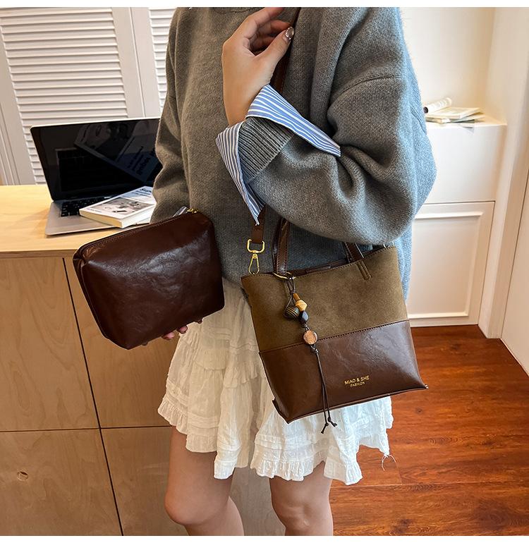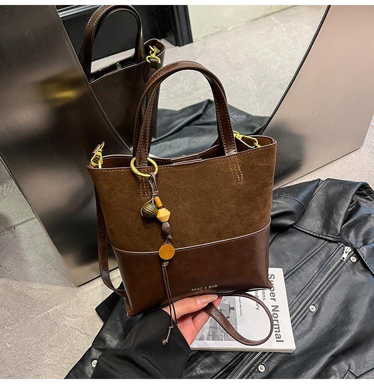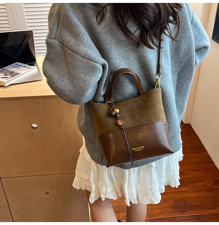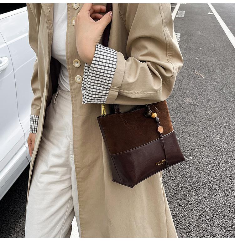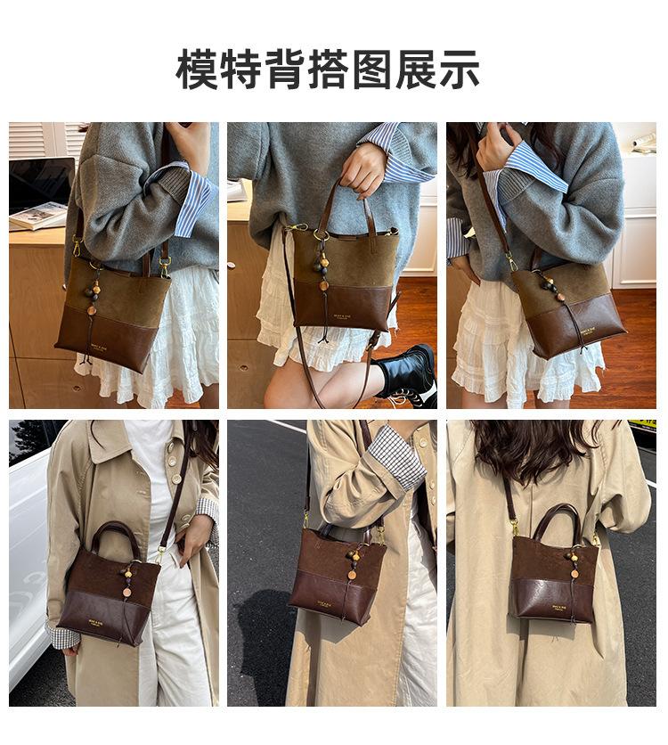 Compra Nuevo bolso de hombro versátil de moda transfronteriza, bolso cruzado, bolso de mujer, tote de gamuza con bloques de color retro, bolso de cubo al por mayor en Joom.pro
