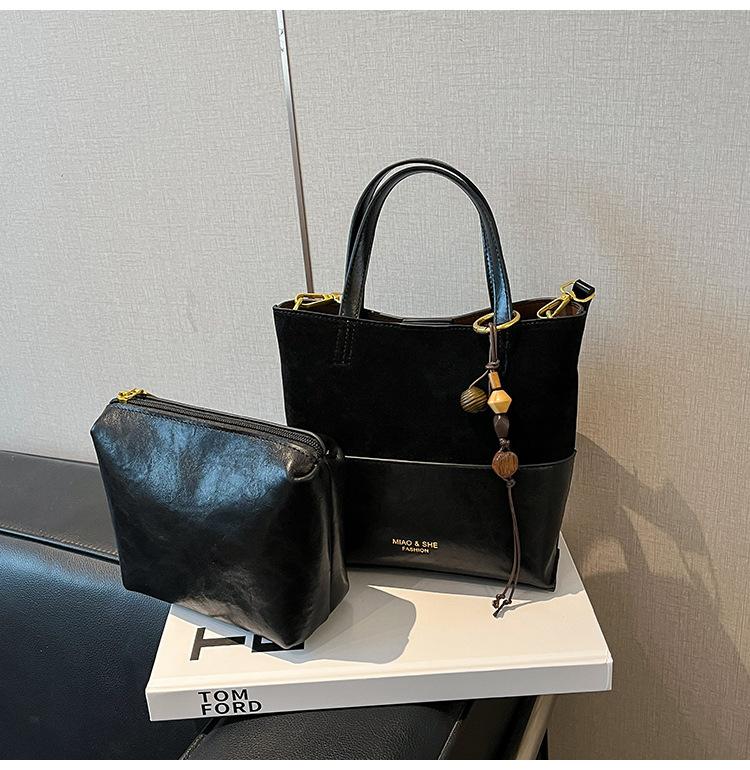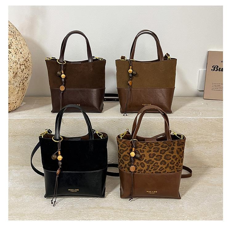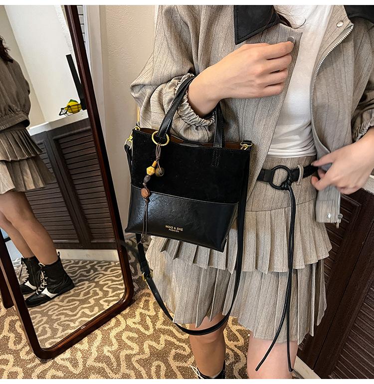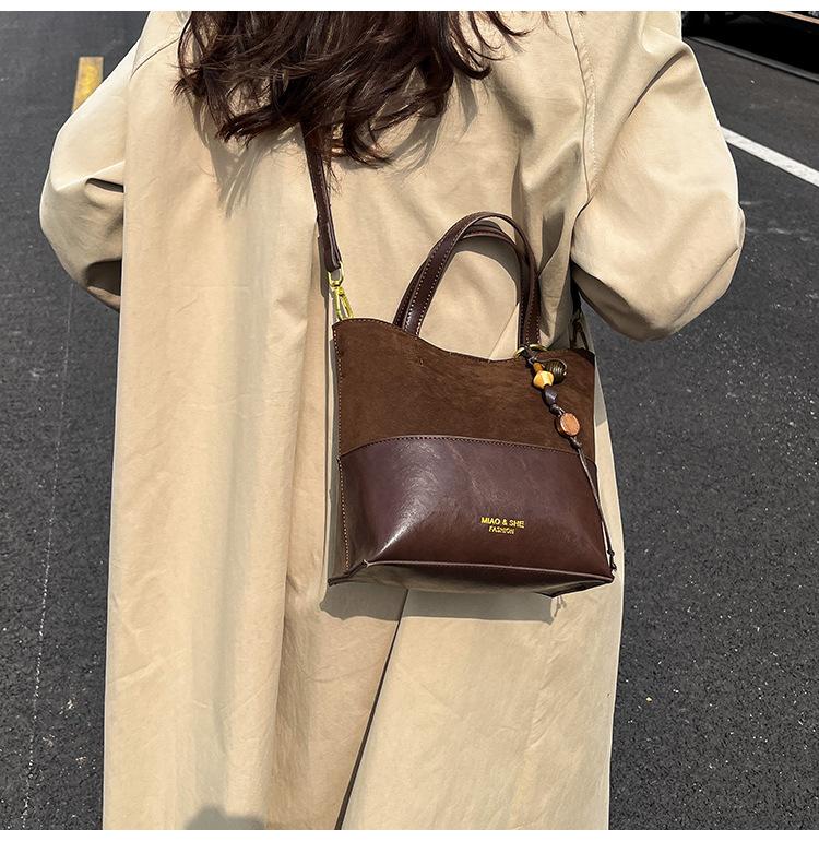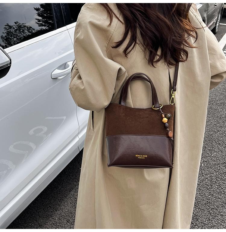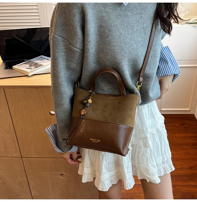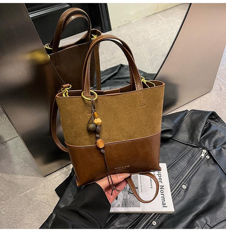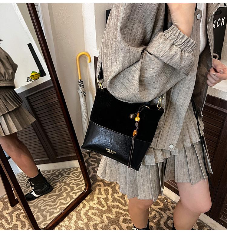 Nuevo bolso de hombro versátil de moda transfronteriza, bolso cruzado, bolso de mujer, tote de gamuza con bloques de color retro, bolso de cubo