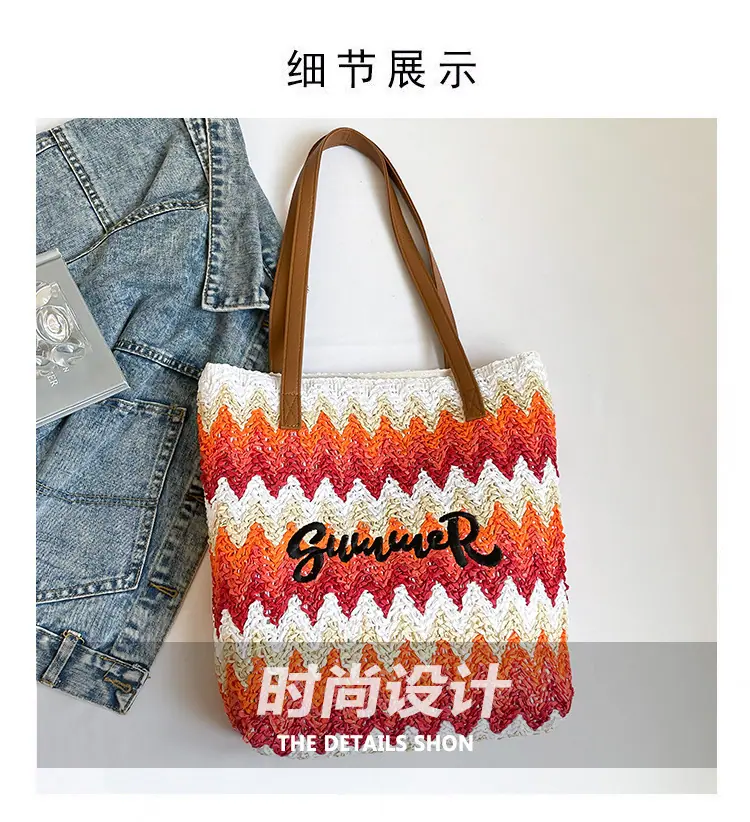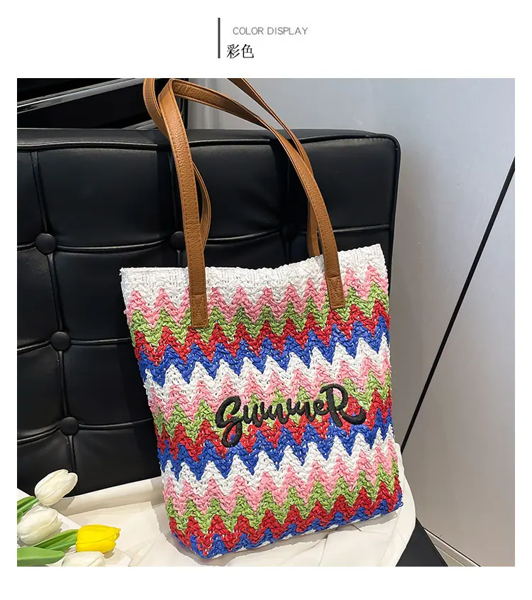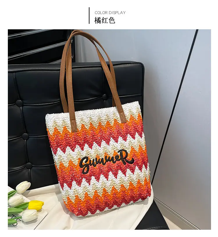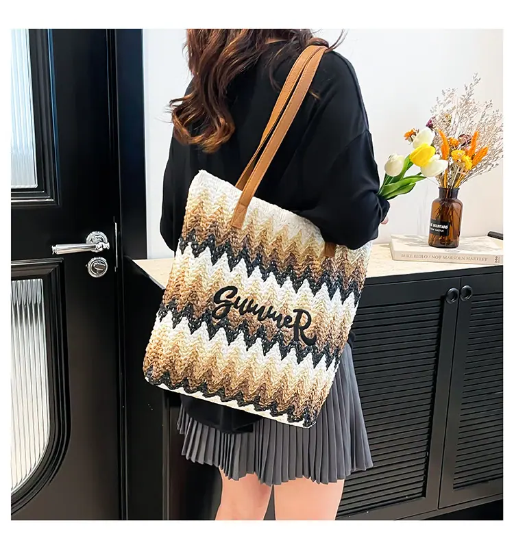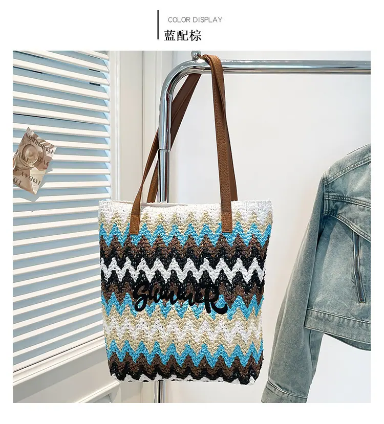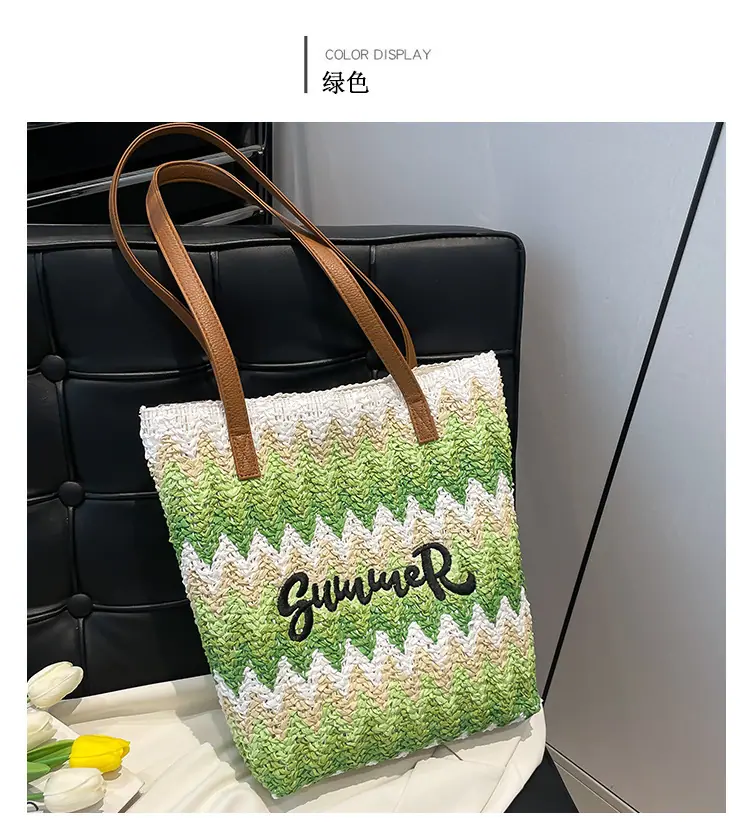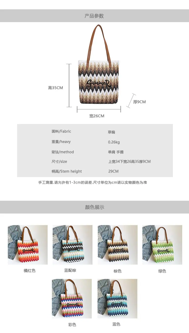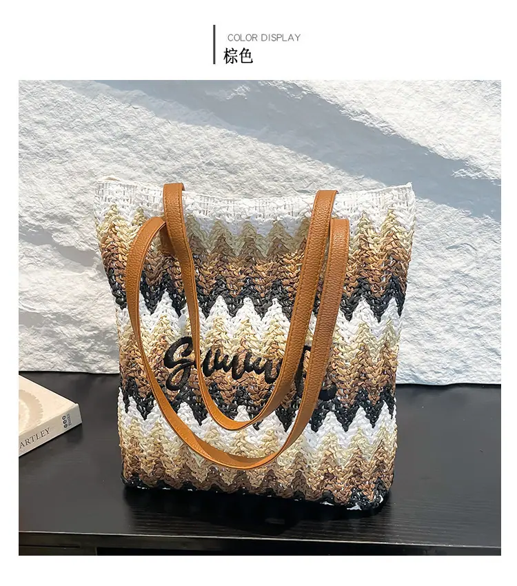 Bolso Tejido para Mujer 2025 Nuevo Vacaciones en la Playa Bolso de Hombro Bolso de Mano Bolso Tote de Gran Capacidad Bolso de Paja para Viaje