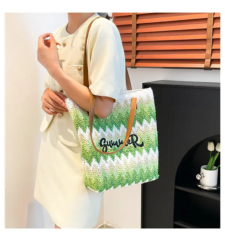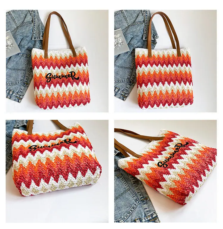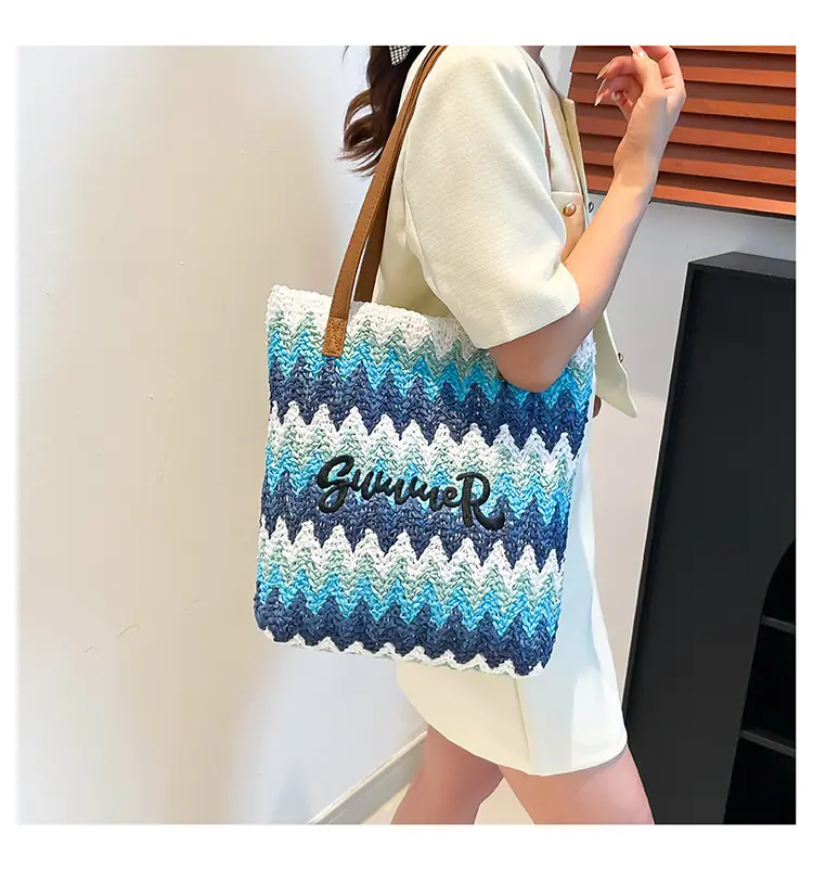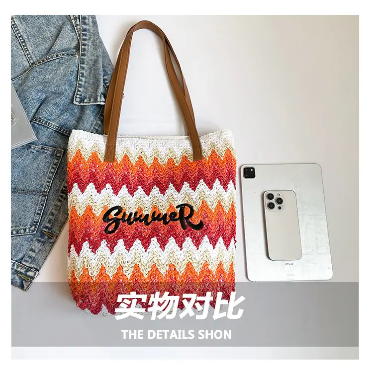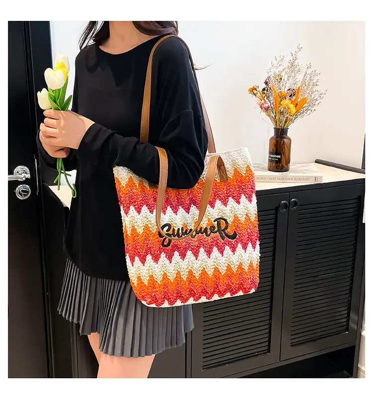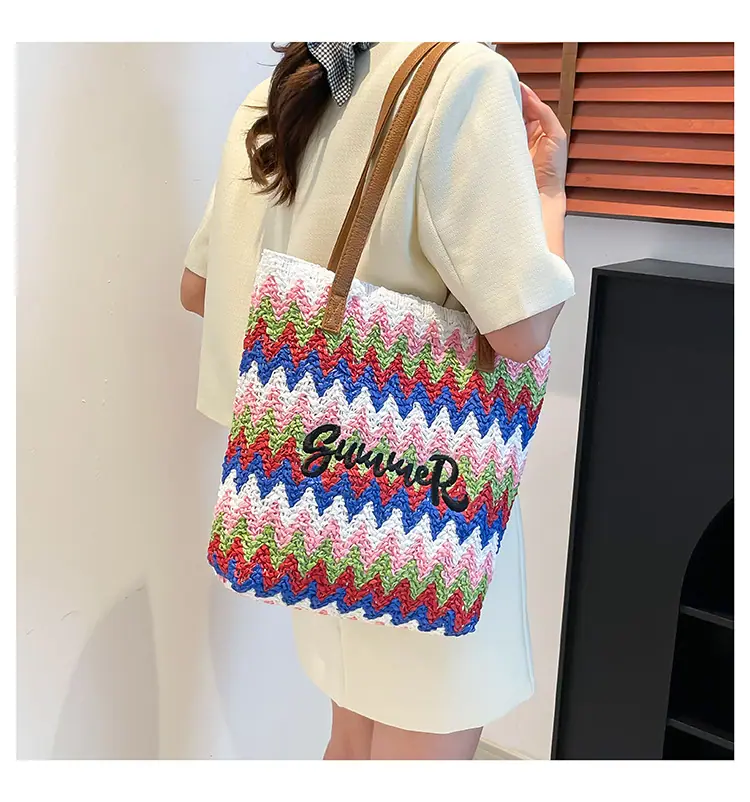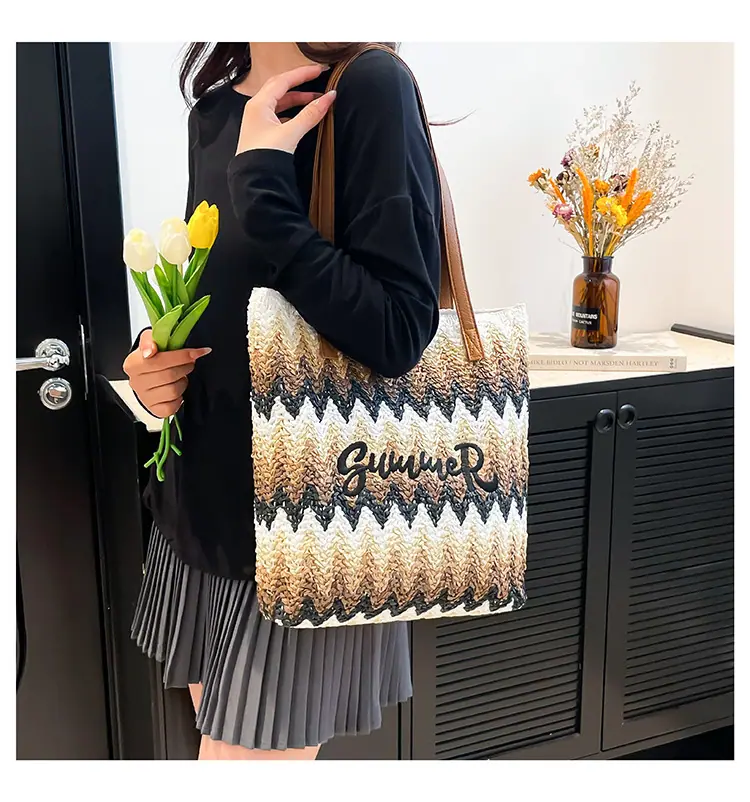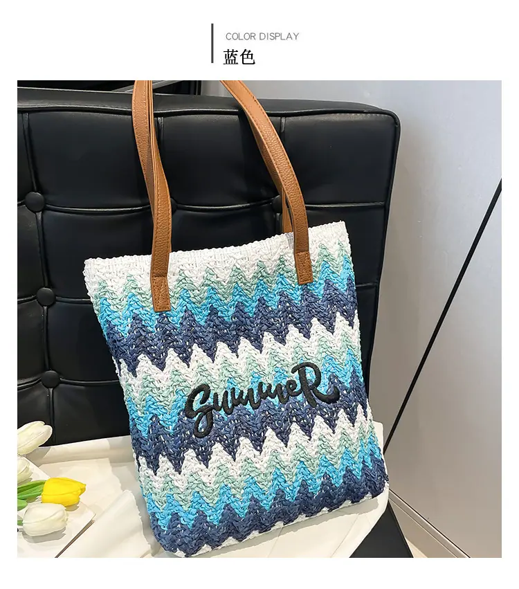 Bolso Tejido para Mujer 2025 Nuevo Vacaciones en la Playa Bolso de Hombro Bolso de Mano Bolso Tote de Gran Capacidad Bolso de Paja para Viaje